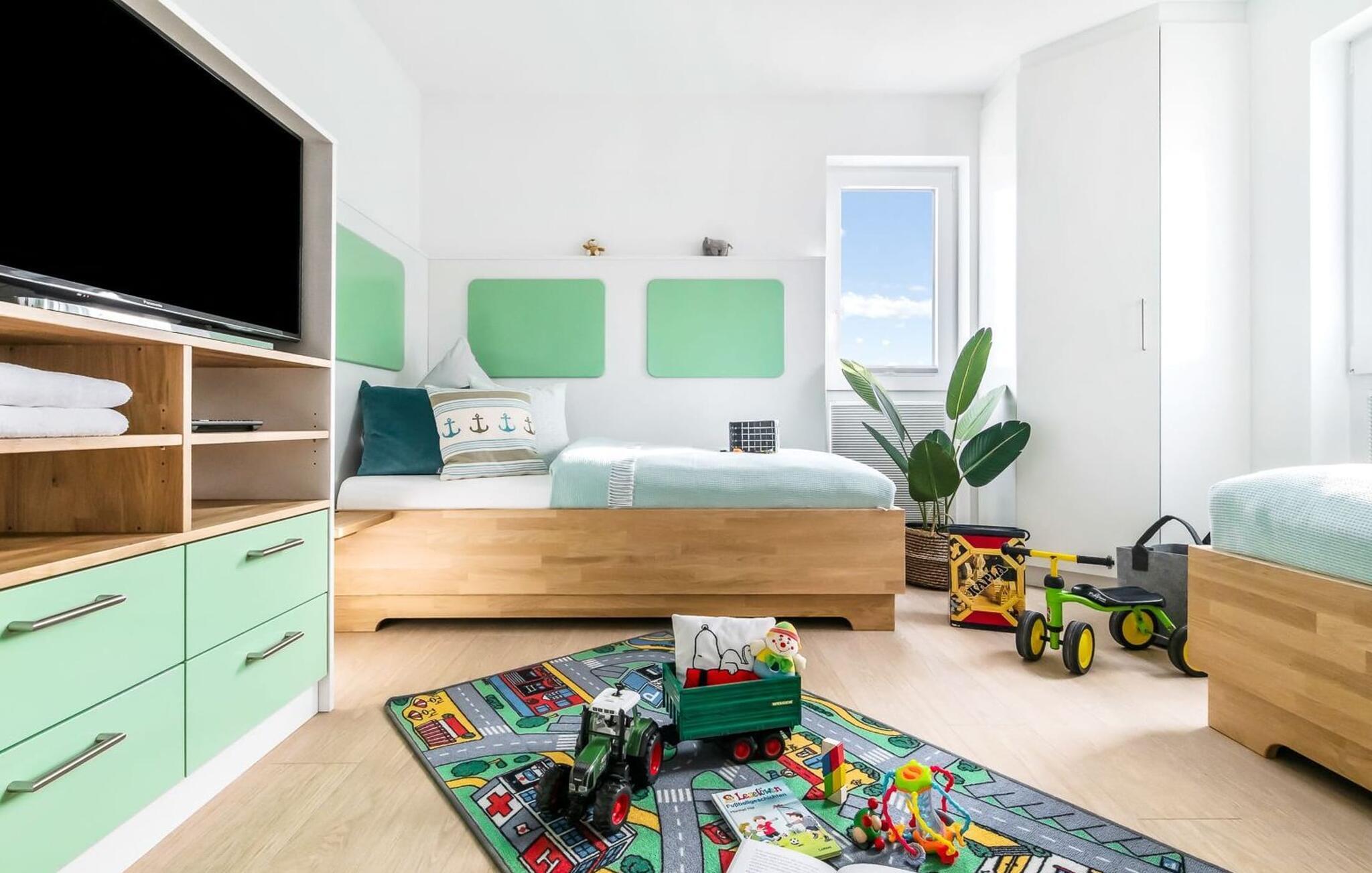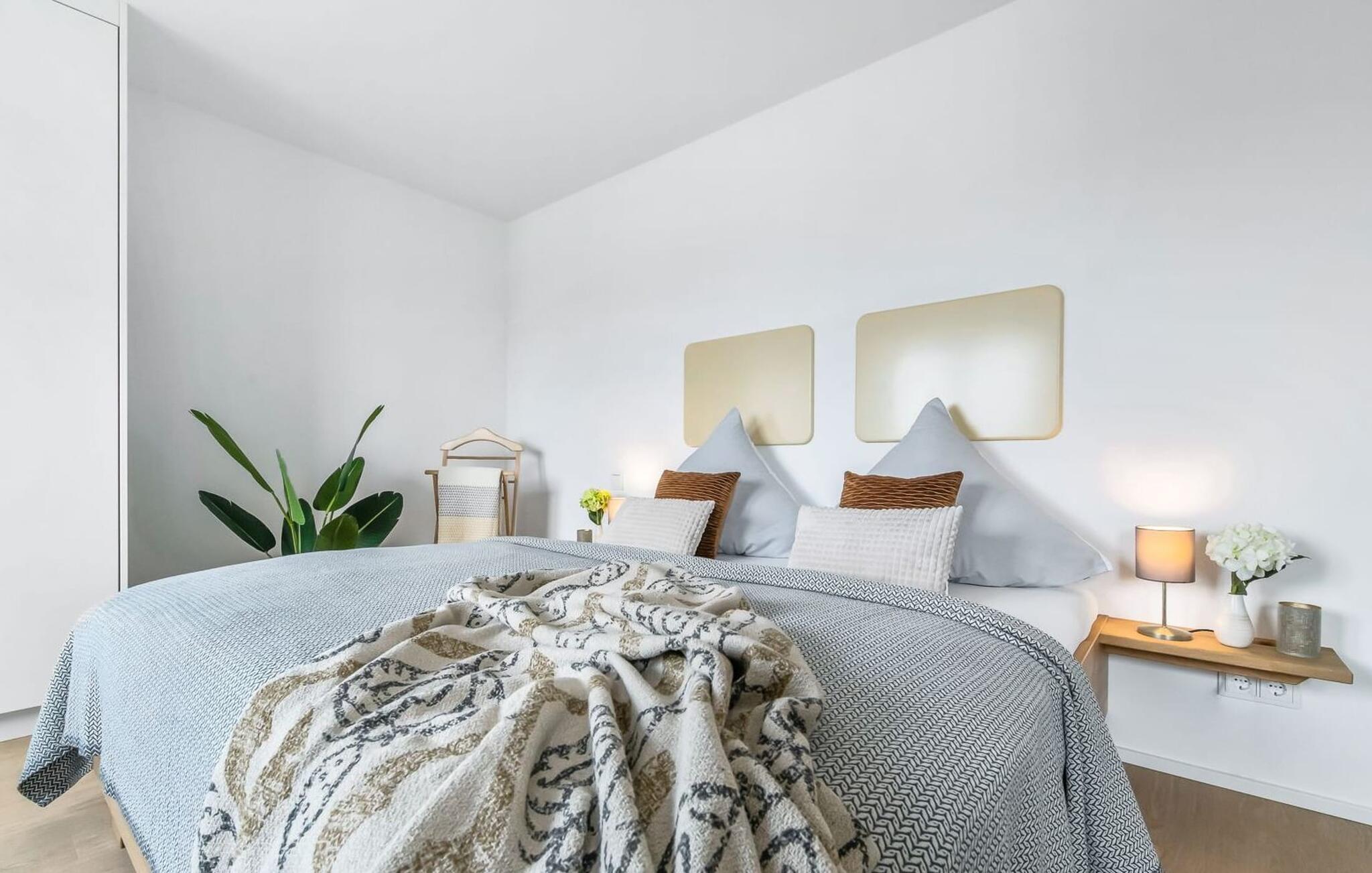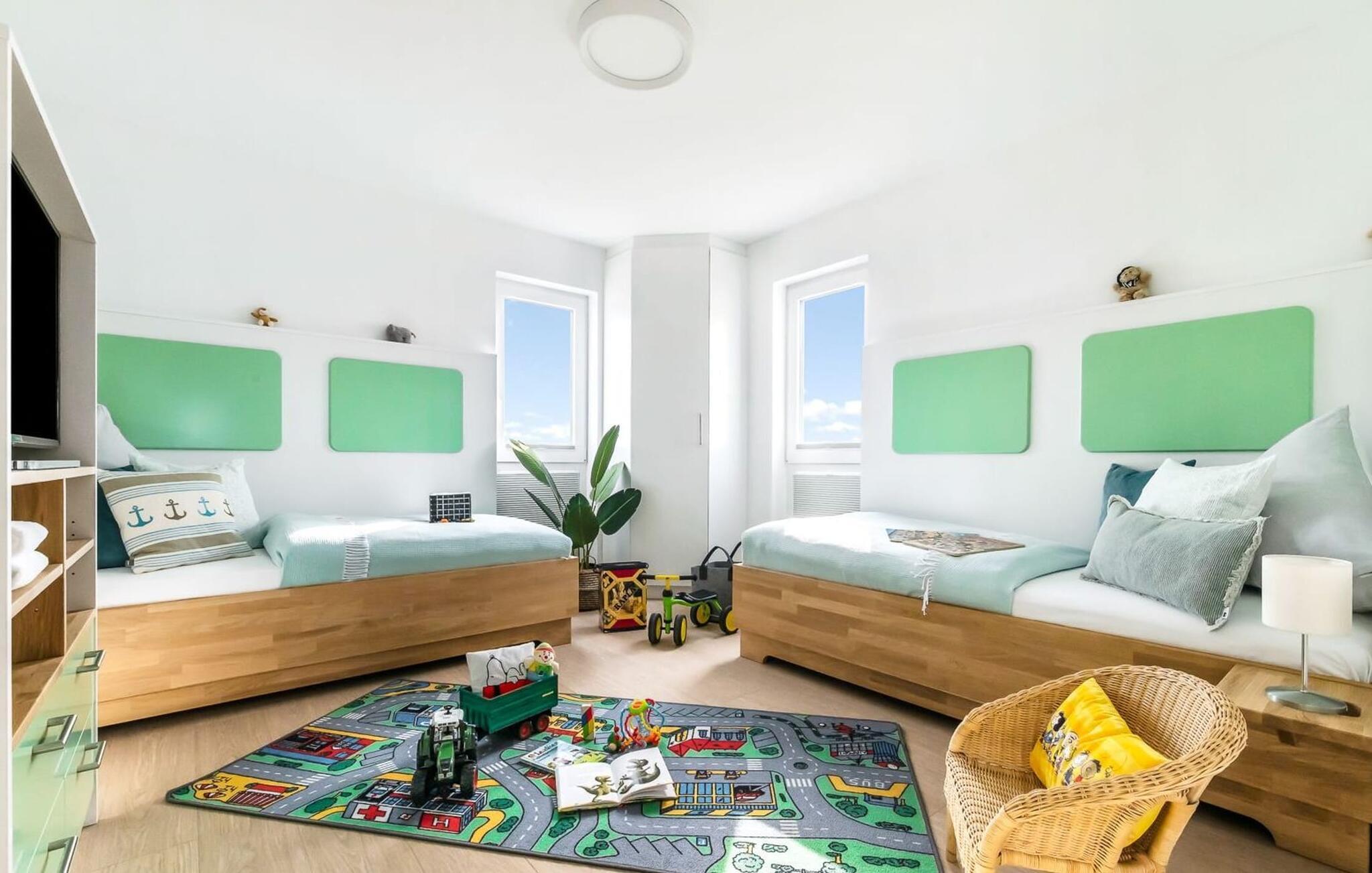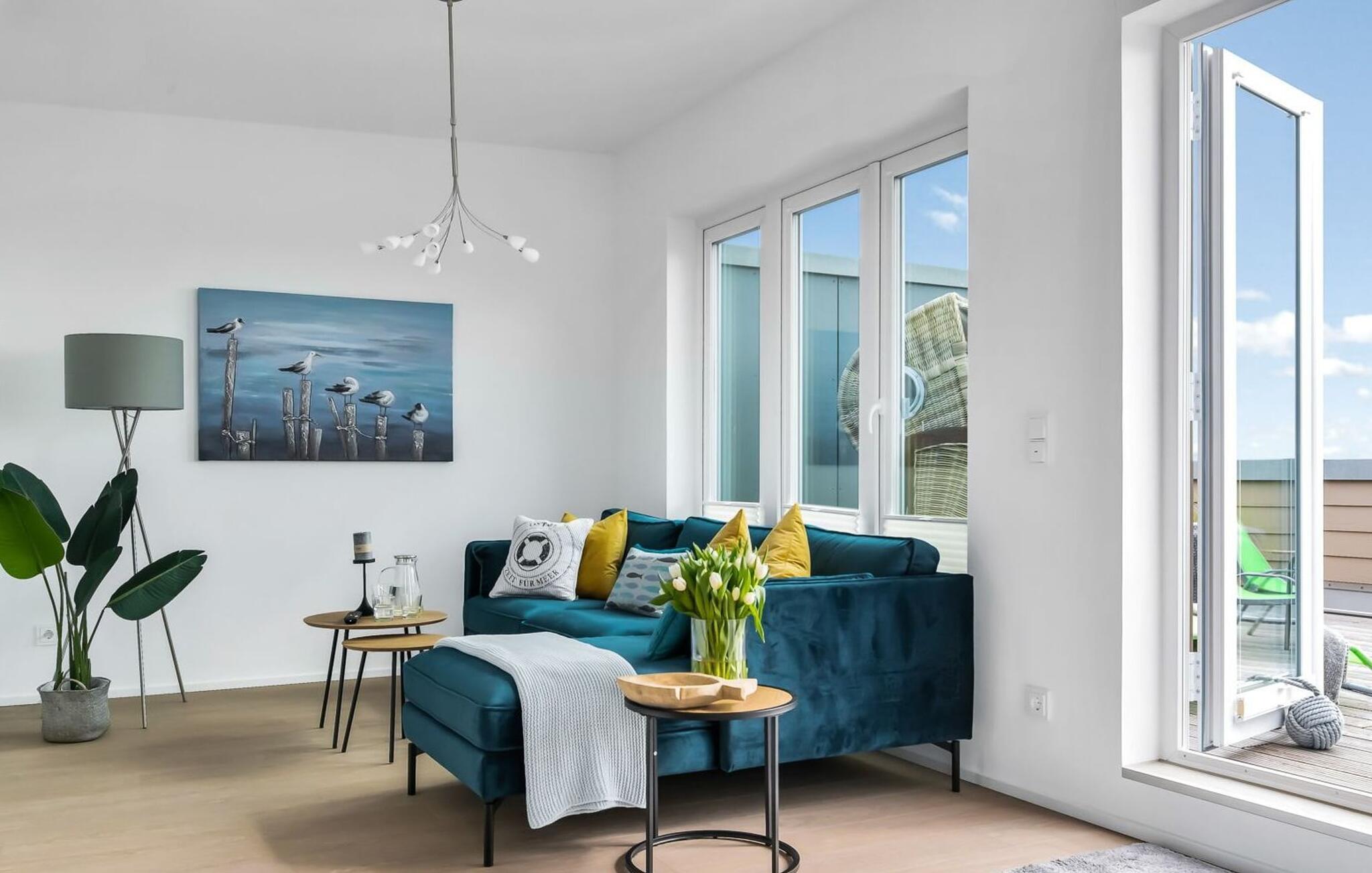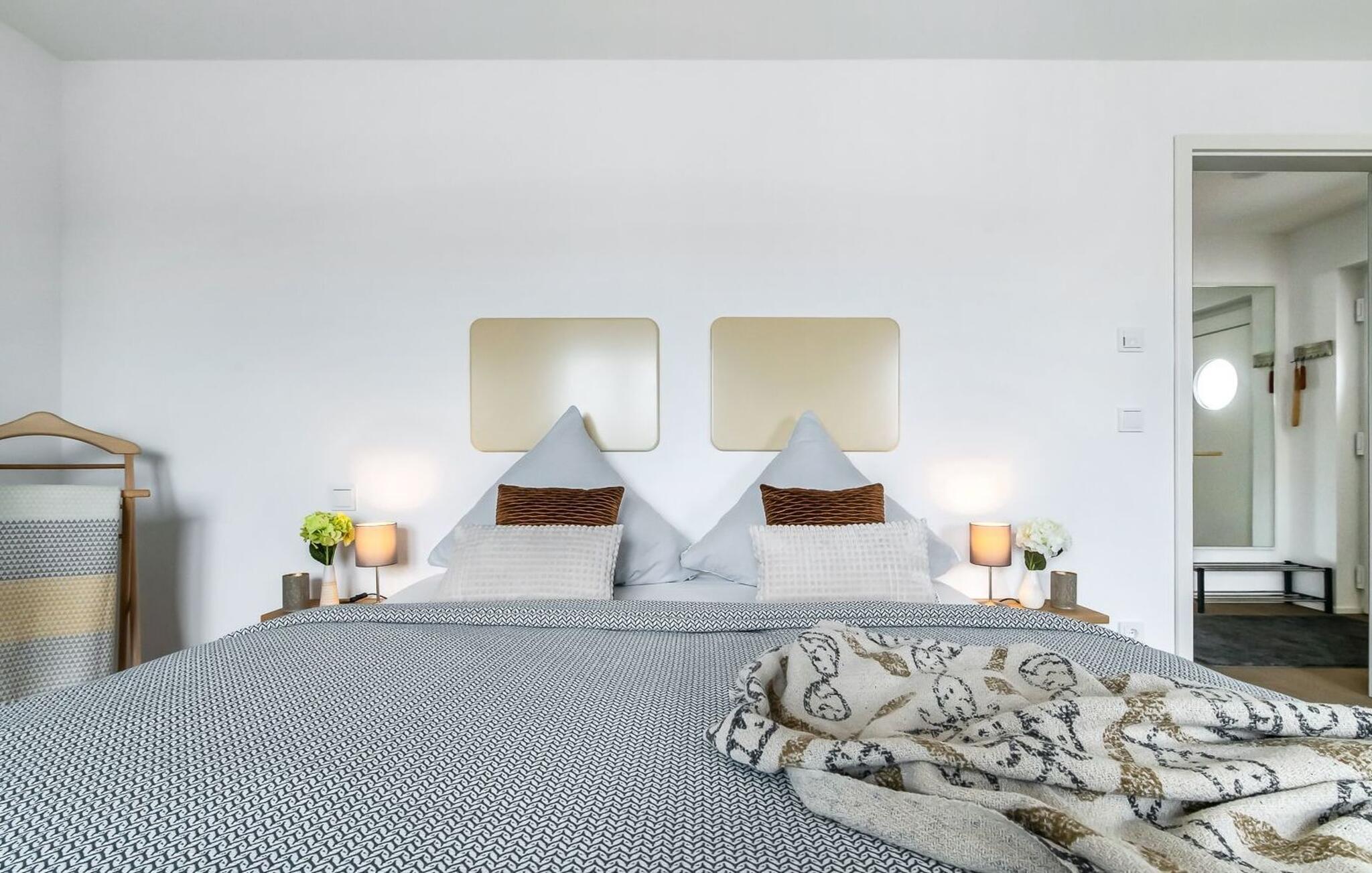 LICHTBLICK er en højkvalitets og stilfuldt indrettet maisonette ferielejlighed på 1. og 2. sal med direkte udsigt til de naturbeskyttede strandenge og marker. Et sandt paradis for hele familien. Sandstranden Weidefelder med kiosk, restaurant og strandstole ligger i gåafstand og er et attraktivt rejsemål på alle tider af året. Minigolfbanen med maritimt tema ligger også i umiddelbar nærhed og nydes af både unge og gamle. Når I træder ind i ferielejligheden på første sal, begynder jeres ferie fra allerførste øjeblik! I befinder jer direkte i lejlighedens afslapningsområde med i alt tre soveværelser. Her er noget for unge og gamle. Der er en rummelig dobbeltseng i det første og andet soveværelse. Det tredje soveværelse inviterer jer til at sove godt med to enkeltsenge. I dette rum vil selv de små gæster finde alt, hvad deres hjerter begærer. Fra børnebøger og legetøj til legemåtter. Så I kommer ikke til at kede jer selv i dårligt vejr! Der er også et fjernsyn i hvert soveværelse. Også på denne etage er det første af to badeværelser med bruser på gulvniveau og infrarød sauna. En oase af velvære, der sikrer afslapning i hver sæson. På anden sal finder I endnu et badeværelse med badekar, hvor I komfortabelt kan genoplade jeres batterier til den kommende dag. På denne etage lever LICHTBLICK op til sit navn. Her bliver I budt velkommen af vinduerne fra gulv til loft med den tilstødende terrasse og udsigt til de naturbeskyttede strandenge. Det lyse og indbydende opholdsområde gør en eller to hyggelige familieaftener mulige med hyggelig opholdsstue, fjernsyn og en fantastisk udsigt. Skulle vejret tage en drejning for den nordiske side, vil pejsen med sin knitrende ild give endnu mere komfort. Det åbne køkken er perfekt udstyret. At lave mad sammen er sjovt her! Så nyd de færdige lækkerier i en strandstol eller ved terrassebordet med et børnesæt eller start en hyggelig grillaften... Det er ren ferie. Den store terrasse vender mod sydvest og med udsigt til de naturfredede strandenge, marker og hav er solskinstimer uundgåelige. Foran ferielejligheden finder I jeres egen parkeringsplads. Vores yndlingssted: At nyde solen på terrassen med hele familien (og firbenede venner), en sand stråle af håb i en stresset hverdag. Bemærk venligst: OstseeResort Olpenitz er meget populært, og der bygges fortsat i parken. Ikke desto mindre kan I se frem til en 5-stjernet standard og et førsteklasses ophold. Byggeaktiviteterne kommer ikke til at forstyrre jer på ferien, og derfor gives der ikke yderligere afslag i prisen.