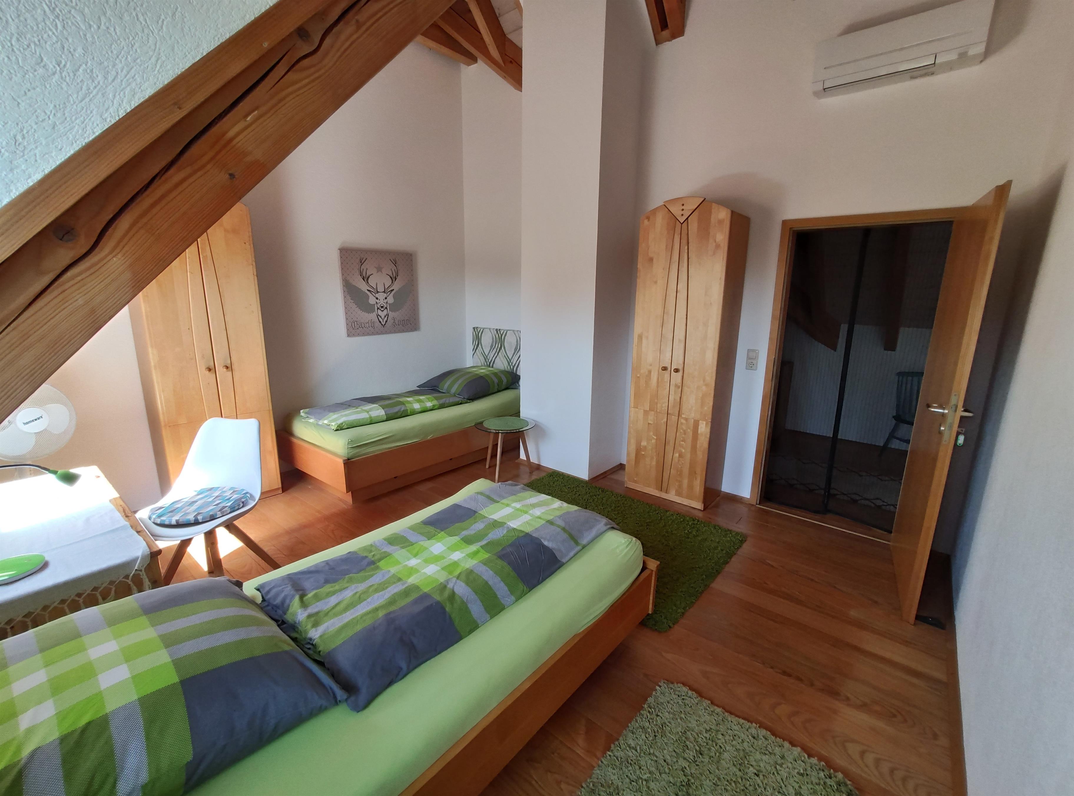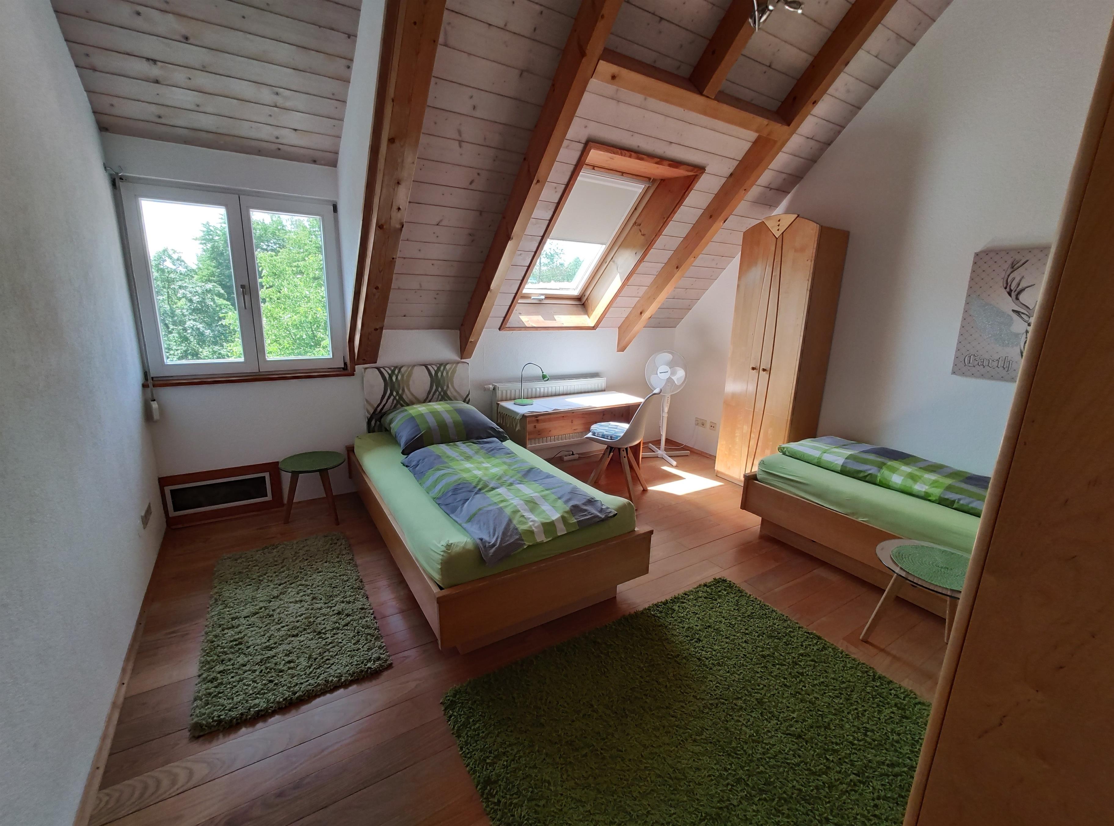 • Zimmer 2 (Grünes Zimmer) Mit zwei Einzelbetten, zwei Kleiderschränke und einem Schreibtisch