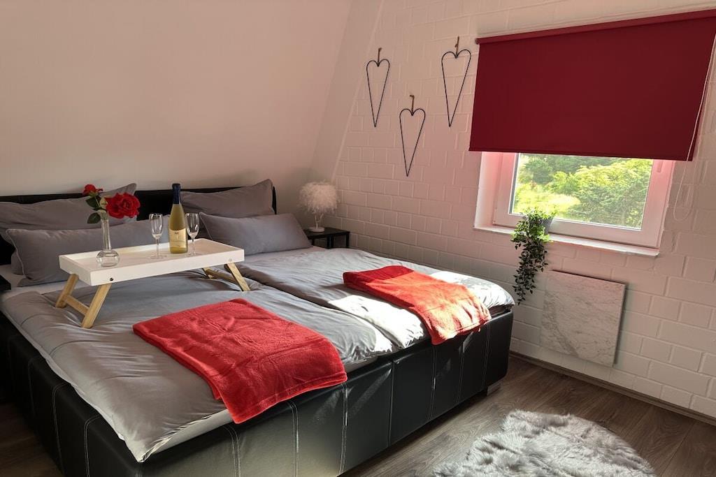 Ground floor: (Guest house ground floor, Kitchen, Living/diningroom, bedroom(double bed(180 x 200 cm))) On the 1st floor: (bedroom(double folding bed(140 x 200 cm))) Annex: (balcony or terrace) TV room, Internet access, First Aid, TV, fireplace, stove, cooker, oven, dishwasher, fridge, air conditioning, garden(Barbecue center, Lawn), sun loungers, parking, ironing board, iron