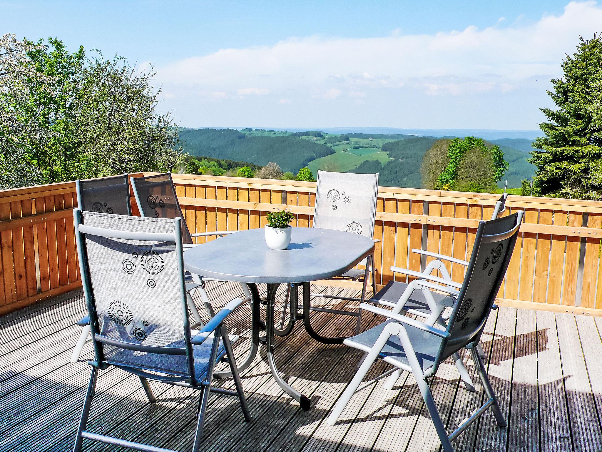 Timber house "Weitsicht". In the resort 2 km from the centre of Oberweissbach, in a quiet, sunny position on a slope, in the countryside. Private: small garden 25 m2 with lawn. Available: bicycles (3) (extra). E-charging station. Shop 2 km, grocery 2 km, supermarket 2 km, restaurant 100 m, bus stop 2 km, railway station "Bergbahn" 300 m, outdoor swimming pool 2 km, indoor swimming pool 10 km. Riding stable 3 km, walking paths from the house 100 m, ski lift 3 km, ski school 5 km, cross country ski track 3 km, children's playground 150 m. Nearby attractions: Thüringer Bergbahn 300 m. Well-known ski regions can easily be reached: Skiarena Silbersattel in Steinach 24 km, Oberhof 50 km. Hiking paths: Rennsteig 12 km. Access to the house on the ground floor (access from the car park via 15 steps). On request and after consulting the sauna for 2 person in the owner's house 20m can be used (5 € / person).