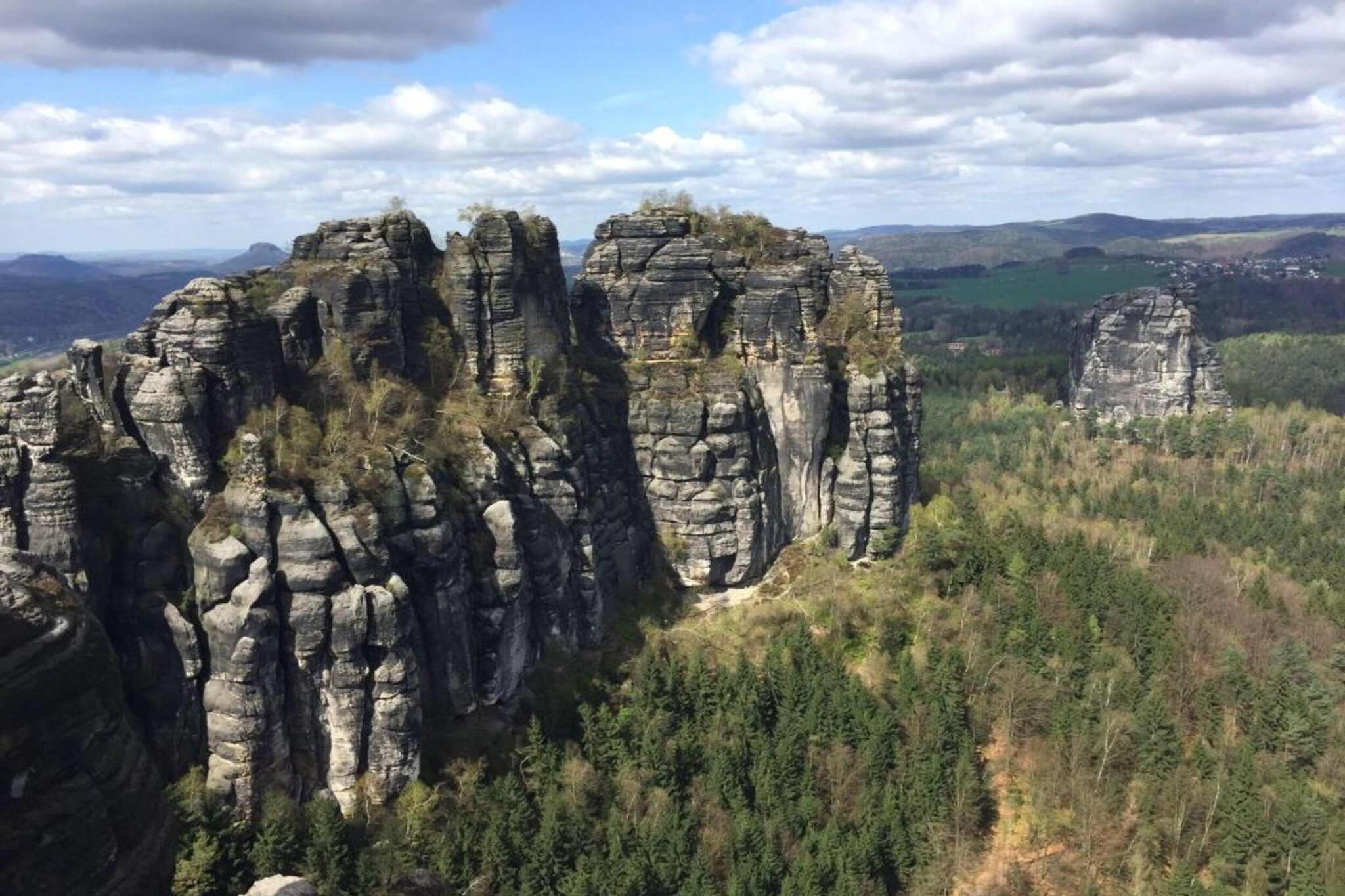 Beliggende i den fredelige landsby Lichtenhain, nær Sebnitz, er denne rummelige lejlighed i stueetagen perfekt til op til 6 gæster. Med to soveværelser – det ene med dobbeltseng, det andet med dobbeltseng (180 x 200 cm) og køjeseng – er det ideelt for familier eller små grupper. Det åbne køkken er fuldt udstyret med et keramisk komfur med 4 kogeplader, ovn, kombineret mikroovn, opvaskemaskine, køleskab/fryser, brødrister, filterkaffemaskine og endda et vaffeljern - perfekt til hjemmelavede måltider og hyggelig morgenmad. Stuen/spisestuen har fladskærms-satellit-tv, radio og spisebord. Badeværelset har bruser, håndvask og toilet, mens centralvarme sikrer komfort året rundt. Gæsterne kan nyde en fælles have på 1000 m² med dam, legeredskaber, parasol og kulgrill (efter anmodning). En barneseng, høj stol, vaskemaskine og betalt tørretumbler tilføjer ekstra bekvemmelighed. Parkering og cykelopbevaring er til rådighed på stedet. Med butikker, restauranter og offentlig transport kun 500 m væk, og skovstier, swimmingpools og skiløjper inden for rækkevidde, er dette hjem en fantastisk base for at udforske det saksiske Schweiz.