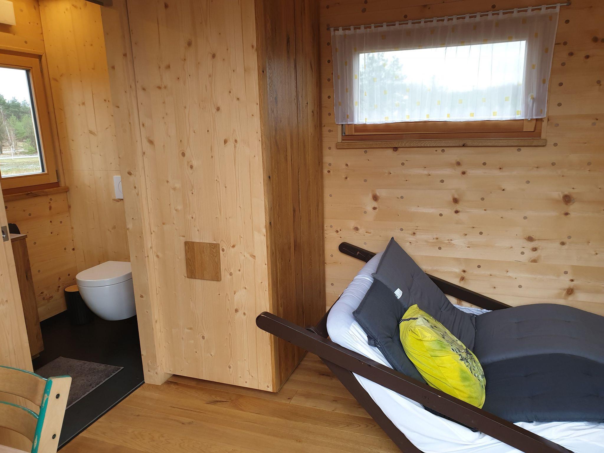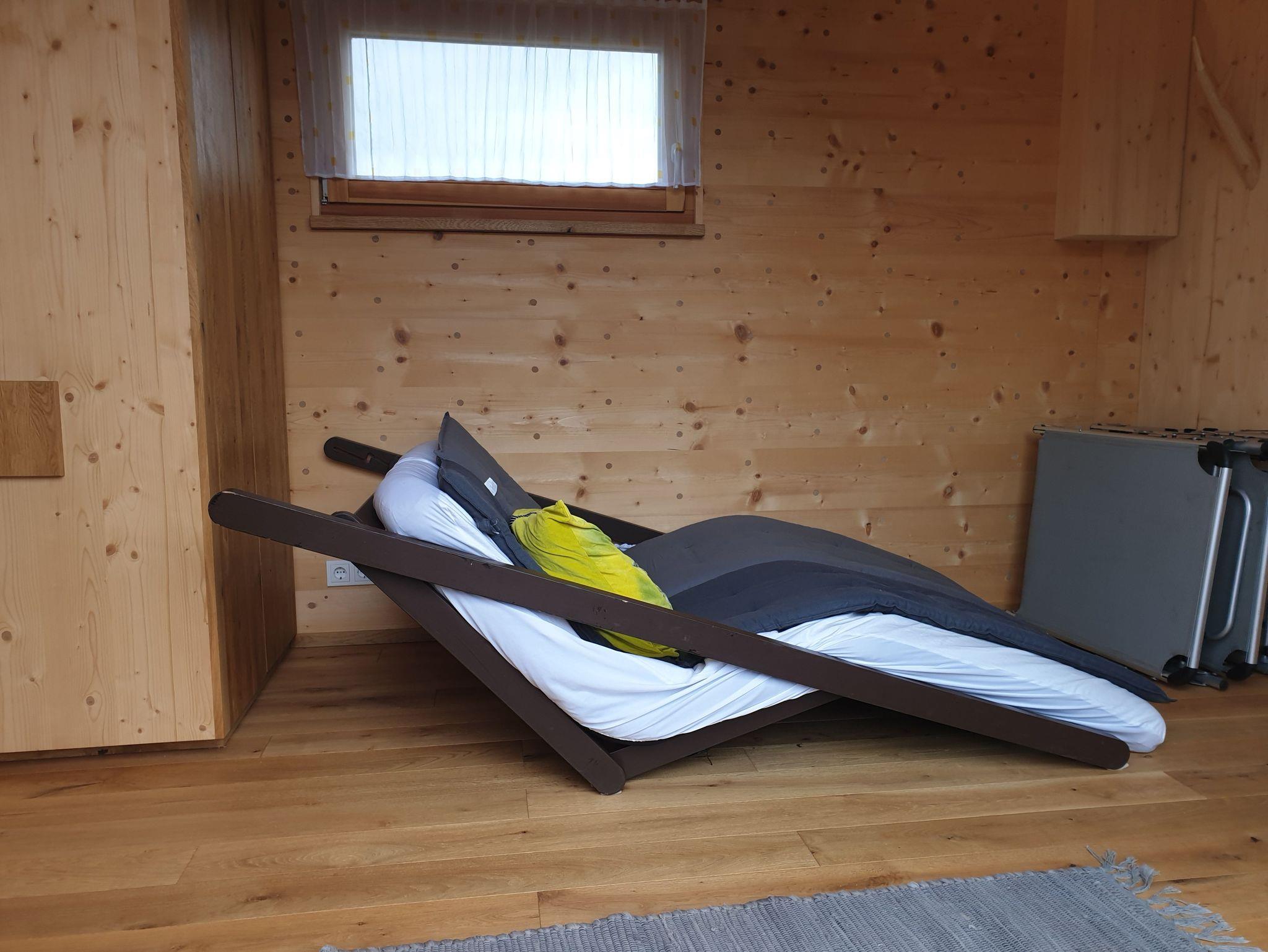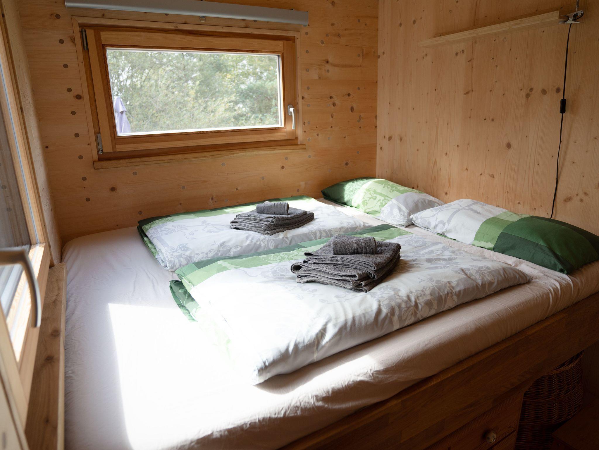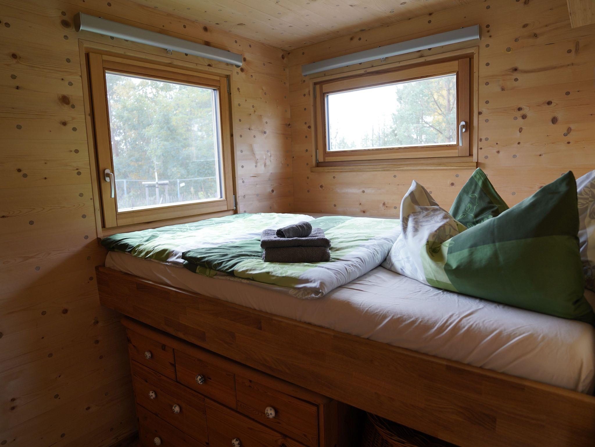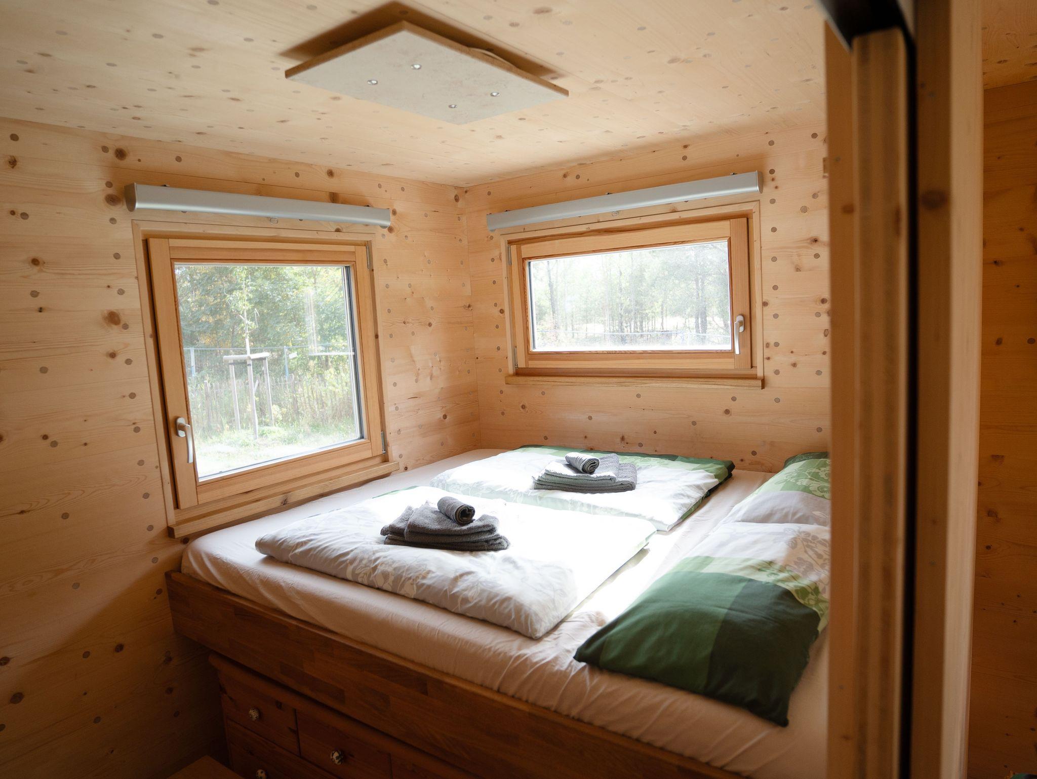Im Erdgeschoß gibt es zwei Schlafzimmer, eine große Wohnküche und ein Badezimmer. Schlafmöglichkeiten: 1 Zimmer mit einem Doppelbett (1,60 x 2,00m) - 1 Zimmer mit Hochbett (1,20 x 2,00m) und ein Bett (0,90 x 2,00m). Im Obergeschoß befindet sich die Sauna, der Ruheraum und ein weiteres Badezimmer. Durch die stilvolle bodengleiche Natursteindusche sind die Badezimmer ein echter Hingucker. Eine Aufbettung für bis zu vier weitere Personen ist möglich: Im Wohnzimmer ist eine komfortable ausklappbare Schlafcouch (1,60 x 2,00m) vorhanden und oben im Ruheraum wird die Futonliege zu einem bequemen Schlafplatz (1,40 x 2,00m). Zudem ist ein Baby-Reisebett vorhanden.