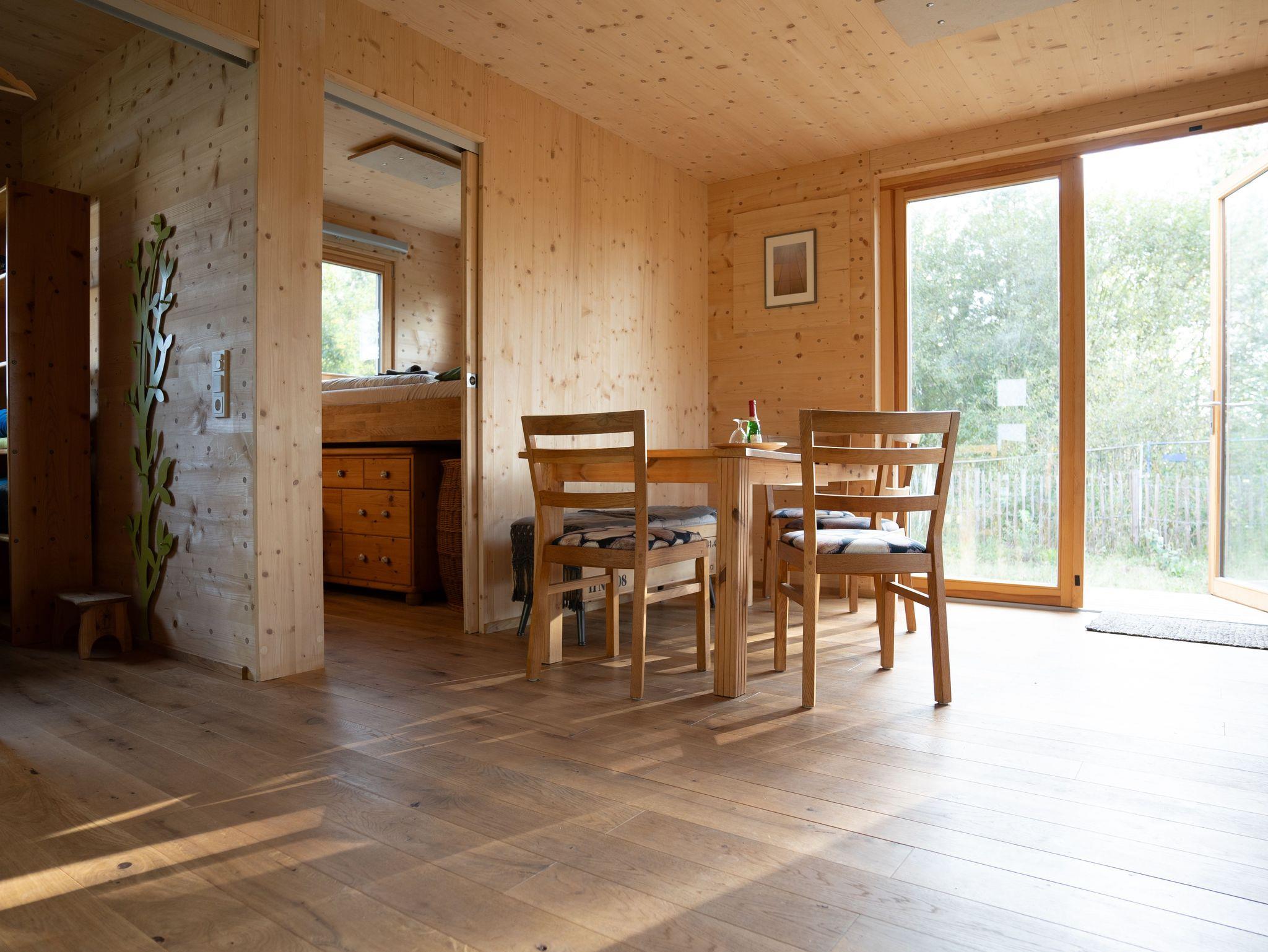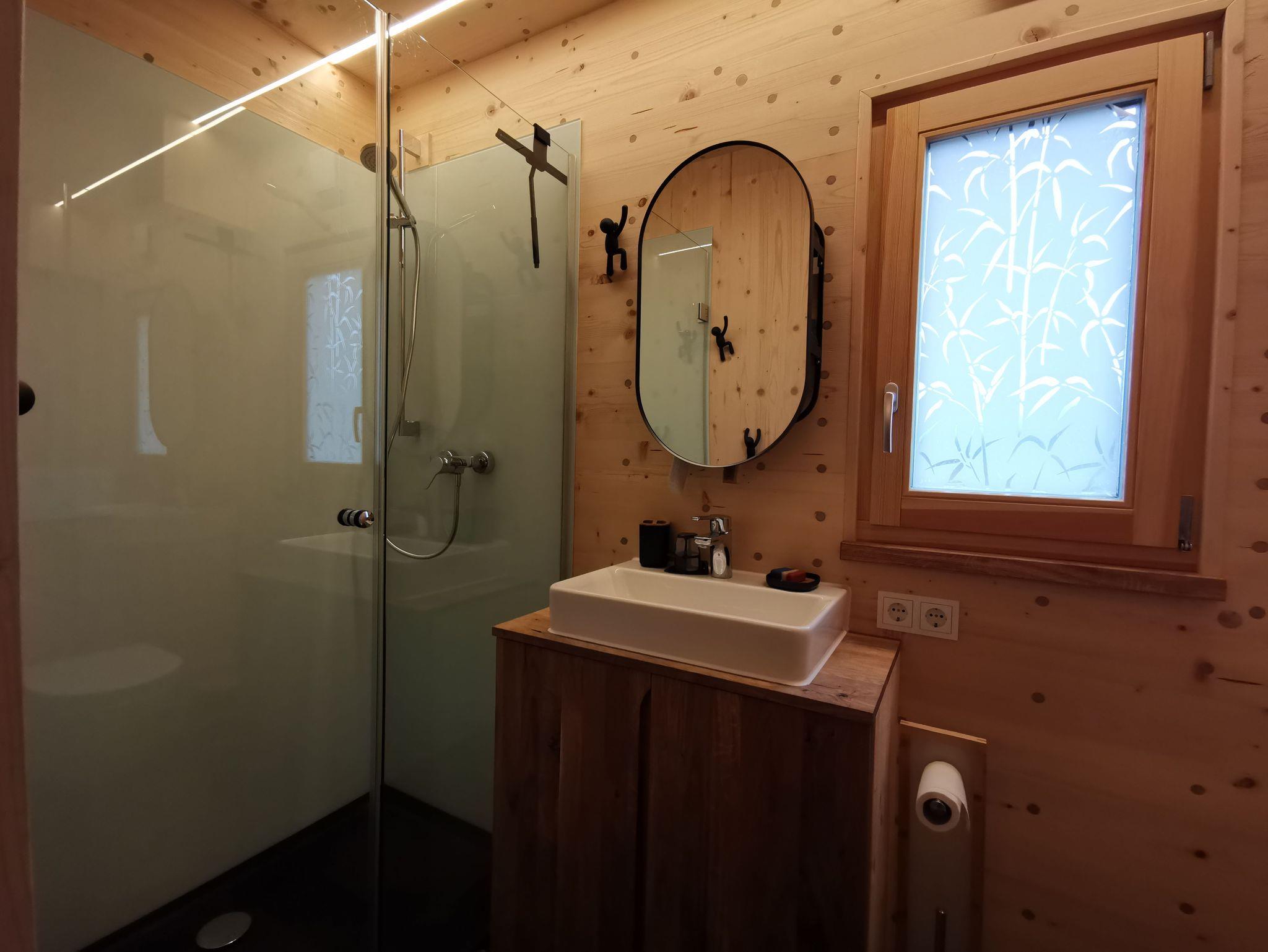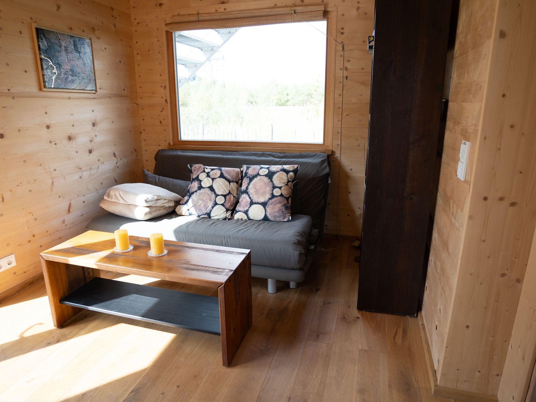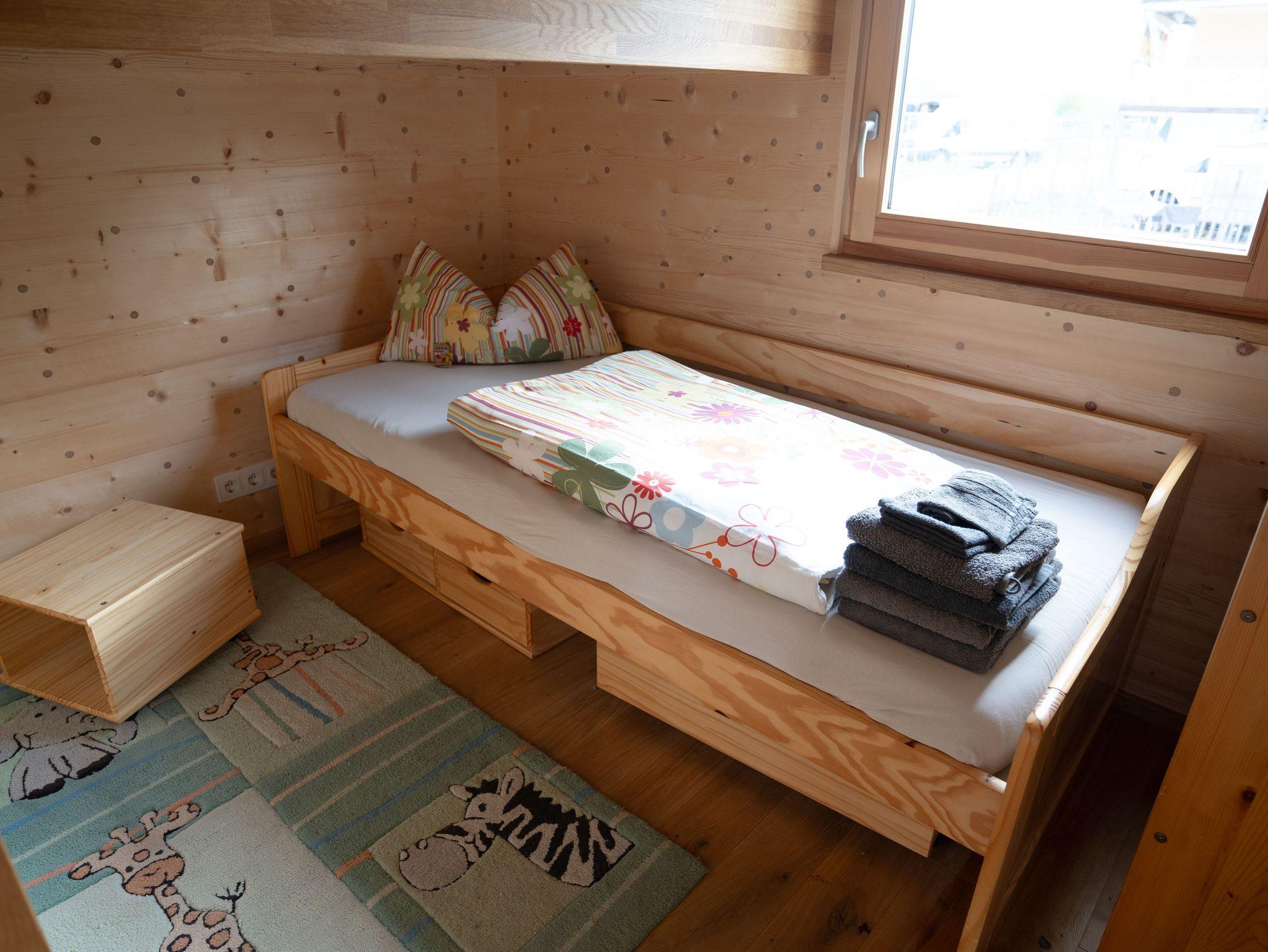 Im Erdgeschoß gibt es zwei Schlafzimmer, eine große Wohnküche und ein Badezimmer. Schlafmöglichkeiten: 1 Zimmer mit einem Doppelbett (1,60 x 2,00m) - 1 Zimmer mit Hochbett (1,20 x 2,00m) und ein Bett (0,90 x 2,00m). Im Obergeschoß befindet sich die Sauna, der Ruheraum und ein weiteres Badezimmer. Durch die stilvolle bodengleiche Natursteindusche sind die Badezimmer ein echter Hingucker. Eine Aufbettung für bis zu vier weitere Personen ist möglich: Im Wohnzimmer ist eine komfortable ausklappbare Schlafcouch (1,60 x 2,00m) vorhanden und oben im Ruheraum wird die Futonliege zu einem bequemen Schlafplatz (1,40 x 2,00m). Zudem ist ein Baby-Reisebett vorhanden.