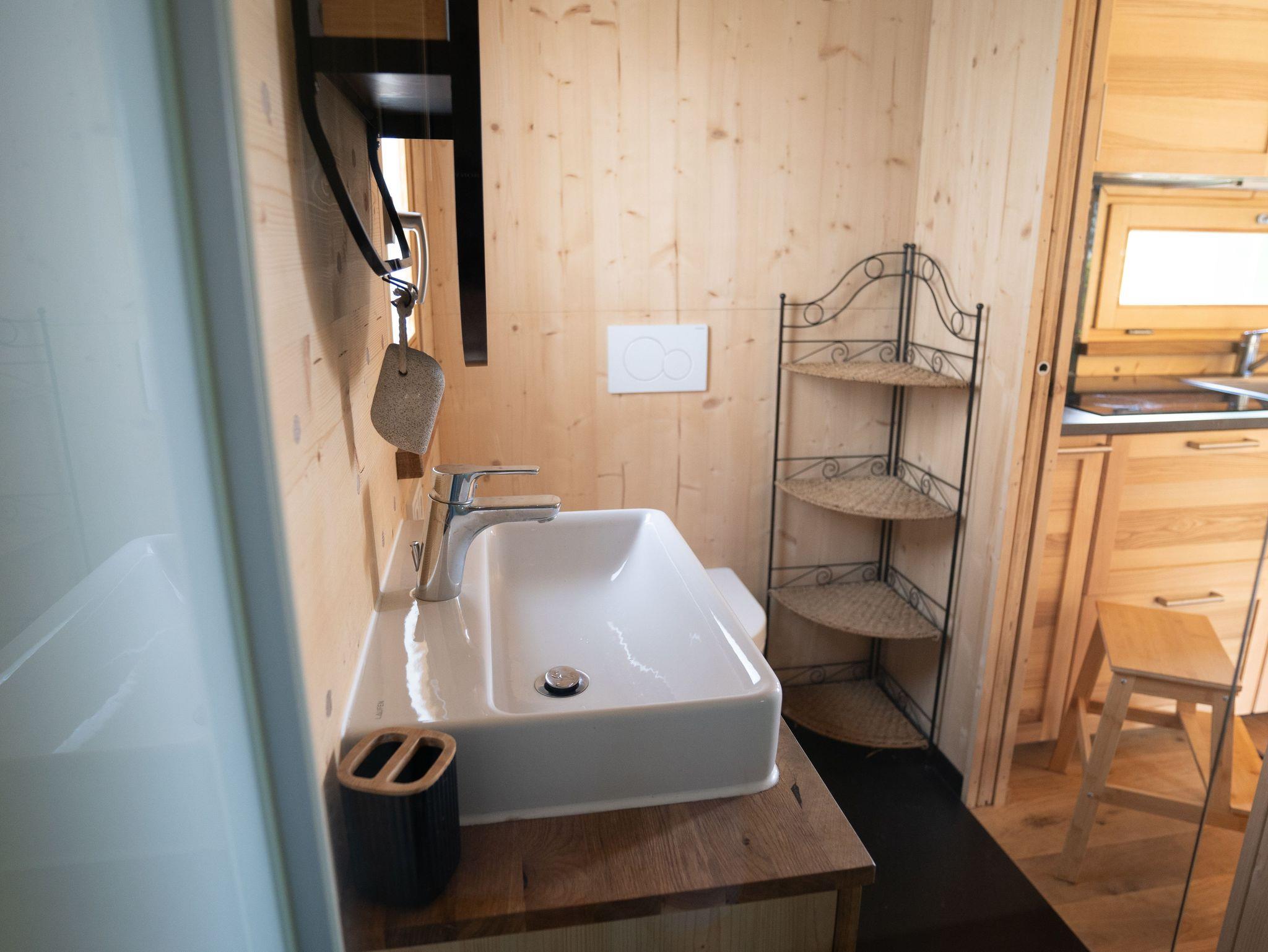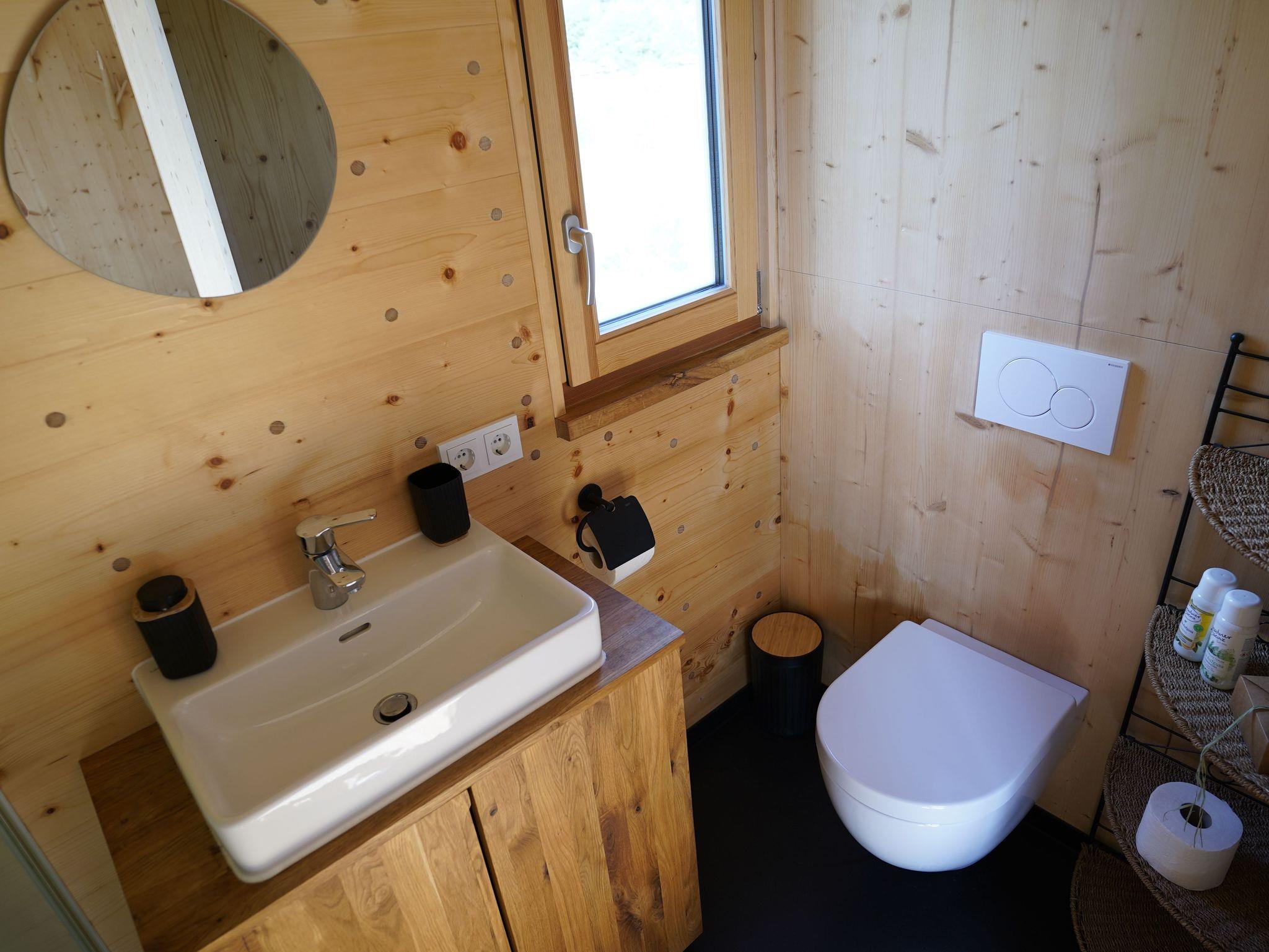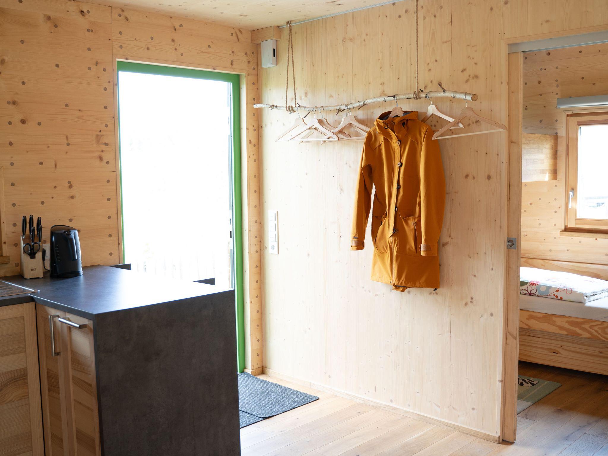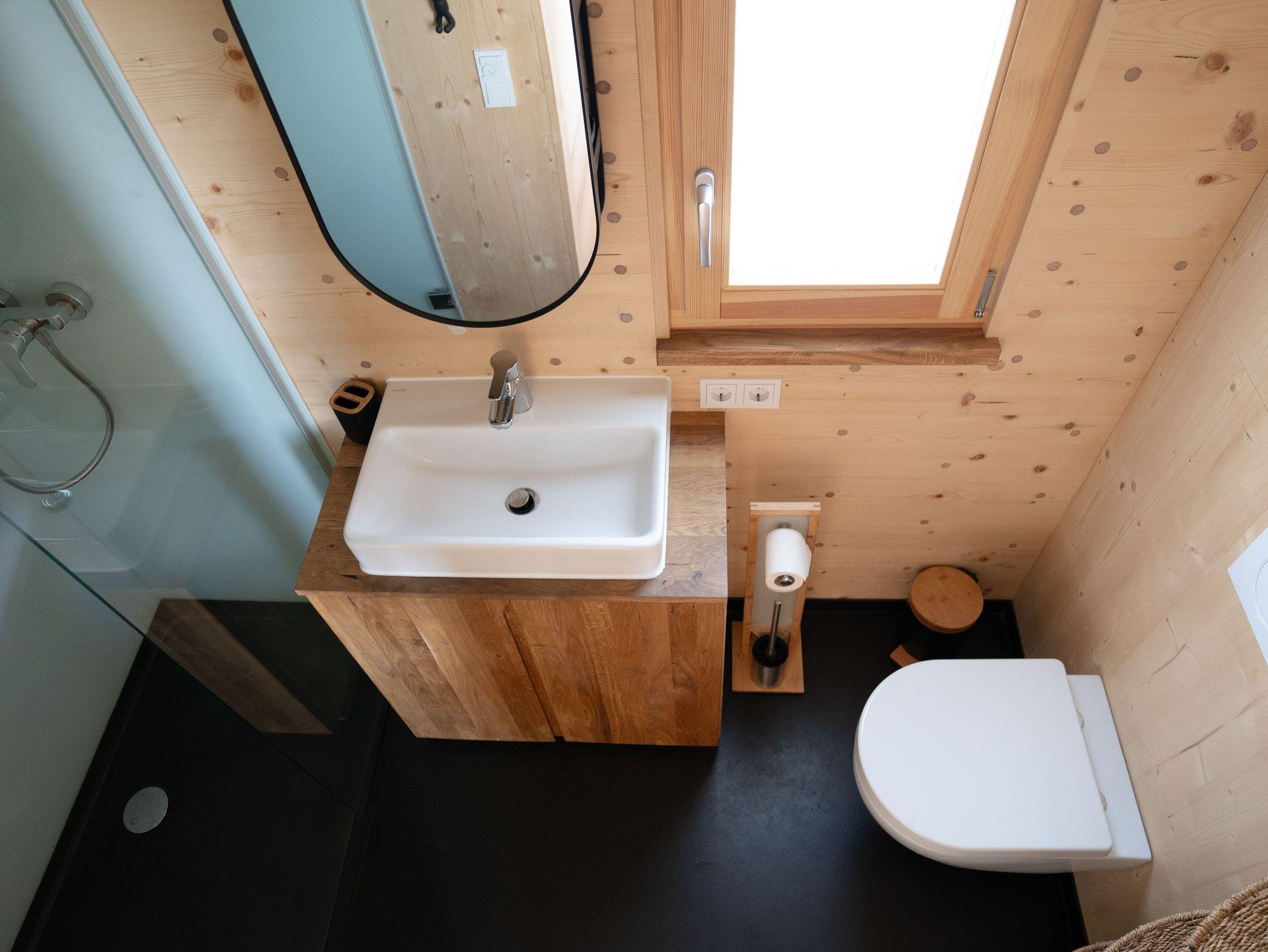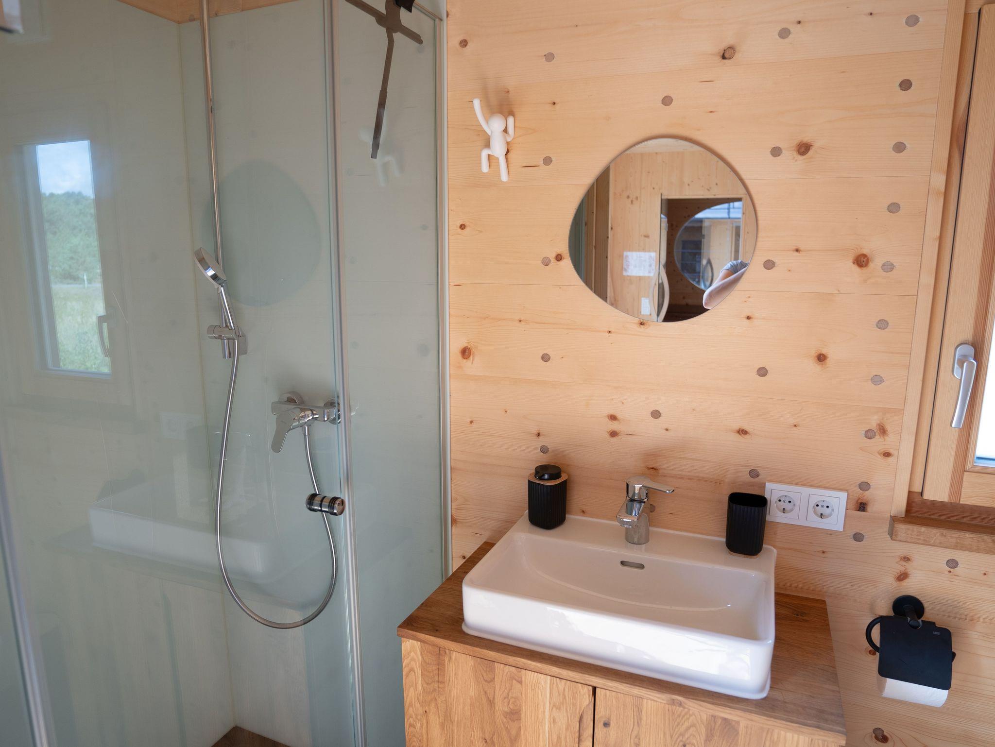 Im Erdgeschoß gibt es zwei Schlafzimmer, eine große Wohnküche und ein Badezimmer. Schlafmöglichkeiten: 1 Zimmer mit einem Doppelbett (1,60 x 2,00m) - 1 Zimmer mit Hochbett (1,20 x 2,00m) und ein Bett (0,90 x 2,00m). Im Obergeschoß befindet sich die Sauna, der Ruheraum und ein weiteres Badezimmer. Durch die stilvolle bodengleiche Natursteindusche sind die Badezimmer ein echter Hingucker. Eine Aufbettung für bis zu vier weitere Personen ist möglich: Im Wohnzimmer ist eine komfortable ausklappbare Schlafcouch (1,60 x 2,00m) vorhanden und oben im Ruheraum wird die Futonliege zu einem bequemen Schlafplatz (1,40 x 2,00m). Zudem ist ein Baby-Reisebett vorhanden.