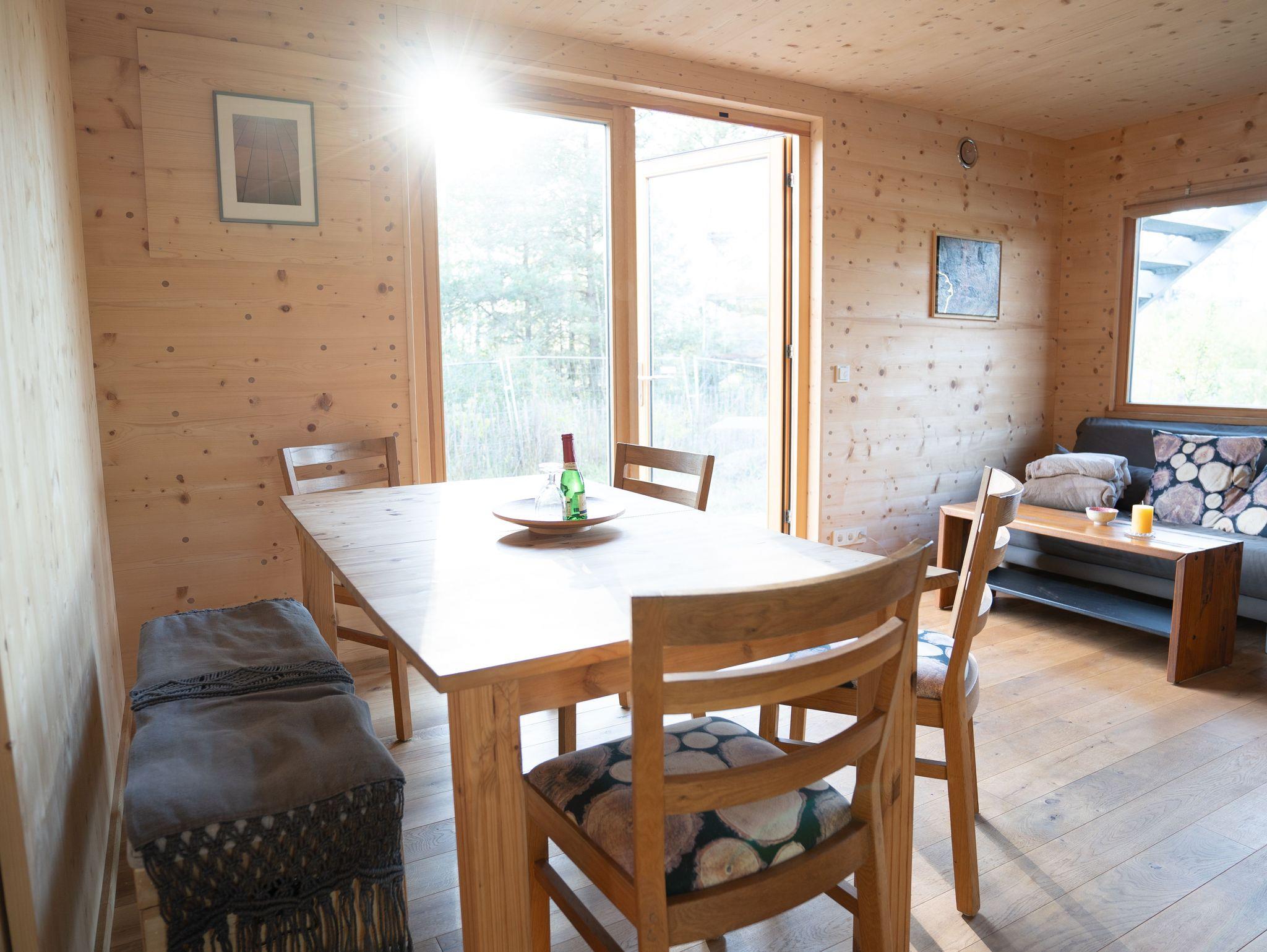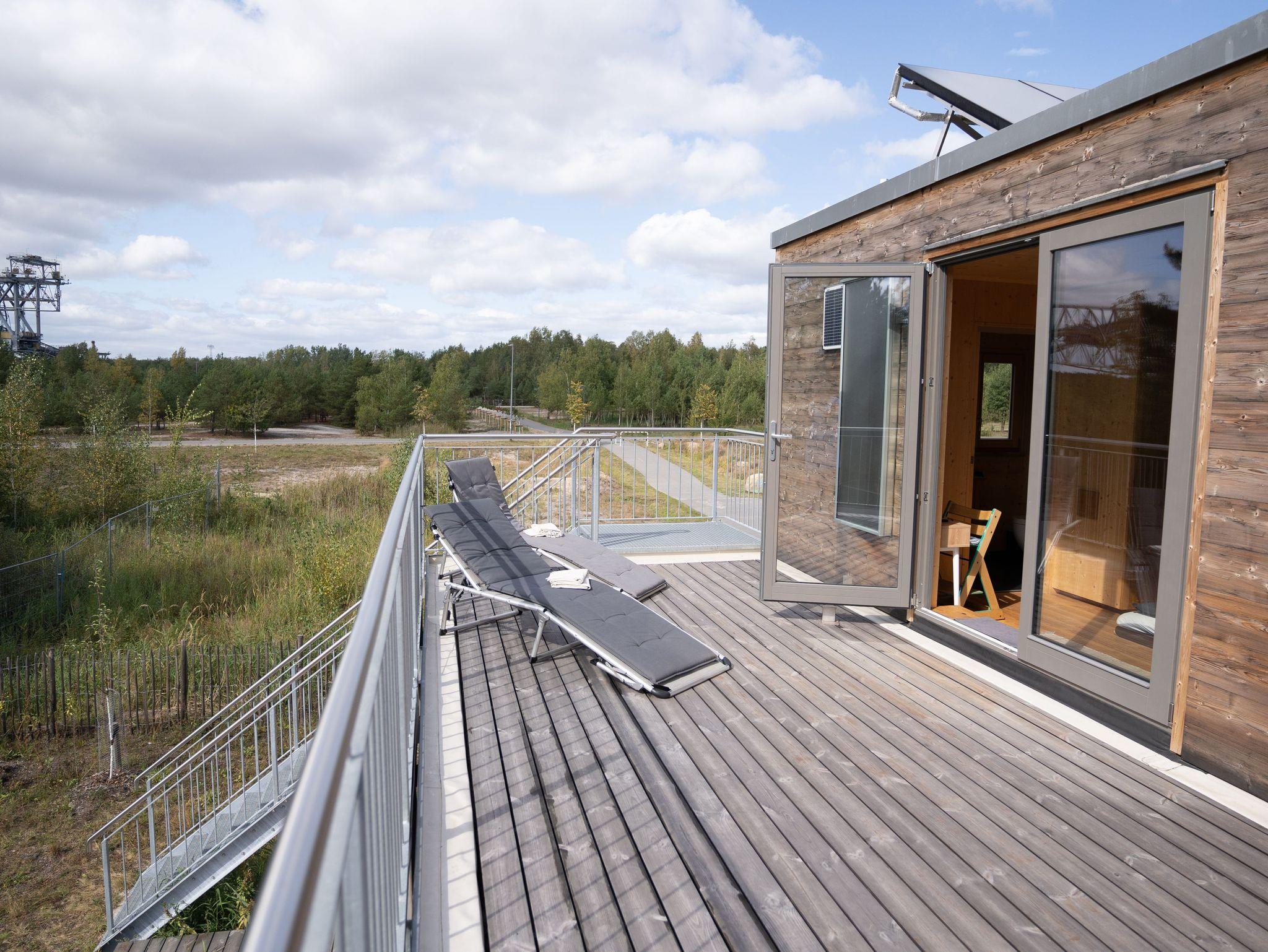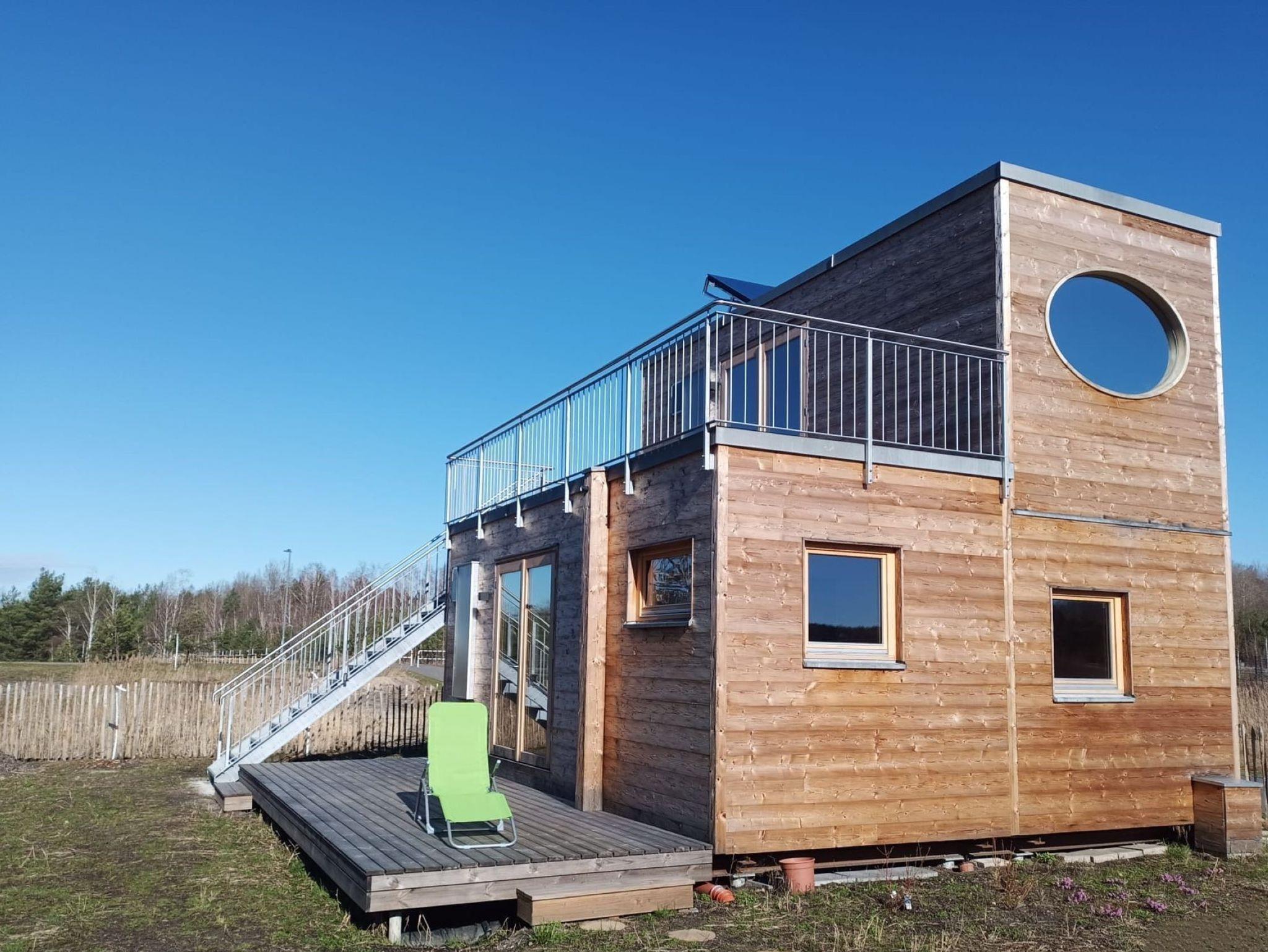 Dieses individuell gestaltete, liebevoll eingerichtete Vollholzhaus lädt Dich ein, Deinen Urlaub zu genießen. Hier kannst Du in ruhiger und entspannter Atmosphäre die Seele baumeln lassen. Beim Errichten des Ferienhauses wurde besonders Wert auf eine energieeffiziente sowie nachhaltige Bauweise gelegt. Es besteht aus Fichten-/Tannenholz, das nach ganz speziellen Vorgaben geschlagen, gelagert und verarbeitet wird (Thoma Holz100). Dadurch entsteht ein besonders angenehmes Raumklima und es bietet sehr gute Abschirmung vor Hitze. Es beruhigt nachweislich Deine Atem- und Herztätigkeit. Hier kannst Du fernab vom Trubel einfach einmal loslassen und den Alltag vergessen, gemütlich ein Buch lesen oder das Lausitzer Seenland mit seinen vielfältigen Angeboten erkunden. In der gut ausgestatteten Küche mit Induktionsherd und Backofen macht das Zubereiten von leckeren Gerichten Freude. Im angrenzenden Essbereich schafft die helle Fensterfront Wohlfühl-Atmosphäre. Der Esstisch sowie die gemütliche Sofaecke finden hier ihren Platz. Die Terrasse lädt dich ein, die Sonne zu genießen und den Grill anzuwerfen. Für Entspannung und Wellness steht eine großzügige Sauna mit Seeblick durch das große Panoramafenster sowie ein Ruheraum zur Verfügung. Die unmittelbare Nähe zum Sandstrand ermöglicht dir tollen Badespaß. Das Ferienhaus über zwei Etagen mit seiner liebevollen Einrichtung und sehr komfortablen Ausstattung bietet Platz für bis zu 8 Personen auf ca. 70 m² Wohnfläche.