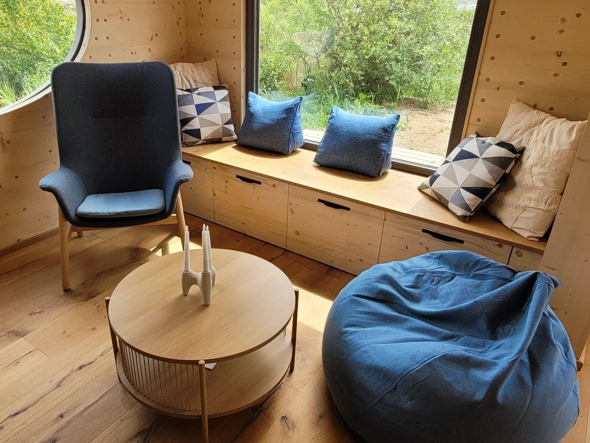 Das neu errichtete Holzhaus bietet auf ca. 55m² ausreichend Platz für bis zu vier Personen und überzeugt mit einer warmen, gemütlichen Atmosphäre. Es verfügt über einen großzügigen Wohn- und Essbereich, ein Schlafzimmer mit Doppelbett, ein weiteres Schlafzimmer mit zwei Einzelbetten sowie ein modernes Badezimmer mit Dusche.Direkt am idyllischen Bergheider See gelegen, eignet sich das Haus hervorragend für einen Kurzurlaub oder eine erholsame Auszeit in der stillen Natur der Lausitz. An sonnigen Tagen lädt die möblierte Terrasse zum Entspannen oder Grillen ein – mit Blick ins Grüne und frischer Luft.Ein besonderes Highlight ist das große runde Panoramafenster neben einer gemütlichen Sitzbank: Selbst bei Regen bietet das Ferienhaus so einen behaglichen Rückzugsort zum Lesen, Träumen oder einfach zum Genießen der Ruhe.