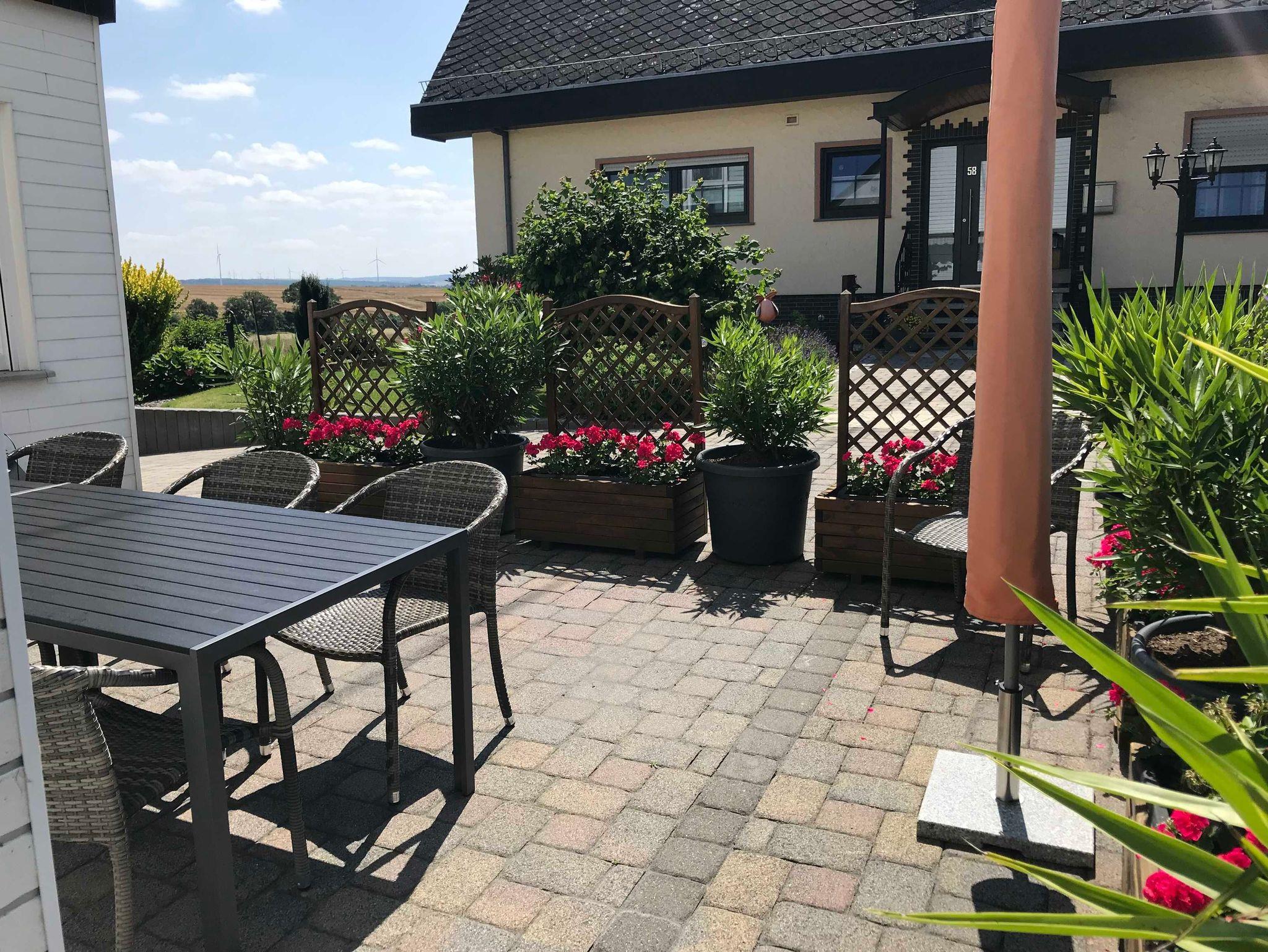 Das Ferienhaus Weins bietet Familien, Wanderern, Gruppen-8 Personen, Radfahrern oder Motorradfahrern gleichermaßen eine ideale Unterkunft. Ob Standpunkt für aktive Touren oder Platz der Ruhe, bei uns werden Sie sich auf 130 m² Wohnfläche sehr wohlfülen. In 5 separaten Schlafzimmern können bis zu 8 Gäste die ländliche Dorfkulisse genießen. Eine Küche mit Sitzecke bietet Gelegenheit zur Selbstversorgung. Im direckt angeschlossenem Wintergarten lässt sich der Weitblick über die Hunsrückhöhen genießen. Die direckt am Haus gelegene Grillecke eignet sich Ideal um einen schönen Urlaubstag gemütlich ausklingen zu lassen. 2 Badezimmer mit Dusche und WC lassen keine Wünsche offen Handtücher sind vorhanden . Eine Überdachung für Autos, Motorräder oder Fahrräder ist vorhanden. Parkplätze sind am Haus. Kinder oder Beistellbett auf Anfrage