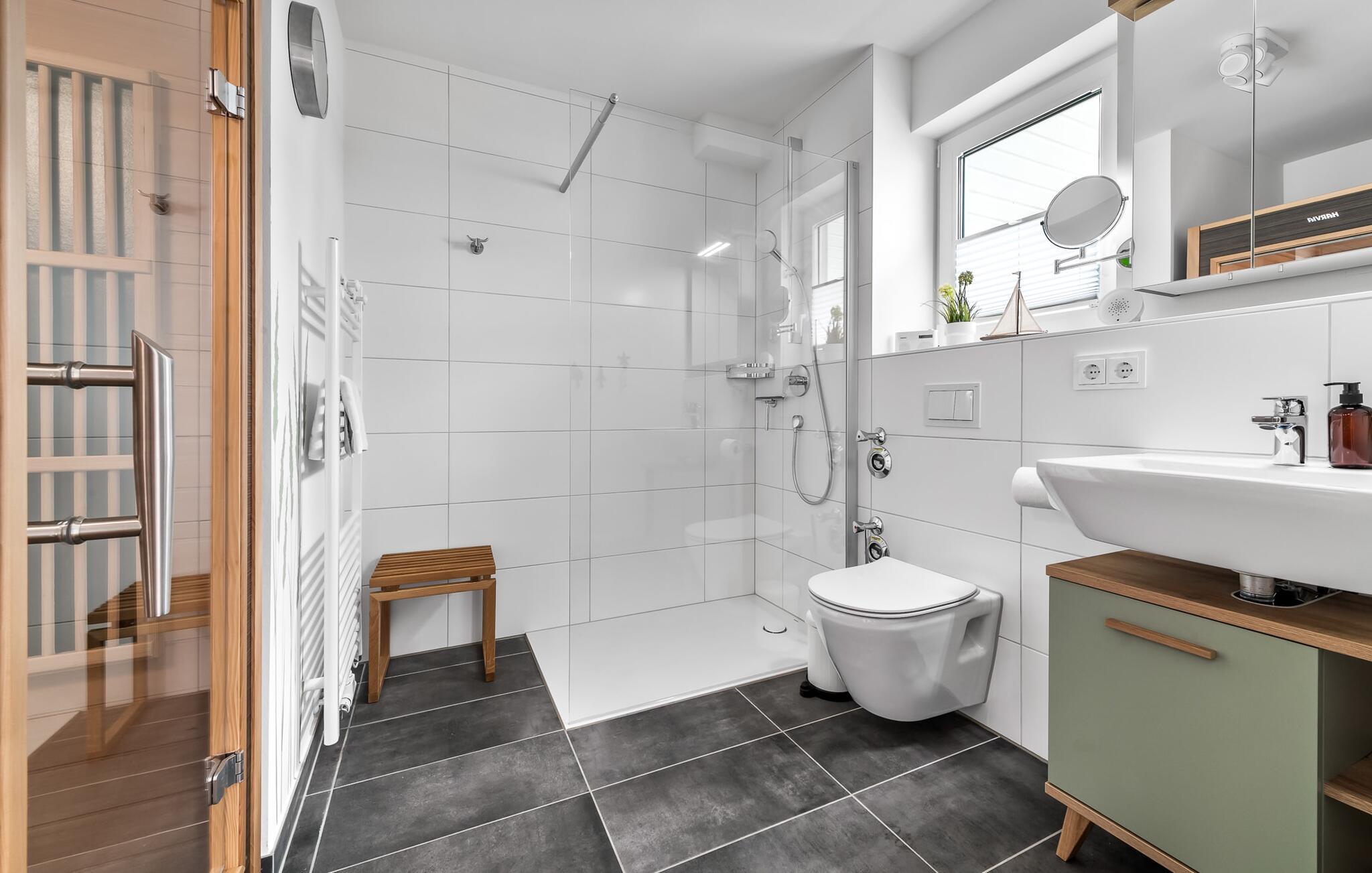 Det private wellness-område lægger op til at slappe af. En infrarød sauna (varmekabine) med et lydsystem og en bruser på gulvniveau er skønt efter en gåtur på stranden.