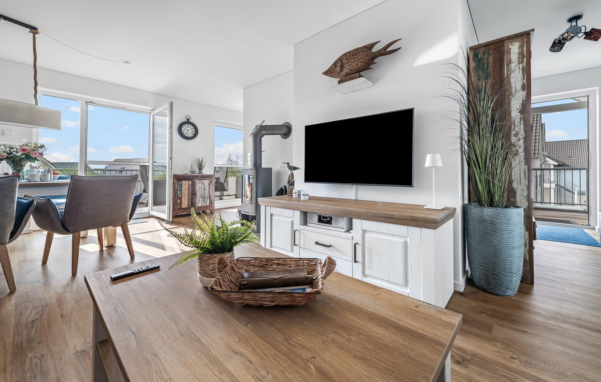 Kun få meter fra Weidefelds sandstrand og havnepromenaden ligger den moderne ferielejlighed LIEGEPLATZ med central beliggenhed, fantastisk nærhed til naturen og topfaciliteter. I kan nyde solen hele dagen lang på de to altaner.