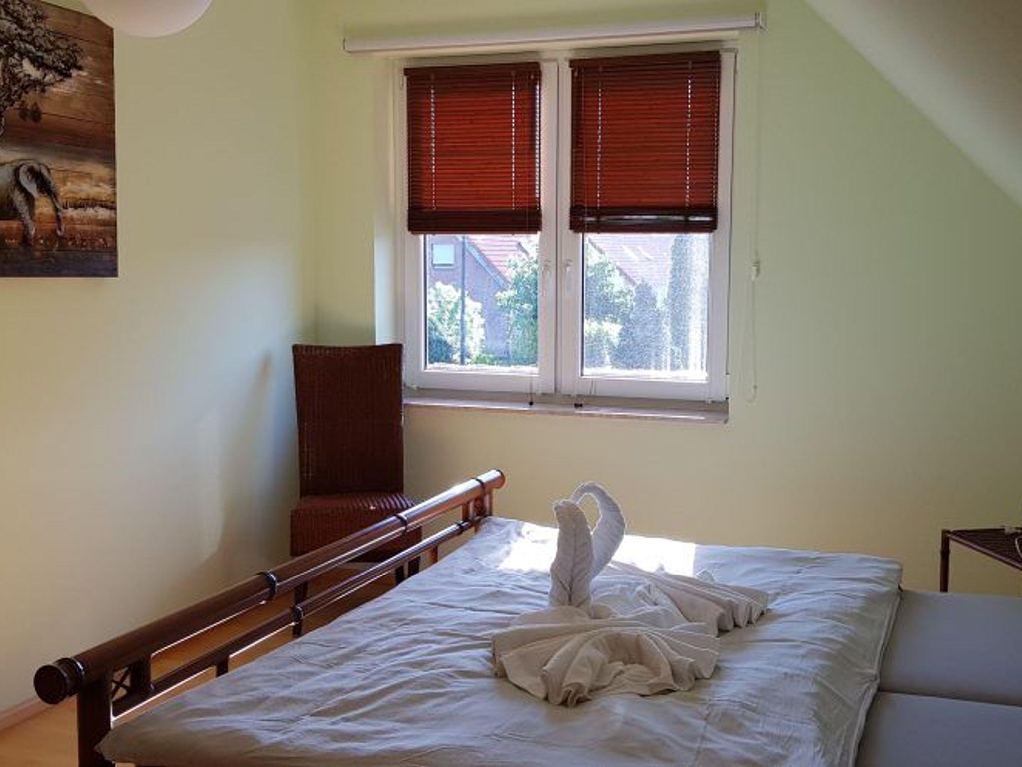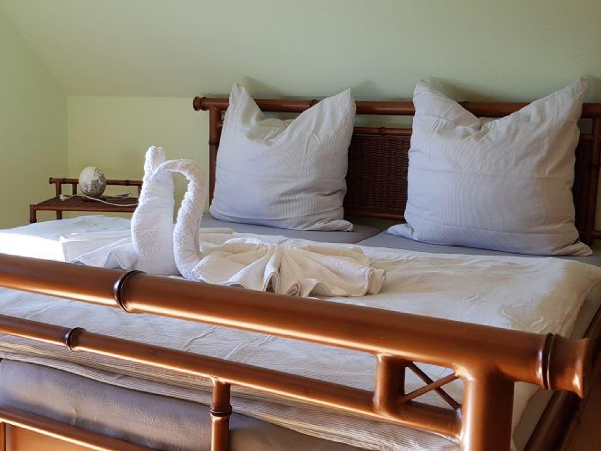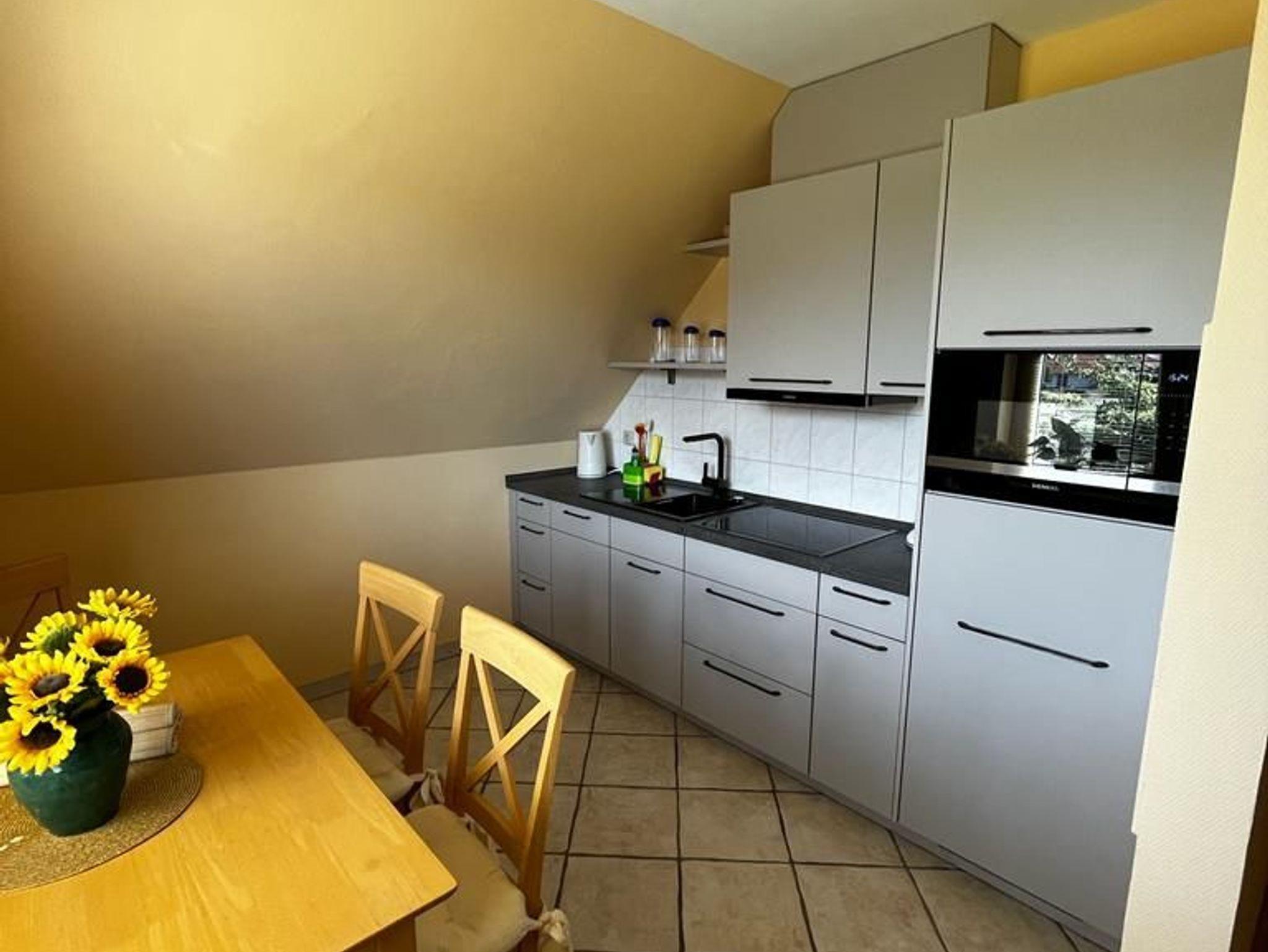 Die ca. 45 m² große Wohnung im Obergeschoss für bis zu 4 Personen verfügt über einen WLAN-Zugang, ist mit allen Annehmlichkeiten ausgestattet und durch Fußbodenheizung ganzjährig beheizbar. Zusätzlich gehört zur Wohnung ein großer Garten mit Grillplatz für einen schönen Grillabend. Die Küche hält alles für den Urlaub bereit, Kaffeemaschine, Wasserkocher, Toaster, Mikrowelle, Ceranherd, Spülmaschine sowie Kühlschrank. Die Wohnung verfügt über 1 Schlafzimmer mit einem großen Doppelbett. Das Badezimmer ist mit Fön, Handtüchern und Dusche ausgestattet. Das Wohnzimmer verfügt über einen Flachbildfernseher mit Sat-TV und einem XXL-Schlafsofa. Für die Grillparty steht der Grill bereit, der Garten mit Pavillon bietet zusätzlichen Platz und hat ausreichend Bestuhlung für 4 Gäste. Natürlich gibt es zu der Ferienwohnung auch kostenfreie Parkplätze.