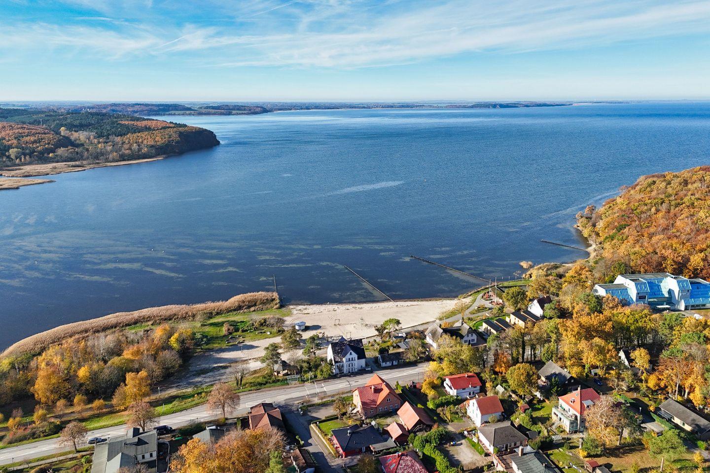 Lietzow, malerisch eingebettet zwischen dem Großen und Kleinen Jasmunder Bodden, ist ein idyllischer Rückzugsort für Naturliebhaber und Ruhesuchende. Der kleine Ort, der zur Gemeinde Jasmund gehört, beeindruckt mit seiner einzigartigen Lage auf einer schmalen Landenge, an der Wasser, Wald und offene Horizonte aufeinandertreffen. Besonders reizvoll ist die unmittelbare Nähe zum Nationalpark Jasmund mit seinen weltbekannten Kreidefelsen und dem dichten Buchenwald, der zum UNESCO-Weltnaturerbe zählt. Zahlreiche Wander- und Radwege führen direkt von Lietzow in diese eindrucksvolle Naturlandschaft.
