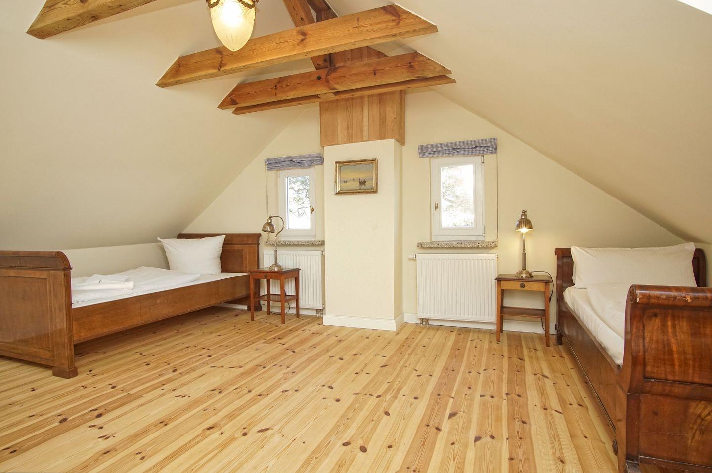SCHLAFEN // ein Schlafzimmer im OG mit bequemem Doppelbett, Kleiderschrank, Meerblick, zwei Schlafzimmer im DG mit jeweils zwei Einzelbetten, Kleiderschrank und Meerblick ++