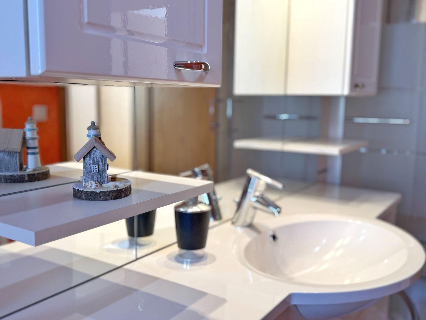 Badezimmer: Dusche, WC, Waschbecken