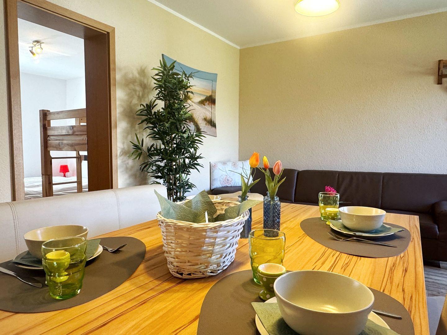 Wohnung 2 - Erdgeschoß, 60 qm Wohnfläche, 4-6 Personen, Terrasse, Gartenblick, komfortabel-moderne Ausstattung