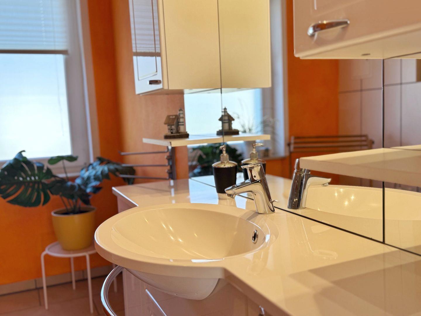 Badezimmer: Dusche, WC, Waschbecken