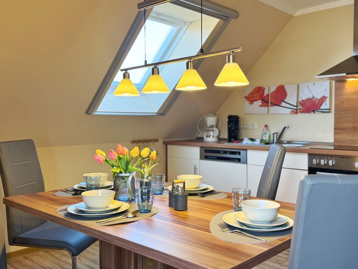 Im Obergeschoß befinden sich zwei weitere, separate Ferienwohnungen mit einer Wohnfläche von 50 bzw. 75 m². Die größere Wohnung ist für 4-6 Personen ausgestattet, die kleinere Wohnung bietet Platz für 2-3 Personen.
