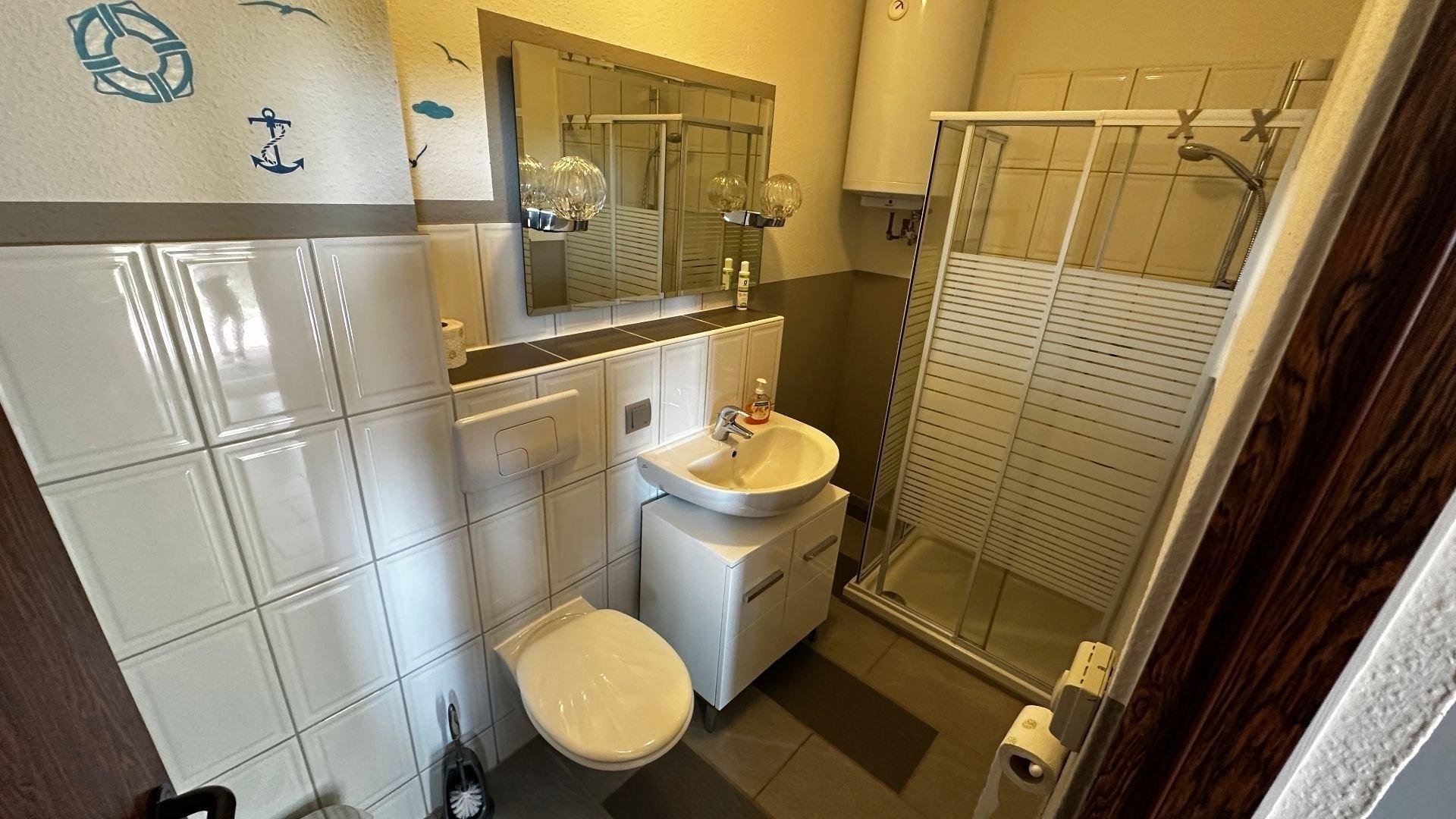 Bad: Dusche, WC, Haartrockner