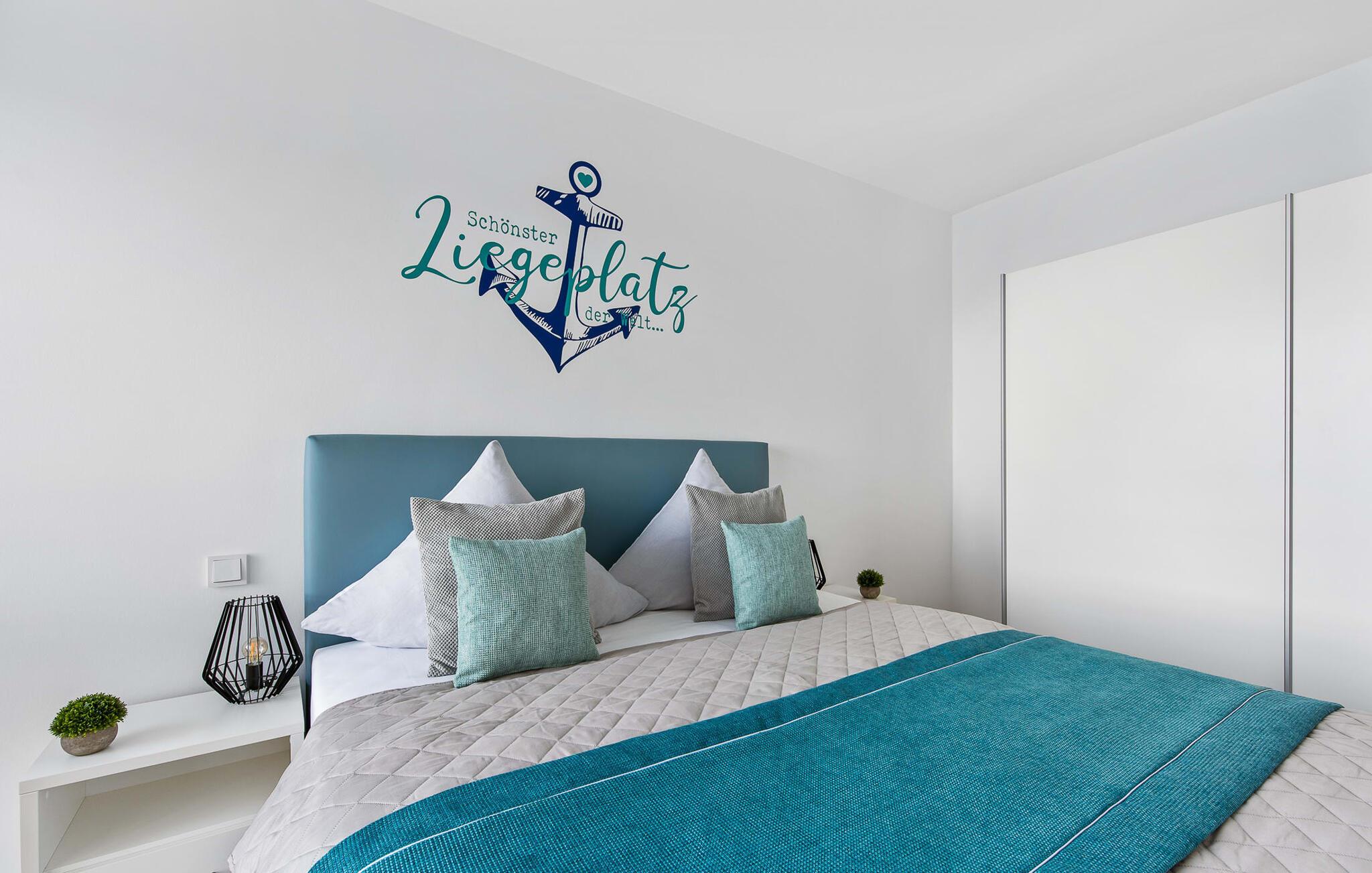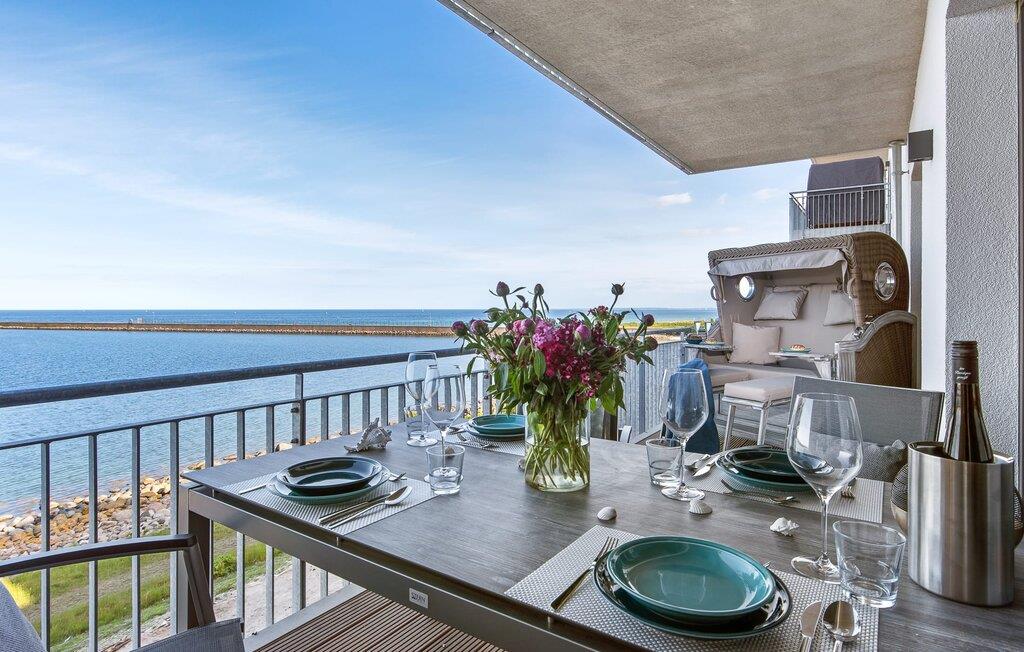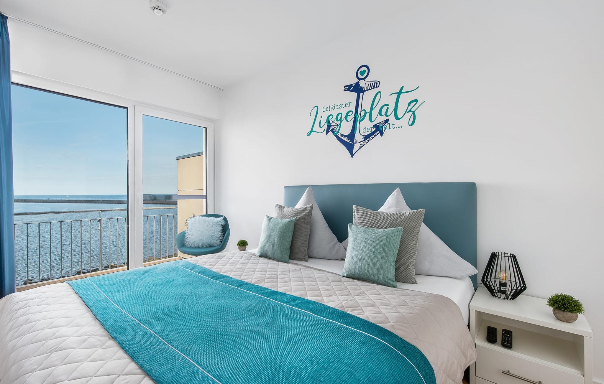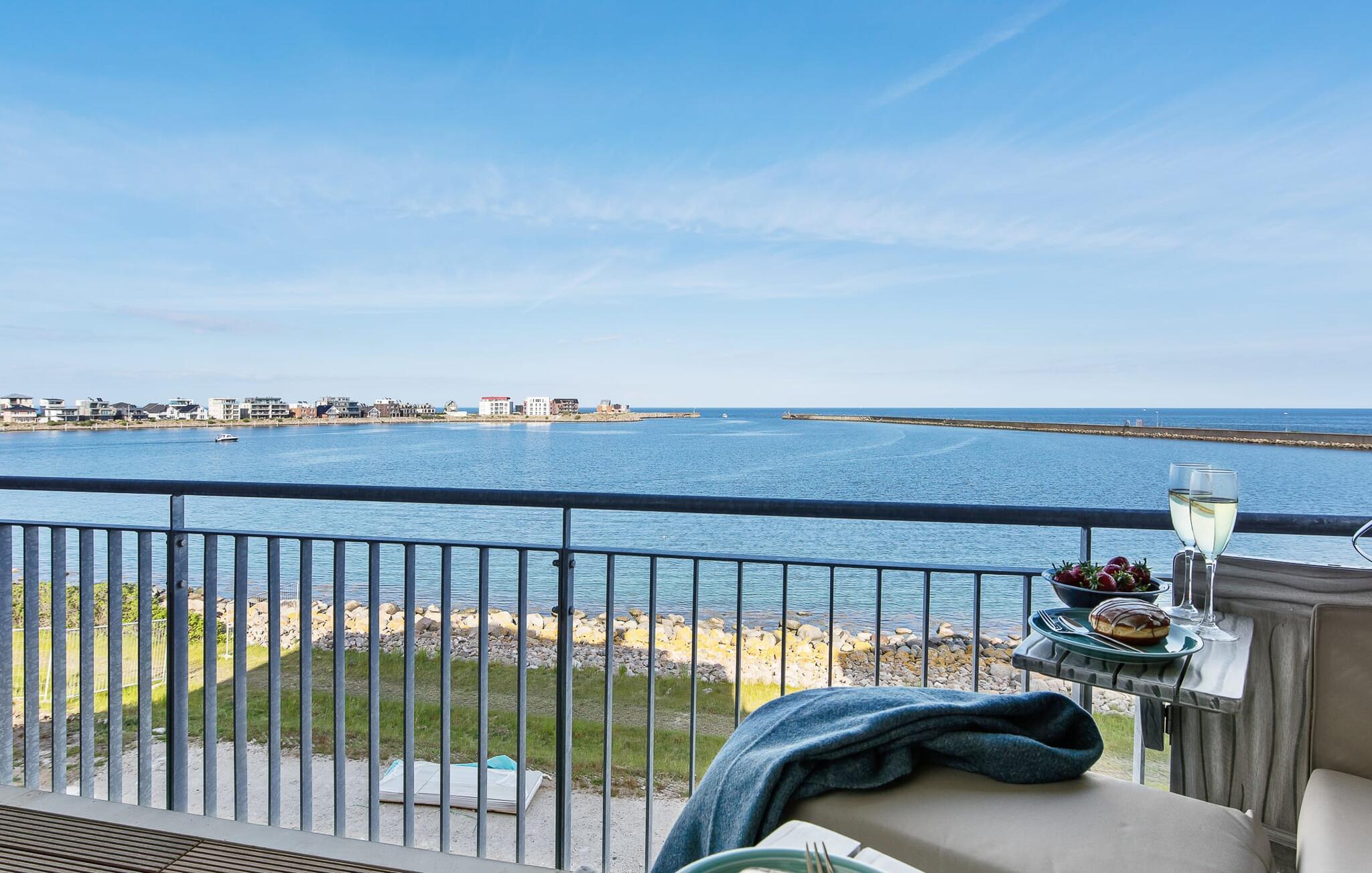 Beliggende direkte ved Østersøen lever LIFE@SEA ferielejligheden op til sit navn. Direkte ved vandet scorer ferielejligheden med en fantastisk havudsigt, nærheden til Weidefelder sandstrand og den umiddelbare adgang til havnepromenaden i ferieområdet Olpenitz. Udsigten fra stuen og soveværelset falder gennem gulv-til-loft vinduer og fra balkonen til det store hav. Når vejret er godt, kan I se så langt som til de danske øer. Ferielejligheden er indrettet til høj standard, barrierefri, oversvømmet med lys og smagfuldt indrettet. Placeret over tingene kan sejlskibe, der passerer ved havneindløbet, ses fra hele opholds-/spiseområdet og balkonen. Telekoms hjemmeunderholdningsprogram tilbyder ekstra underholdning på fladskærms-tv'et i stuen og på to ekstra tv'er i soveværelserne. Ferie er en tid til at være kreativ ved komfuret igen. Det fuldt udstyrede, åbne køkken lader intet tilbage at ønske. Her kan man fremtrylle lækre feriemåltider og altanen indbyder til en grillaften med udsigt til vandet. Bruserummet har et stort brusebad på gulvniveau. Det hyggelige soveværelse, udstyret med en dobbeltseng med boxmadrasser og et ekstra fladskærms-tv, giver mulighed for en afslappende feriesøvn. Det andet soveværelse byder på yderligere to boksmadrasser. Denne ferielejlighed tilbyder også et hus til jeres bil og cykel, som begge er placeret i den underjordiske parkeringsplads (indgangshøjde: 2m). Herfra kan I nemt tage elevatoren til jeres ferieidyl på anden sal. Vores yndlingssted: Nyd den vide udsigt over havet fra strandstolen og se de store og små skibe sejle forbi... det er LIFE@SEA! Bemærk venligst: OstseeResort Olpenitz er meget populært, og der bygges fortsat i parken. Ikke desto mindre kan I se frem til en 5-stjernet standard og et førsteklasses ophold. Byggeaktiviteterne kommer ikke til at forstyrre jer på ferien, og derfor gives der ikke yderligere afslag i prisen.