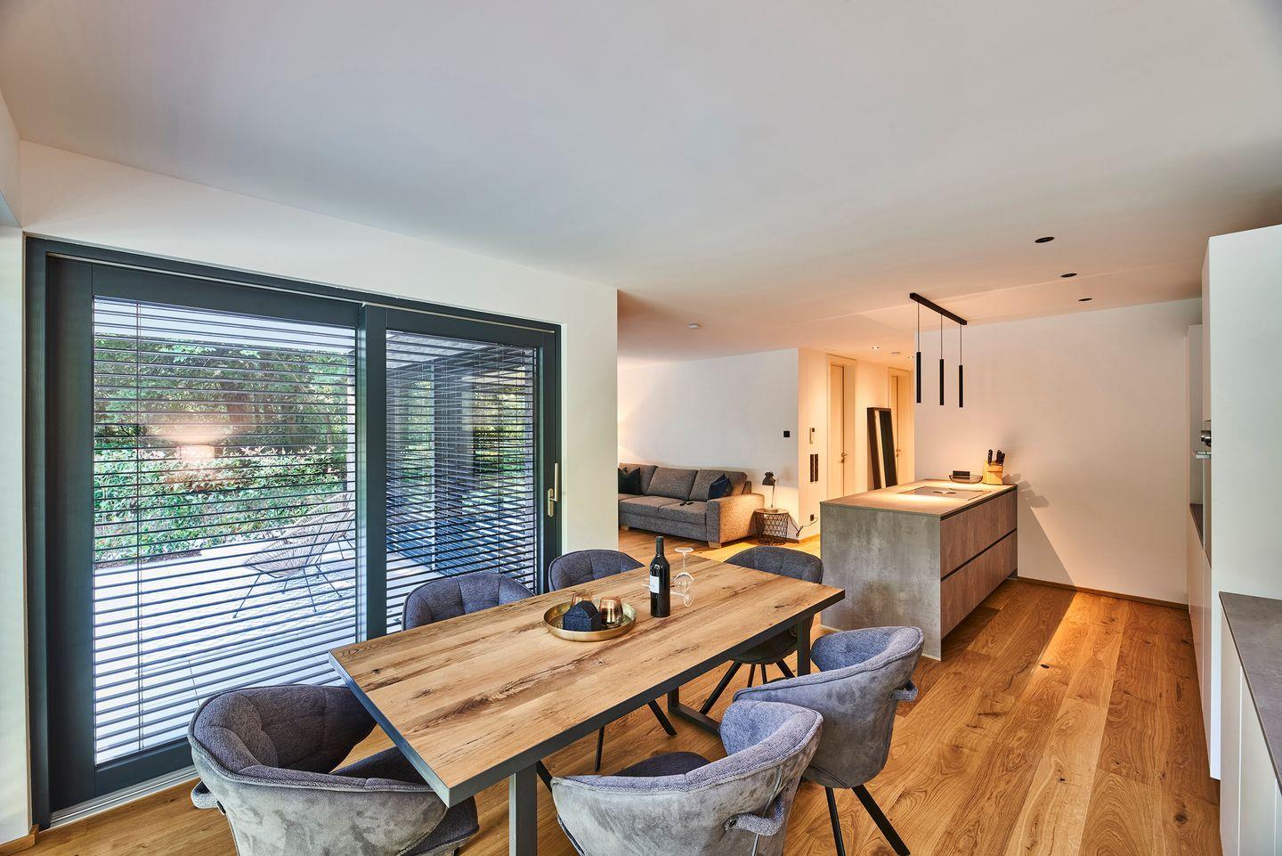 Die Ferienwohnung beeindruckt mit einem offenen Wohn- und Essbereich samt integrierter Küche und Kochinsel. Der Austritt auf die großzügige Garten-Terrasse erweitert die Unterkunft und ermöglicht entspannte Momente im Freien.