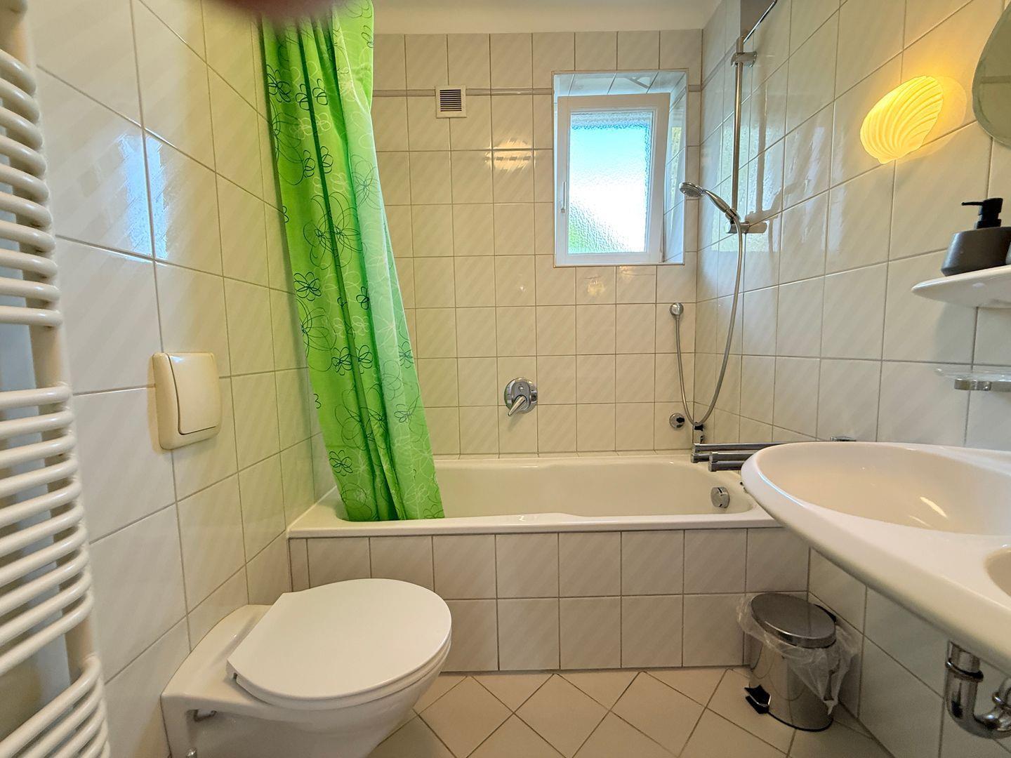 Das Badezimmer ist mit einer Dusche/Badewanne ausgestattet. Handtücher, Badetücher und Bettwäsche sind ebenso vorhanden wie ein Haartrockner, Reinigungsmittel und eine Steckdosensicherung. Zur weiteren Ausstattung zählen Waschmaschine (Eigennutzung), Bügeleisen, Bügelbrett, Wäscheständer, Schuhschrank sowie ein Ganzkörperspiegel. Ein Schreibtisch sowie Bücher und Spiele stehen für entspannte oder produktive Stunden in der Unterkunft bereit.