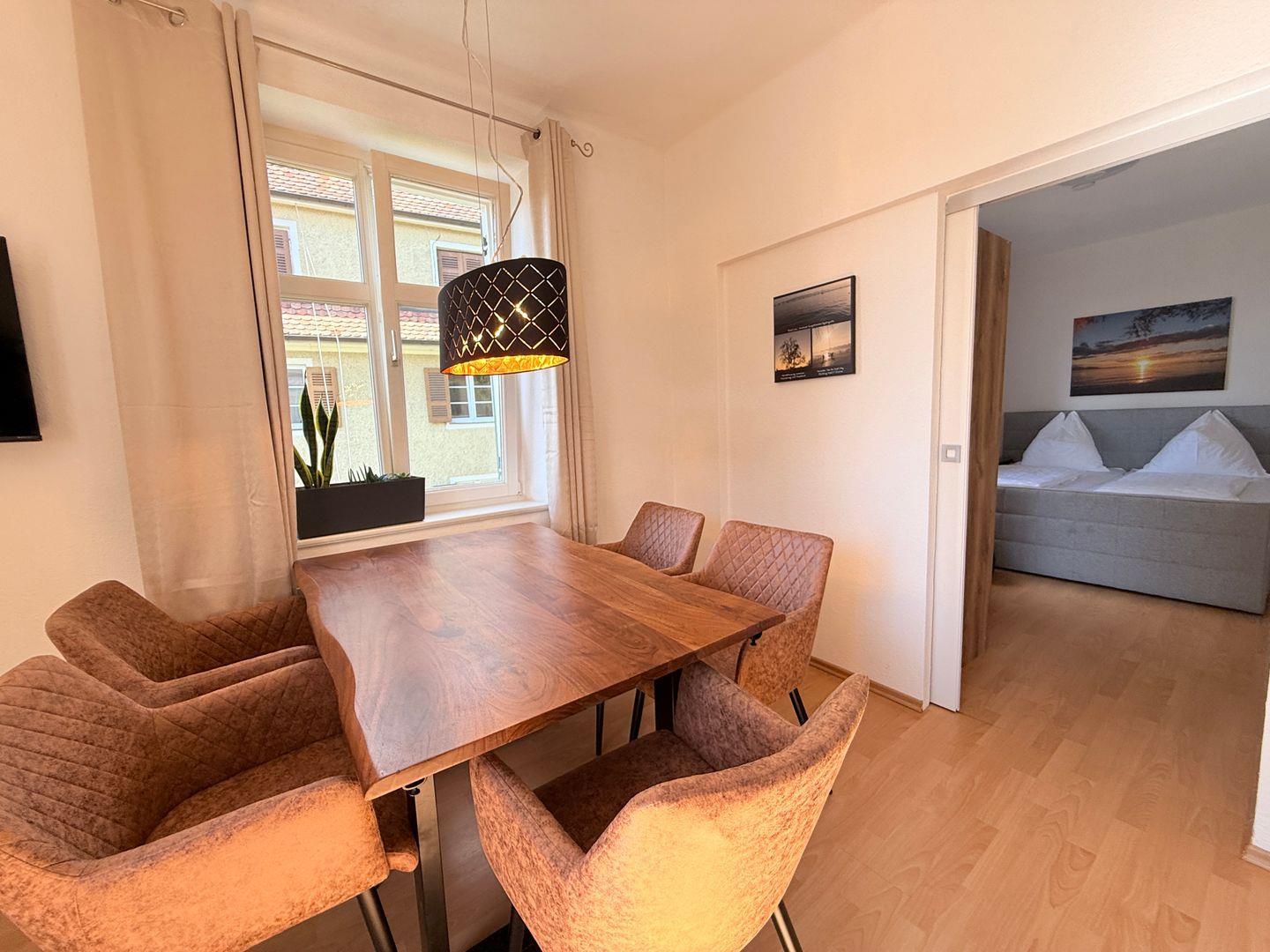 Das Gebäude aus dem Jahr 1900 wurde zuletzt 1998 renoviert und verbindet historischen Charme mit praktikabler Funktionalität. Die Unterkunft befindet sich im ersten Stock und bietet Zugang zu einem abgeschlossenen ca. 400 m² großen Grundstück. Hier können Sie den gepflegten Garten nutzen, der besonders Familien mit Kindern oder Gästen mit Haustier (maximal ein Haustier erlaubt) Raum für Erholung und Spiel bietet. Der Privatparkplatz auf dem Grundstück gewährleistet eine bequeme Anreise und kurze Wege zu Ihrem Urlaubsdomizil. Ein Auto ist für einen Aufenthalt nicht zwingend erforderlich.