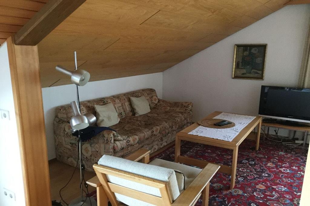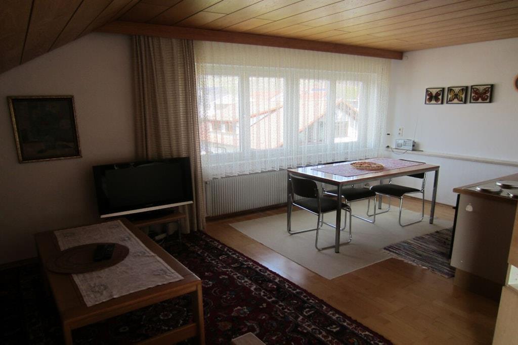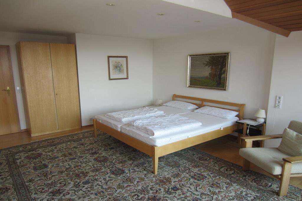 Vores ferielejlighed ligger på 2. sal og tilbyder en vidunderlig udsigt over Bodensøen og de schweiziske og østrigske bjerge. Med et boligareal på cirka 35 kvadratmeter har opholds-/soveområdet en dobbeltseng og en sovesofa til i alt 3 personer. Der er også et fuldt udstyret tekøkken med ovn og køleskab. Radio og farve-tv er også tilgængelige. Separat bruser/toilet. Gratis Wi-Fi er tilgængelig.