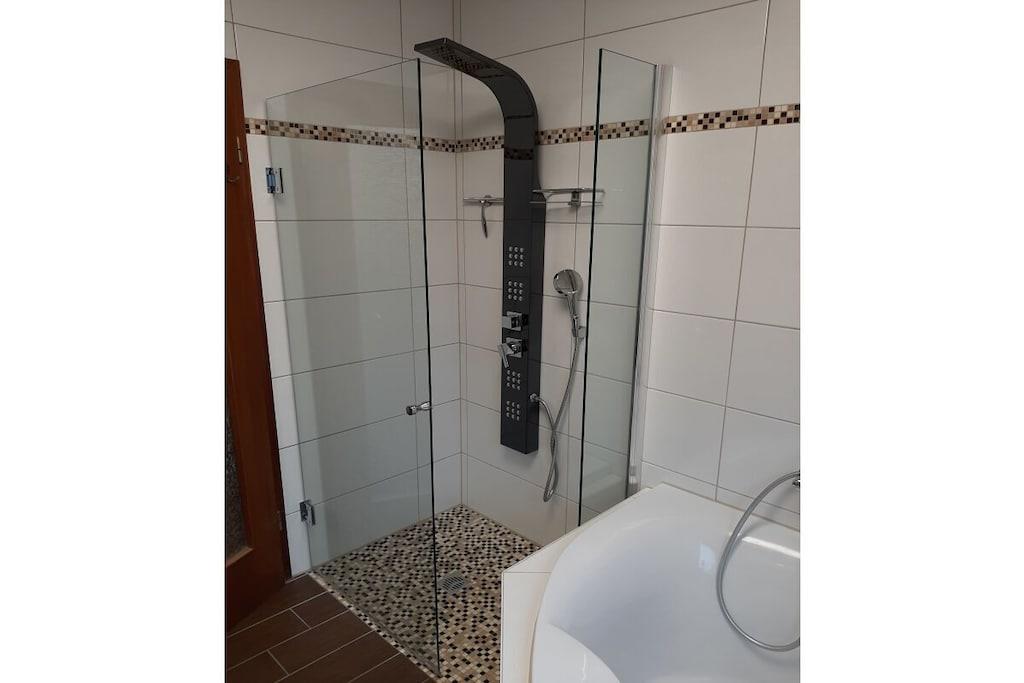 The lower deck is 87 sqm, completely renovated in mid-2019 and modernly furnished. It is located on the ground floor with a large terrace.