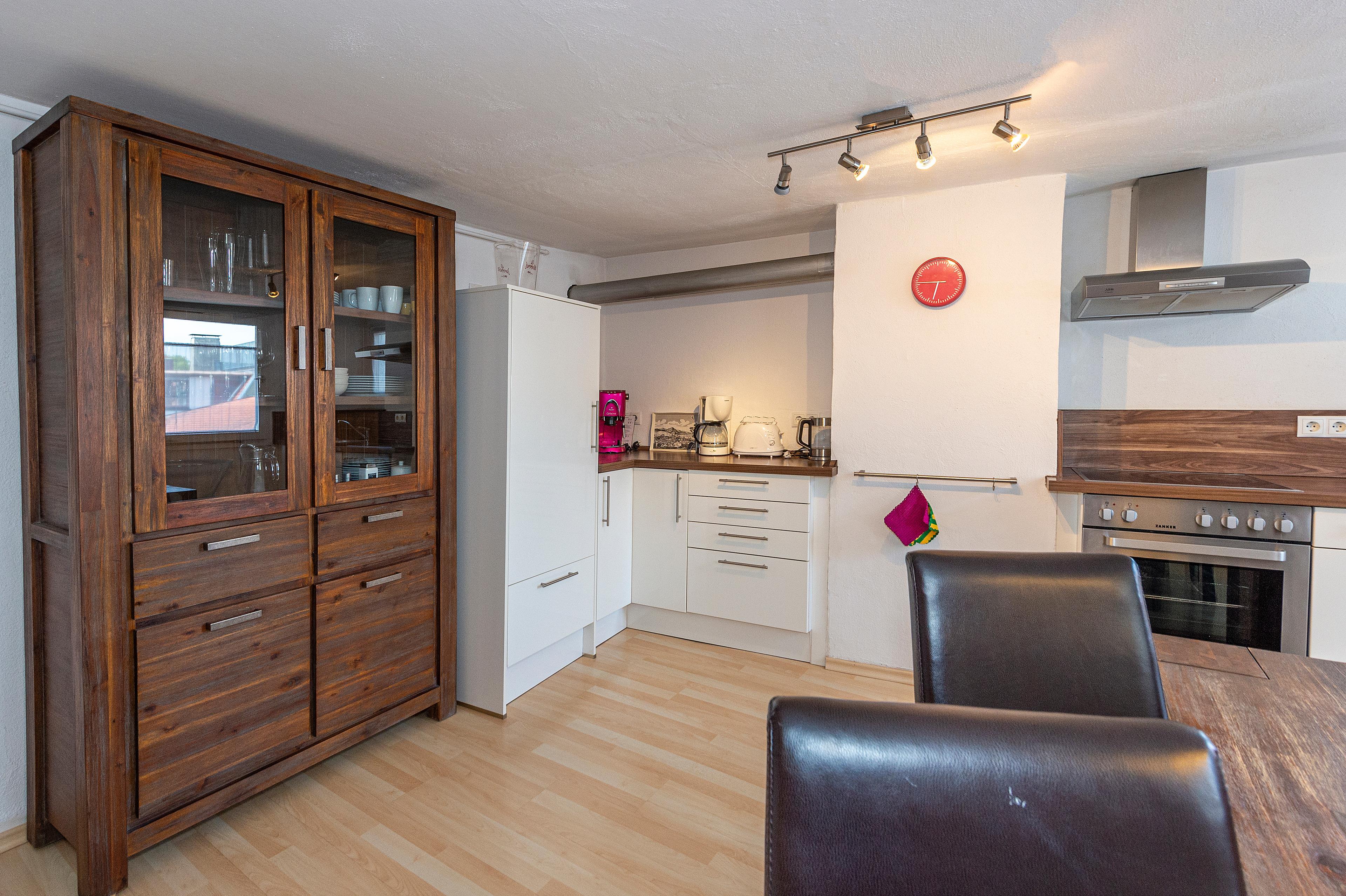 Die charmante Wohnung ist hell und luftig eingerichtet, mit separatem Wohnzimmer. Der offene Koch-Essbereich ist bestens ausgestattet mit einem massiven Esstisch aus Holz. Schlafzimmer und Bad sind komfortabel gestaltet mit genug Stauraum für alles Mitgebrachte. Ein idealer und ruhiger Rückzugsort im Herzen der Insel.