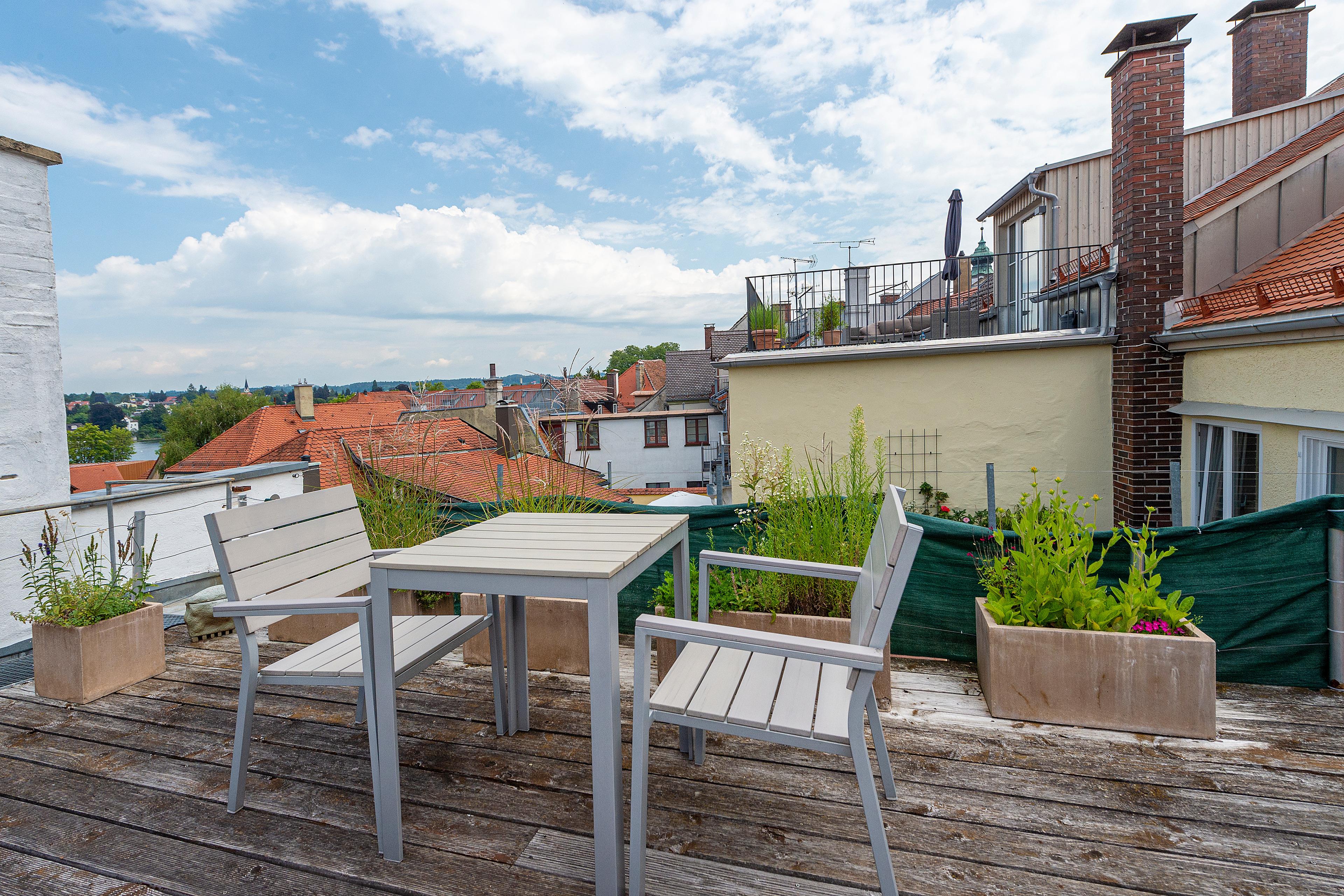 Hier genießen Sie Ihren Kaffee oder Sundowner auf Ihrer eigenen Terrasse inmitten der Dachlandschaft der historischen Lindauer Insel.