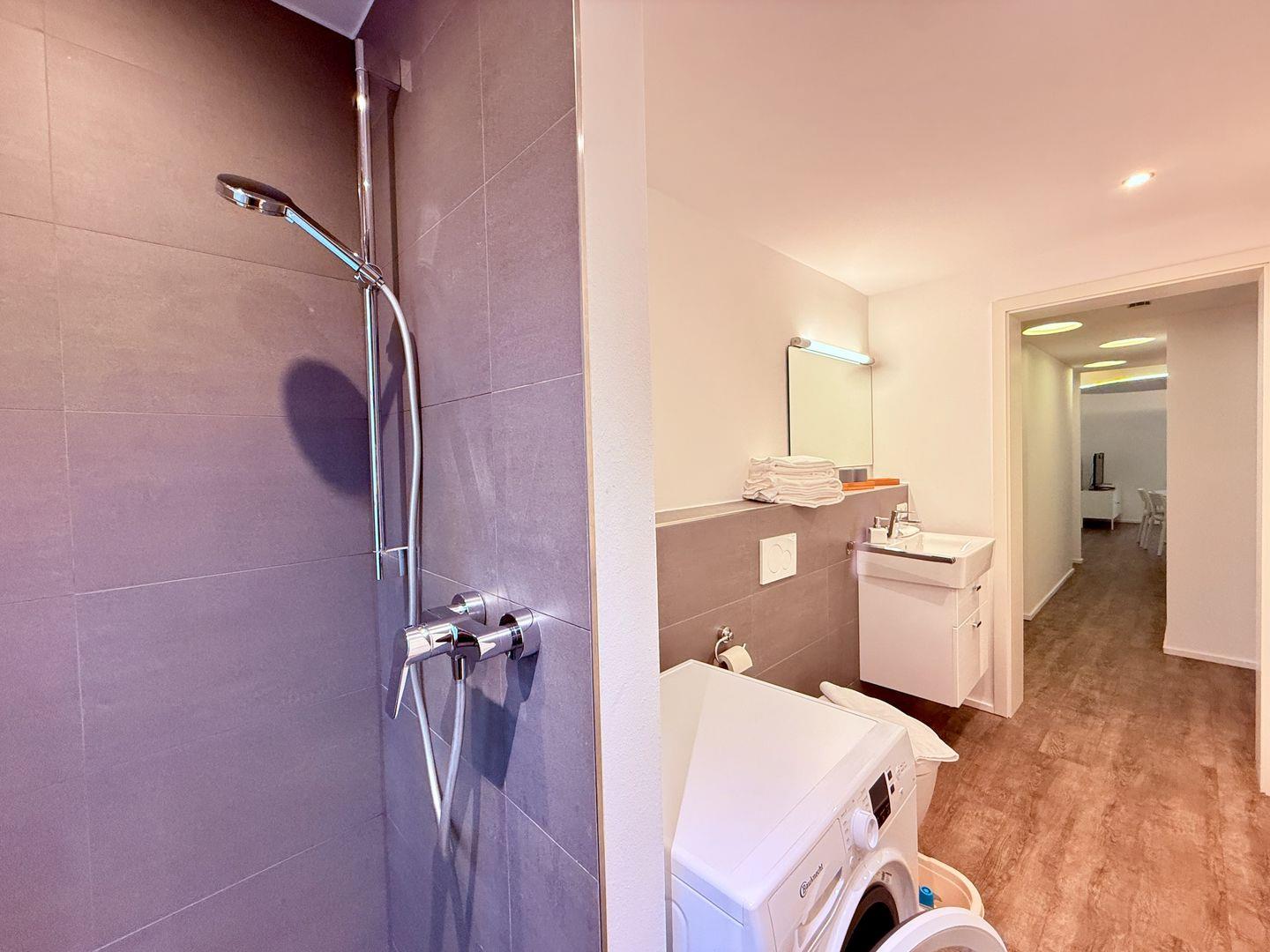 Diese frisch renovierte, knapp 60 m² große Ferienwohnung im zweiten Stock eines Hauses mit Aufzug ist in jeder Hinsicht etwas Besonderes. Sie ist großzügig eingerichtet und bietet alles, was Sie für einen entspannten Urlaub benötigen. Die Wohnung ist für zwei Personen ausgelegt und überzeugt mit einer sehr gut ausgestatteten Wohnküche, einem Schlafzimmer mit Doppelbett sowie einem Bad mit begehbarer, ebenerdiger Dusche, WC und großem Waschbecken.