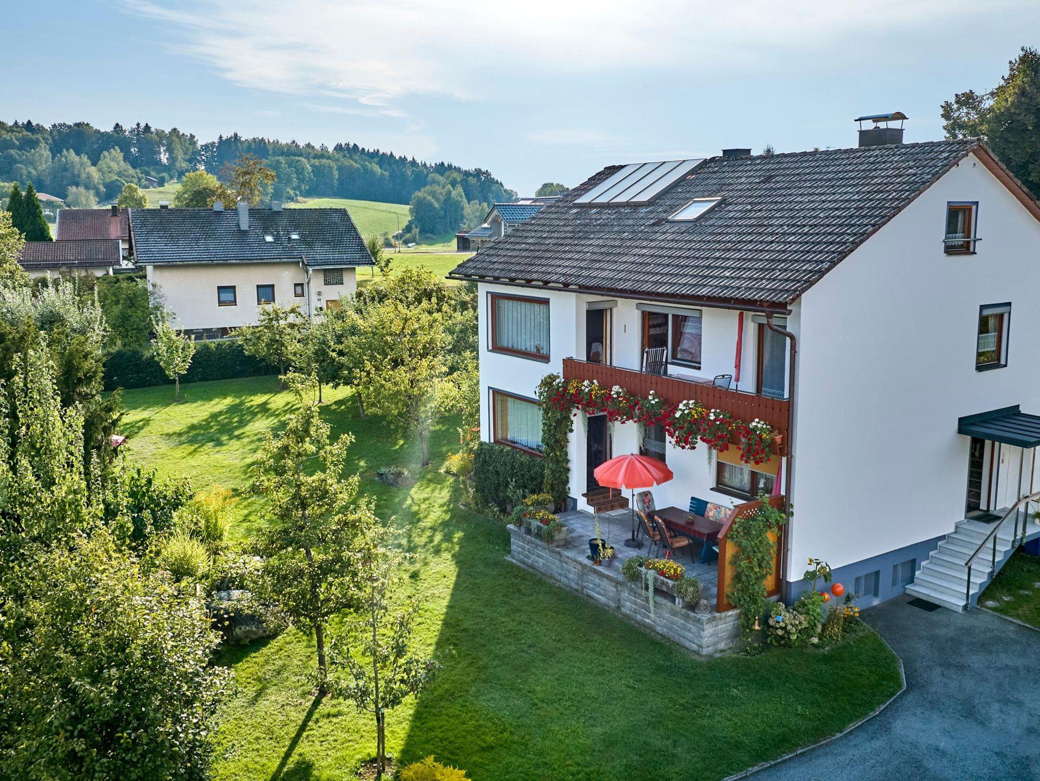 Unser Haus steht abseits der Hauptstraße in ruhiger Lage. Ein großer Garten mit Teich, Parkplatz, Liegewiese, Spielplatz und Grillmöglichkeit steht zu Ihrer Verfügung. Wanderwege und Wintersportmöglichkeiten sind in nächster Nähe. Das Nationalparkzentrum Falkenstein mit Haus zur Wildnis liegt in unmittelbarer Nähe. Eine Bäckerei und ein Metzger befinden sich direkt im Ort. Die nächste Einkaufsmöglichkeit ist ca. 3 km entfernt in Zwiesel.