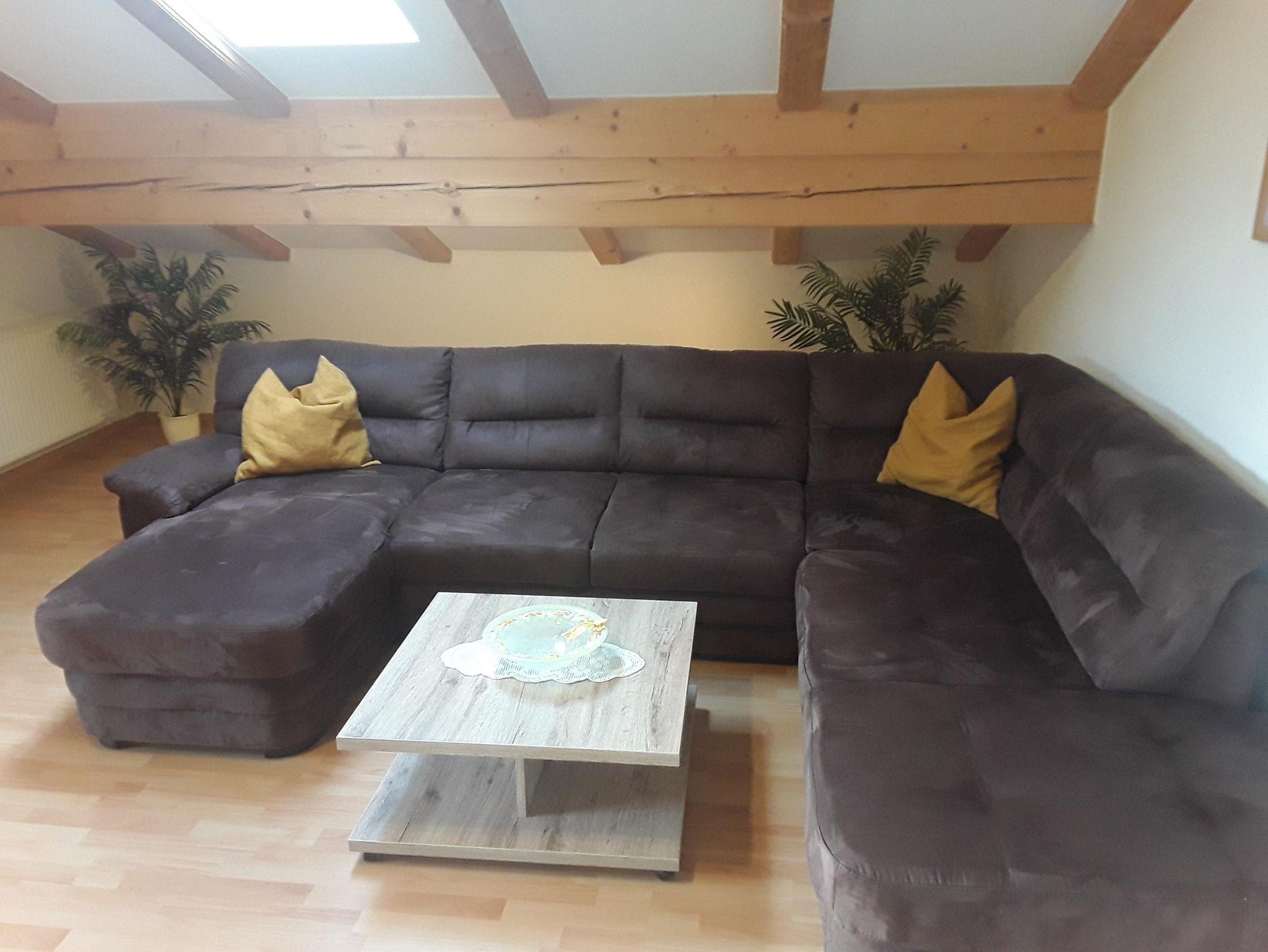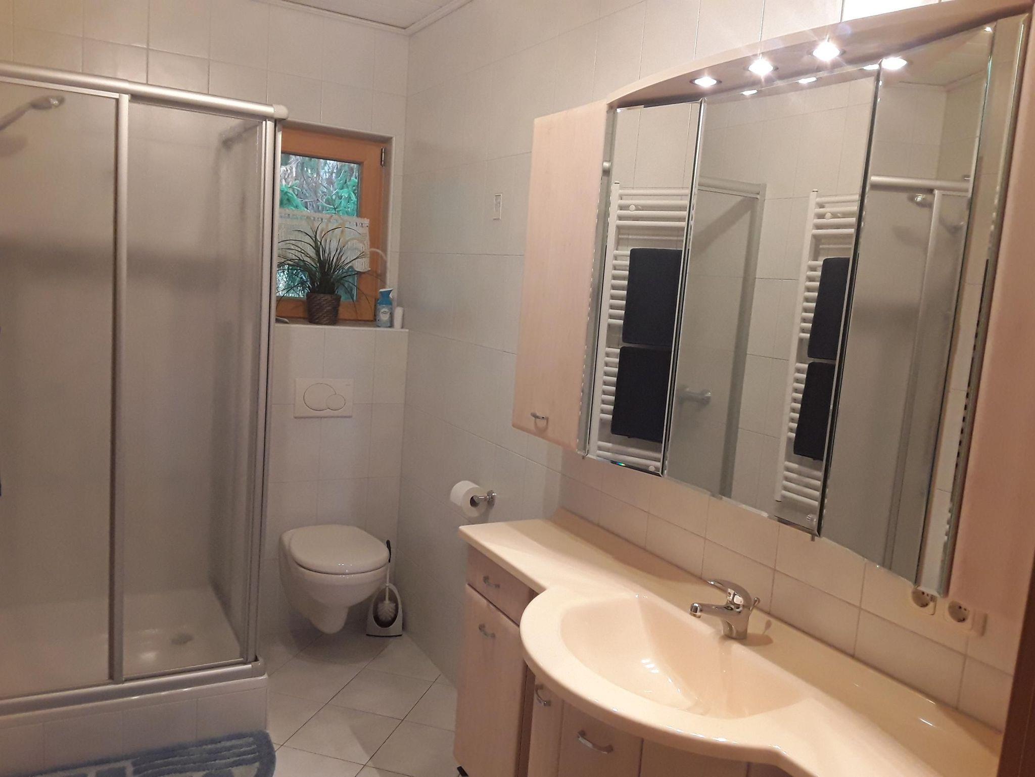 Sie wohnen in einer gemütlich und komfortabel ausgestatteten Ferienwohnung am Ortsrand von Lindberg im Bayerischen Wald. Die Küche verfügt über einen Kühlschrank mit Gefrierfach, einen Elektroherd,Mikrowelle,Geschirrspüler,Kaffeemaschine und einer Senseo. Weiterhin sind ein Allesschneider,Eierkocher und ein Toaster vorhanden. Im Wohnzimmer befindet sich neben einer großen Couch auch eine schöne Anbauwand mit Ferseher. Die beiden Schlafzimmer sind mit Doppelbetten, Bettwäsche, Schrank und Herrendiener ausgestattet. Das Bad verfügt über eine Dusche und WC und ist mit Handtücher, Duschtücher und Föhn bestückt. Die Küche, Wohnzimmer,Bad und Diele sind mit einer Fußbodenheizung versehen. Die Wohnung hat noch eine Spielecke mit vielen Spielsachen. Der Balkon lädt zum entspannen, verweilen und genießen ein. Unsere Ferienwohnung liegt im Obergeschoß unseres Hauses.