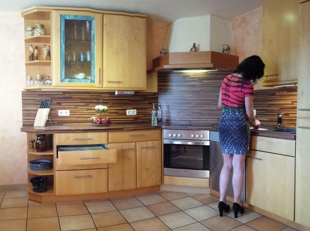 1 geräumige Einbauküche in Massiv-Esche mit großzügiger Ausstattung (inkl. Spülmaschine) und wunderschöner Essgruppe mit Blick zum Garten.