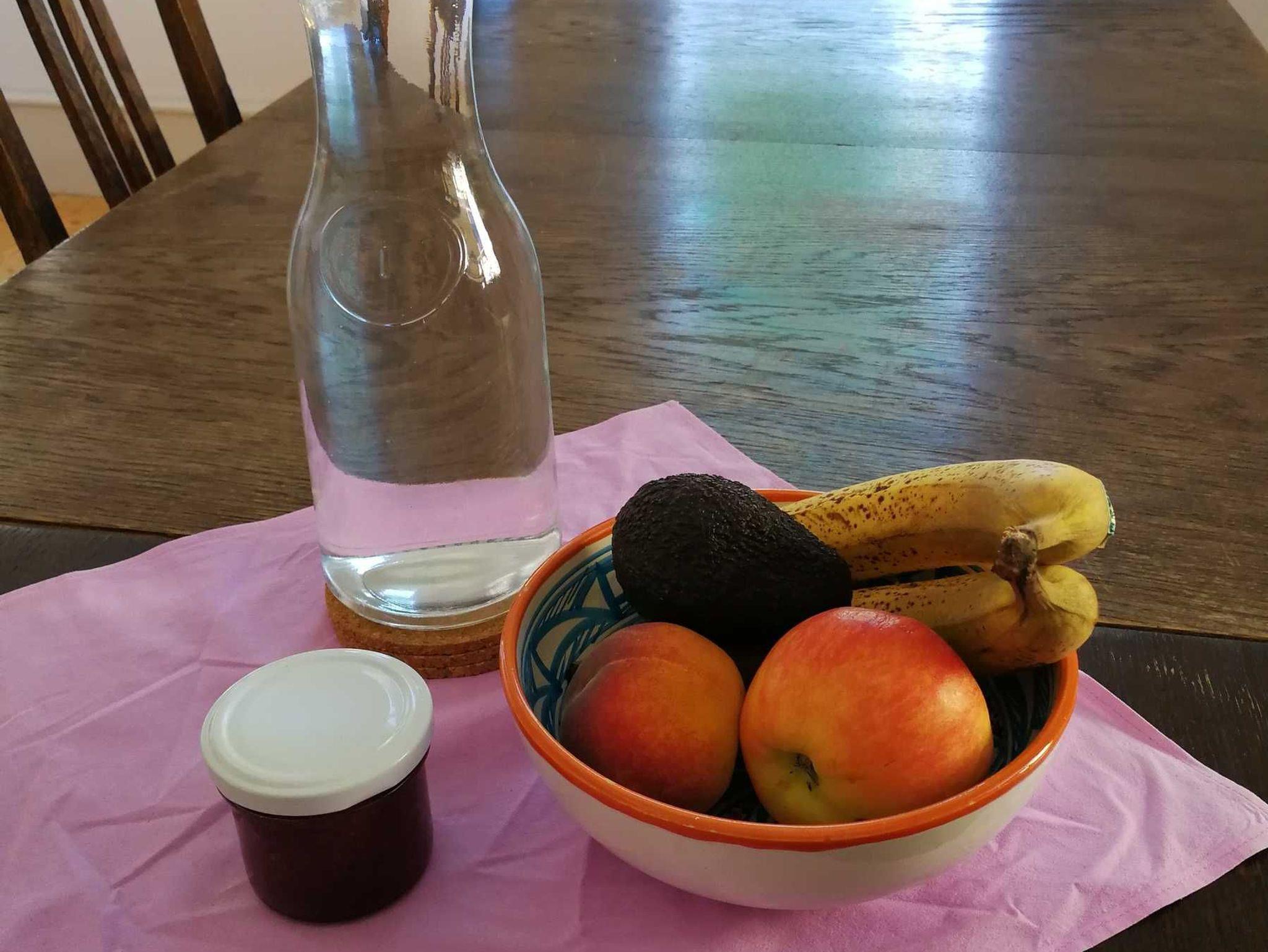 Die Ferienwohnung bietet ein dreier - und ein Doppelzimmer, ein seperates Bad, sowie eine kleine Sitzgelegenheit mit Kamin. Es gibt eine Küche mit zwei Herdplatten, einem Kühlschrank und einer Spüle, sowie einen großen Tisch, der zum gemeinsamen Essen einlädt. Auf Wunsch gibt es ein Frühstück mit selbst gebackenem Brot/Brötchen, Frischkornmüsli, sowie selbst gemachten Aufstrichen. Ein Kinder(gitter)bett und eine Babywiege sind vorhanden. Für größere Gruppen bis max 8 Personen gibt es die Möglichkeit noch weitere Matratzen dazu zu legen.
