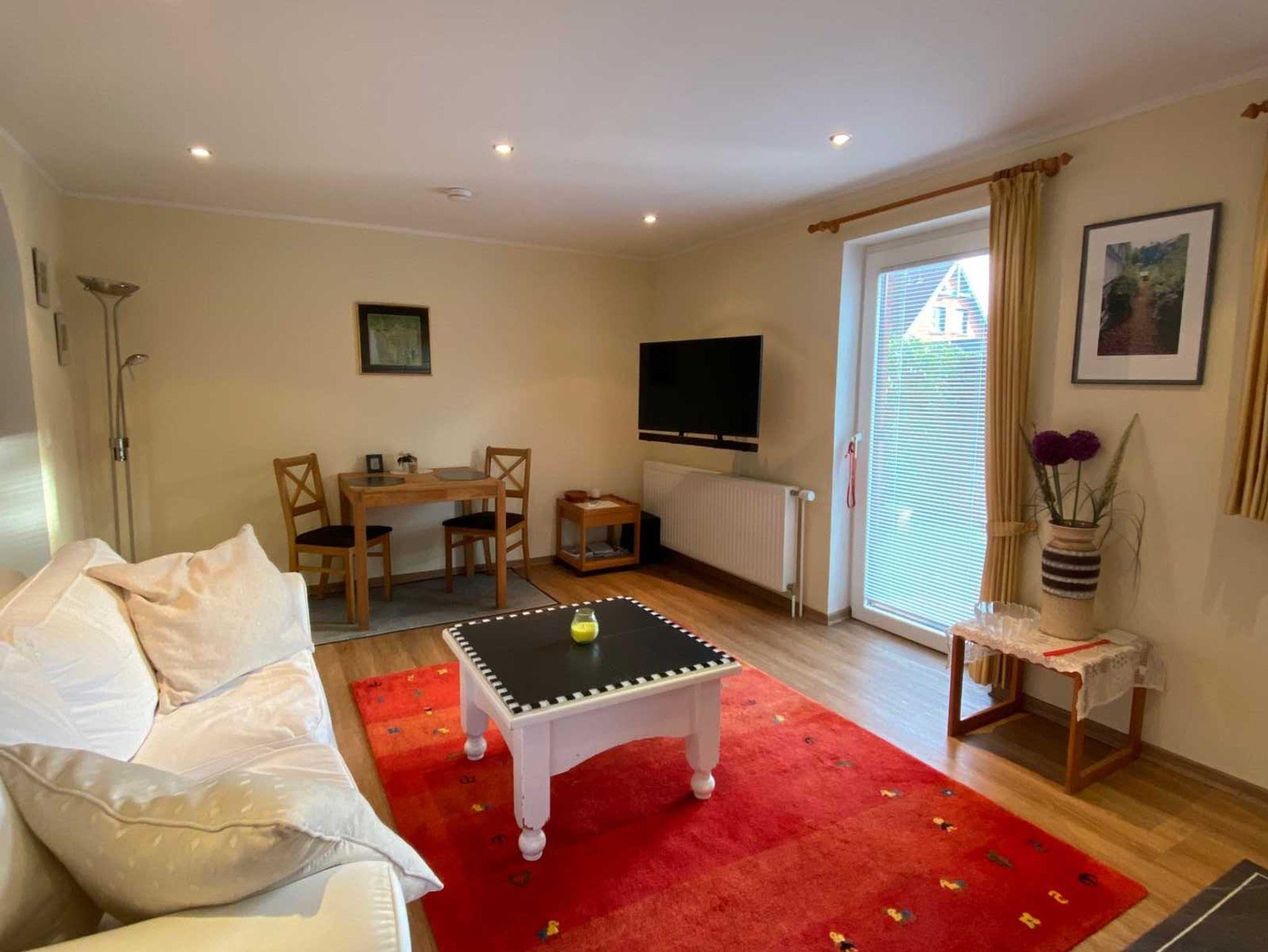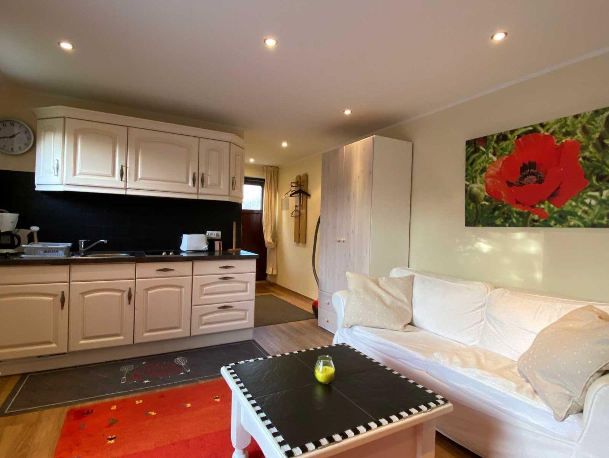 Ein Traum in Rot und Weiß ? so präsentiert sich unser Apartment 3 in fußläufiger Nähe zum Lister Zentrum. Die geschmackvoll eingerichtete Ferienwohnung für 2 Personen besitzt ein Wohnzimmer mit integrierter Küche, ein Schlafzimmer sowie ein Dusch/WC-Bad.
