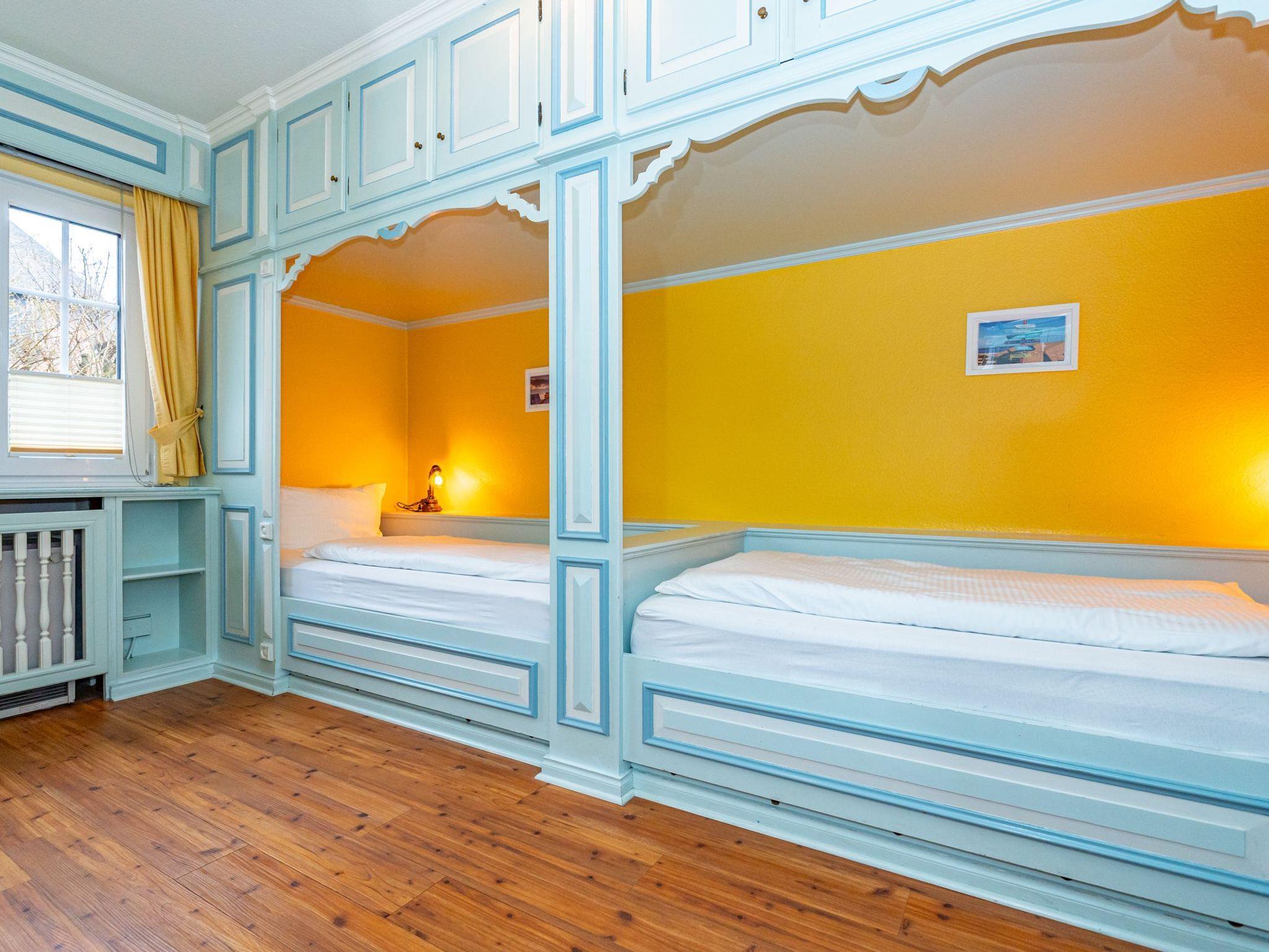 Im dritten Apartment, welches sich ebenfalls im Erdgeschoss befindet und über eine eigene Terrasse verfügt, werden Schifffahrtsträume wahr. 50 Quadratmeter verteilen sich auf 2 Zimmer mit gemütlichen Schlafkojen für 4 Personen. Über den offen gestalteten Wohn- und Essbereich gelangen Sie direkt zum Außenbereich. Das Badezimmer ist ausgestattet mit Dusche, WC und Waschbecken.