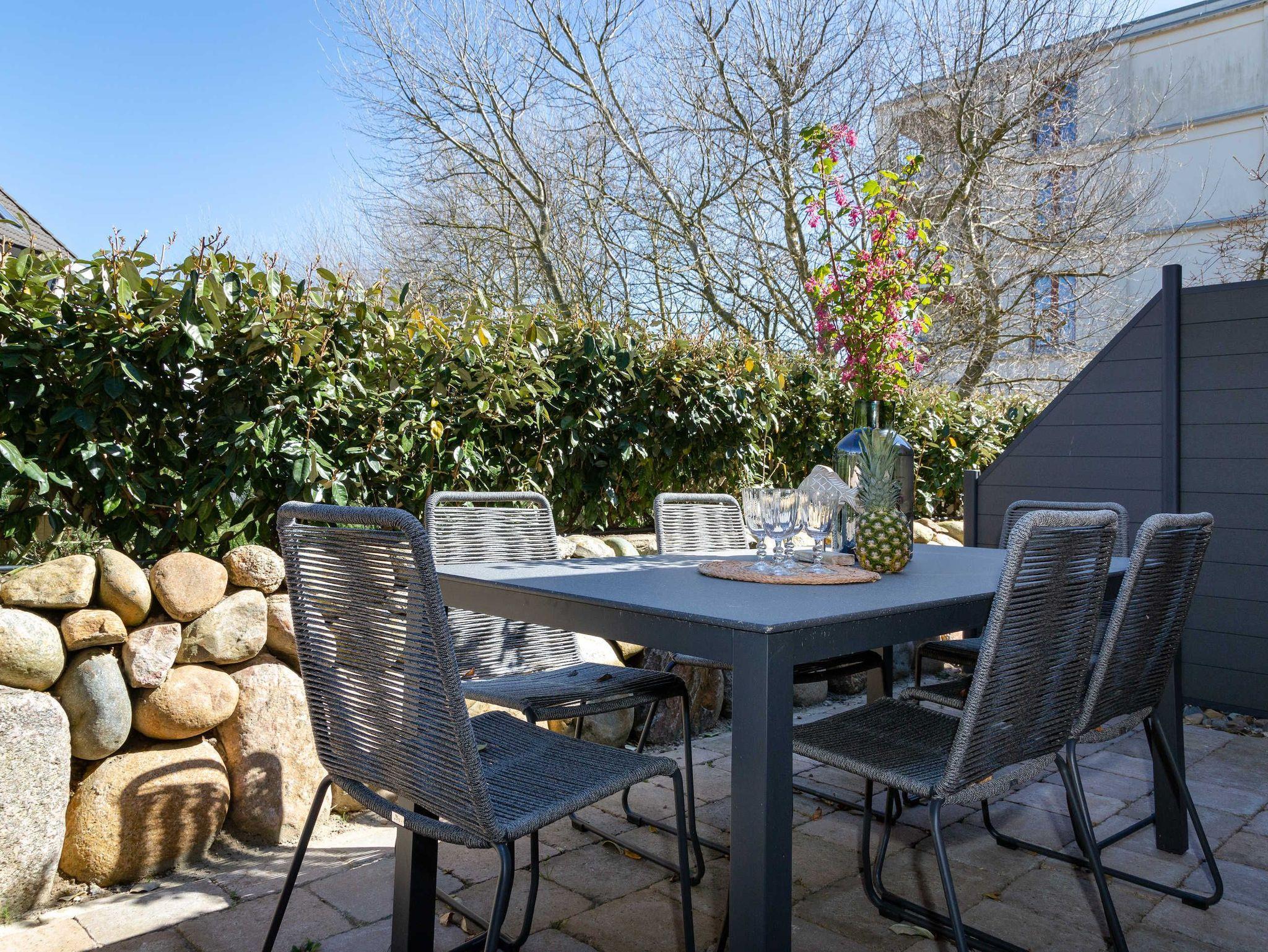 Zum Ferienhaus gehört eine Terrasse sowie ein PKW-Stellplatz.