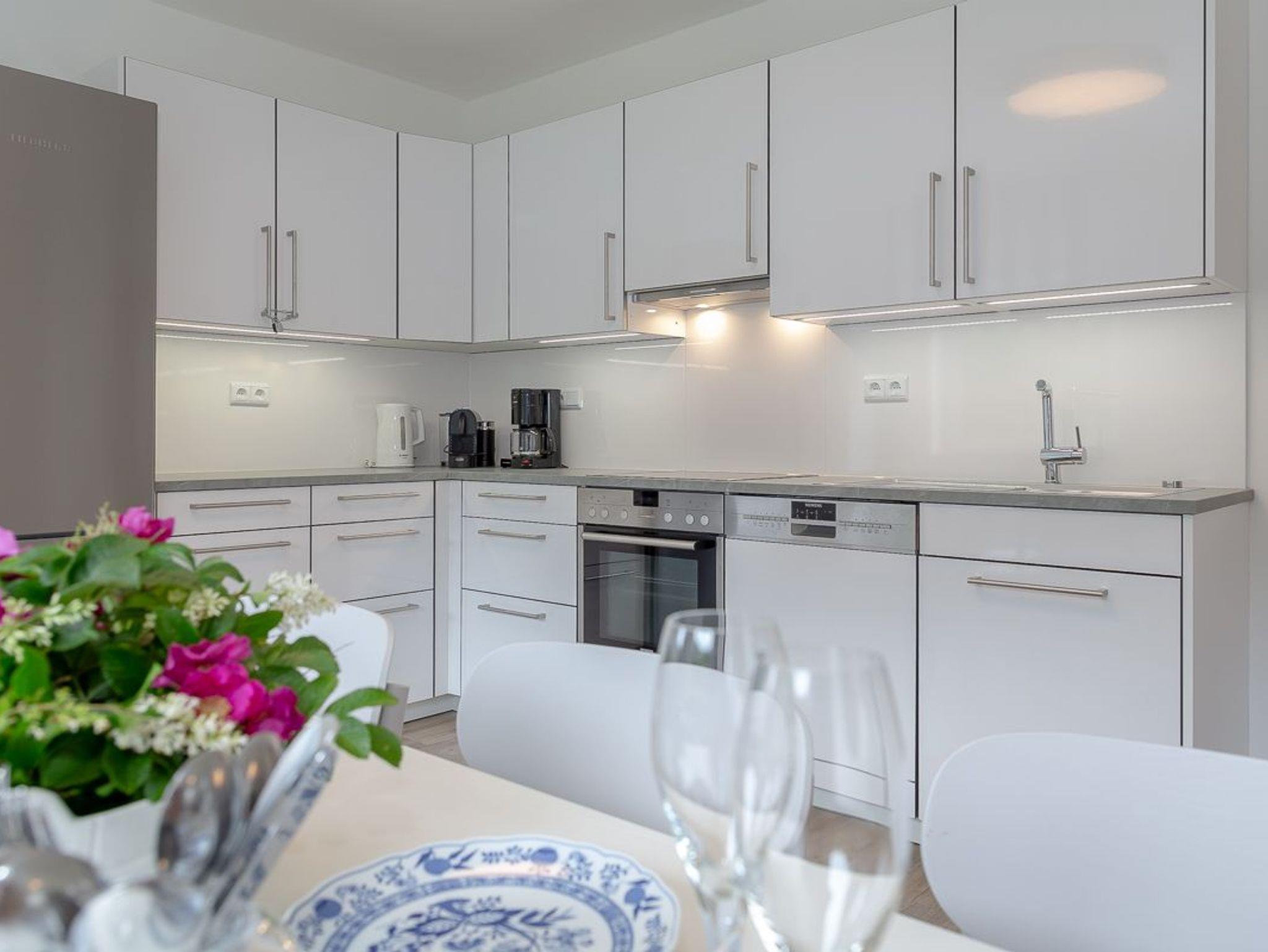 großzügig geschnittene Wohnzimmer sowie eine daran angeschlossene Essküche mit Komplettausstattung für