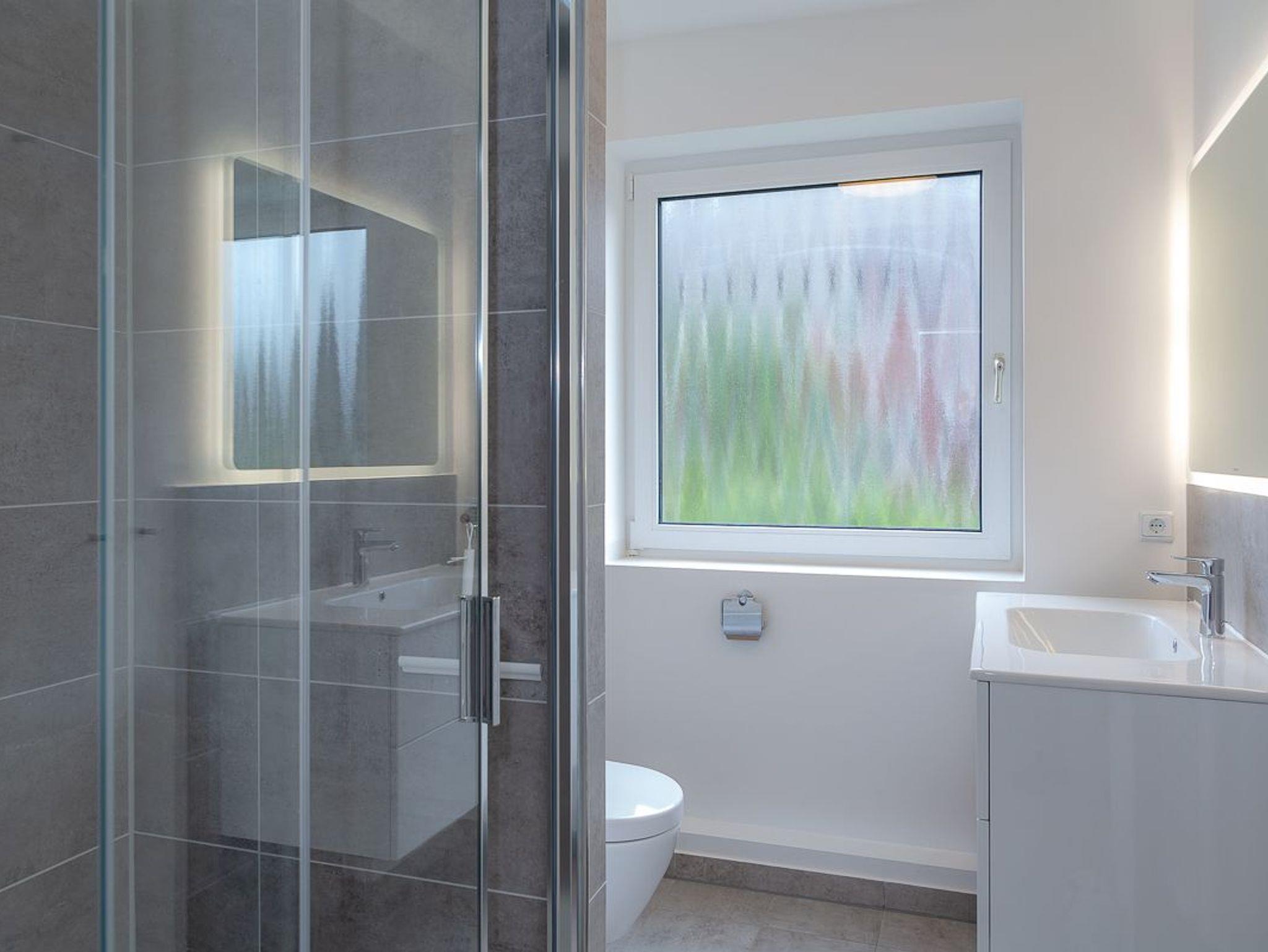 Schlafzimmer mit je einem Doppelbett sowie ein geräumiges Badezimmer mit WC sowie ein Gäste WC.