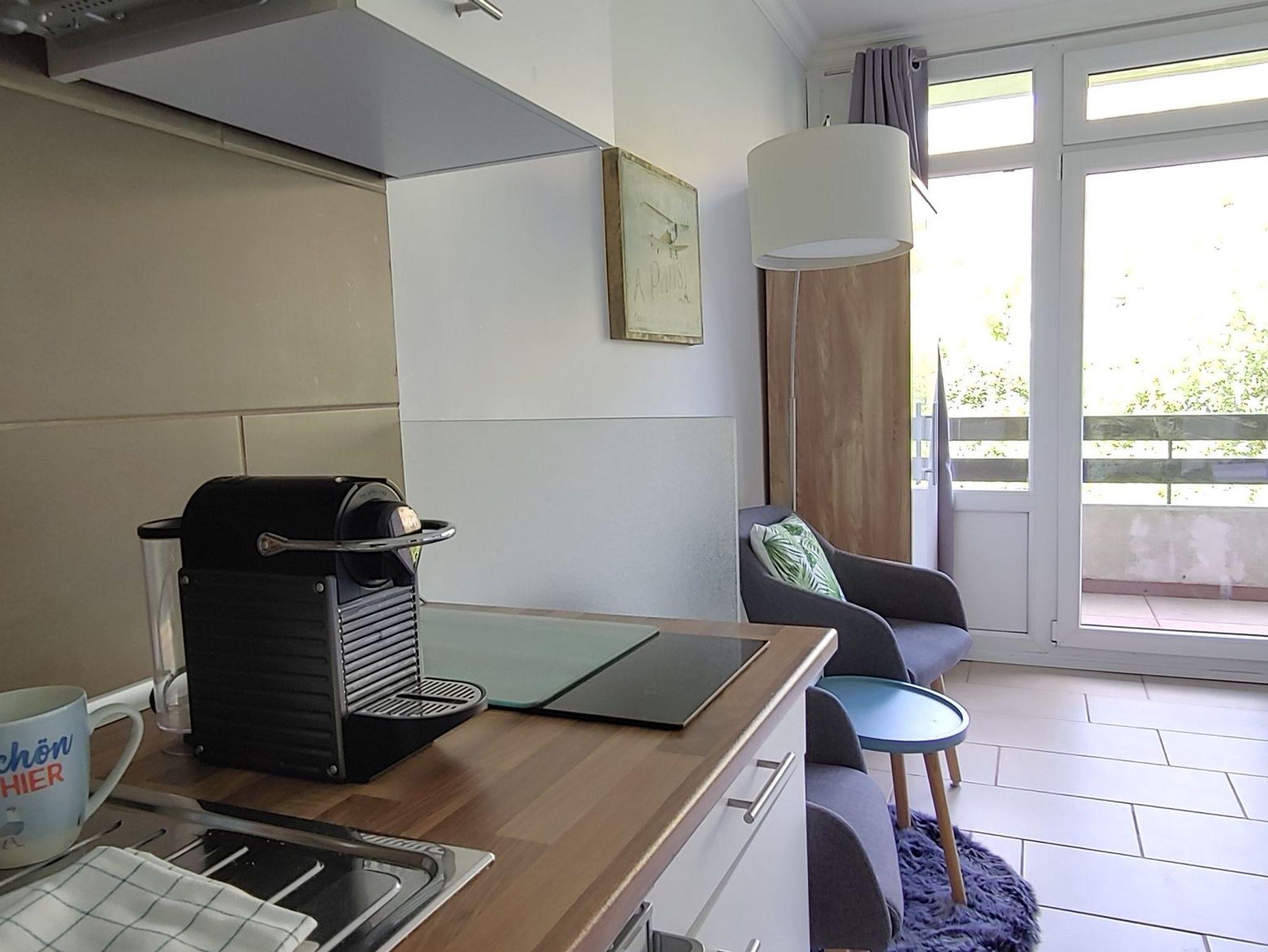 Im modern und zweckmäßig eingerichteten Appartment finden Sie ein großes Wohn-/Schlafzimmer mit Doppel-Klappbett, Kleiderschrank, Sesseln und Sitzecke mit Tisch, eine voll ausgestattete Küchenzeile mit 2 Kochstellen, Mikrowelle und Kühlschrank sowie Kaffeemaschine, Kapselautomat und Toaster. Das Badezimmer mit Dusche ist freundlich gestaltet. Zur Westseite, von der Straße abgewandt und ruhig gelegen, befindet sich ein schöner Balkon, auf dem Sie ab Mittag bis in den Abend hinein mit Blick auf Dünen und Heide die Sonne genießen können.