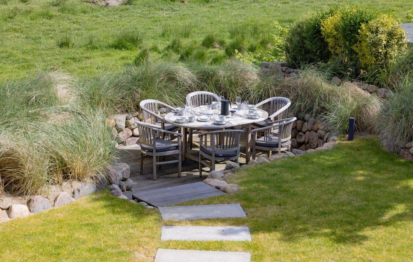 Gartenmöbel und ein Strandkorb stehen Ihnen saisonal begrenzt zur Verfügung.