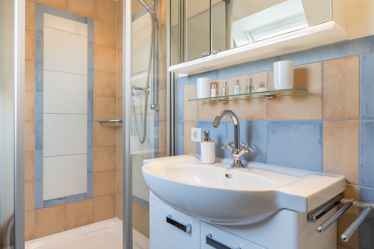 Das neu entstandene Schlafzimmer verfügt über ein Doppelbett (160 x 200cm), in dem Sie gemütliche Urlaubsträume erwarten. Das moderne Tageslichtbad des Appartements verfügt über eine Dusche und ein WC.