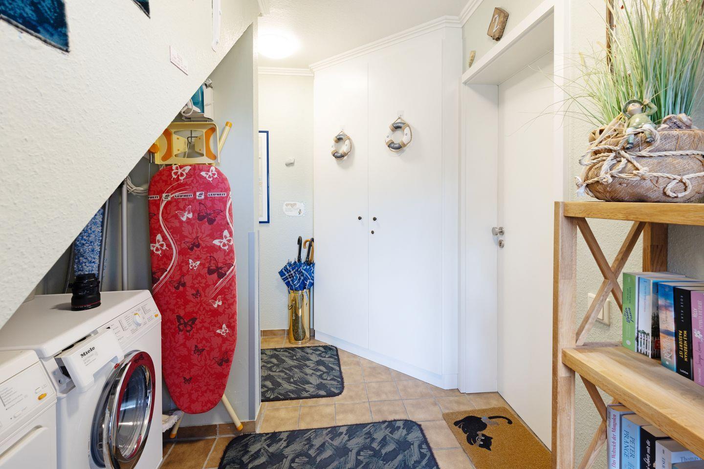Zur Ausstattung gehören außerdem WLAN, Fernseher mit Satellitenanschluss, Blu-ray-Player, Radio sowie eine gemeinschaftlich nutzbare Waschmaschine und Trockner.