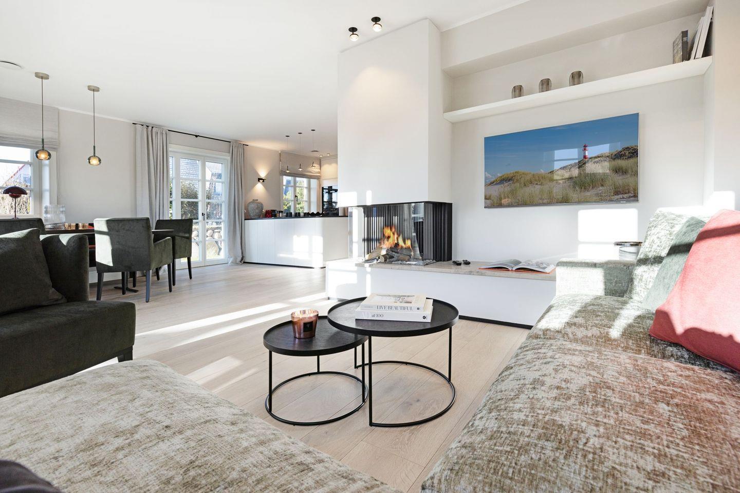 Im Erdgeschoss des Hauses finden Sie neben dem stilvoll eingerichteten Wohnzimmer mit Kamin und Flachbildfernseher eine