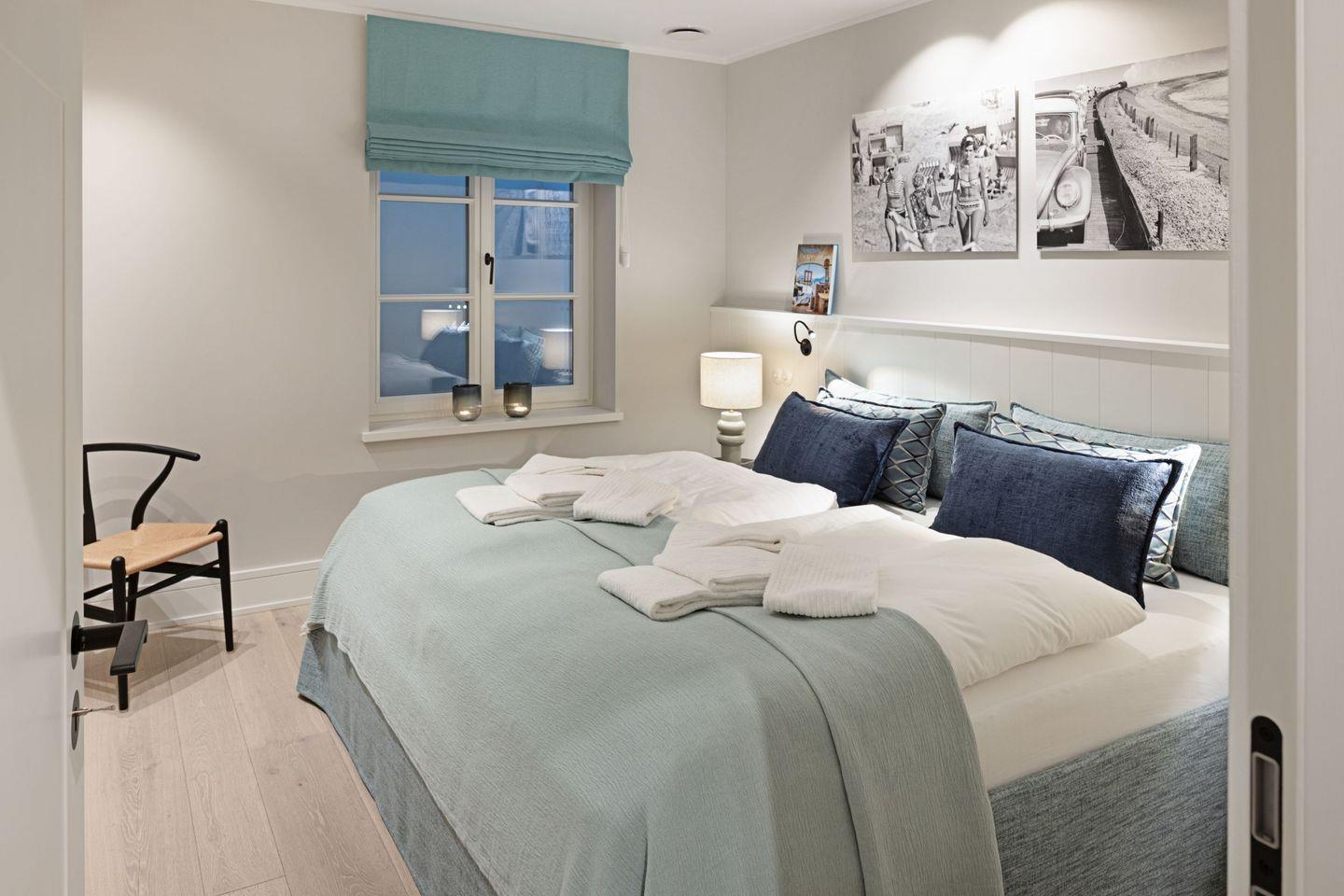 Im Dachgeschoss des Hauses finden sie zwei Schlafzimmer mit Doppelbett und Fernseher.