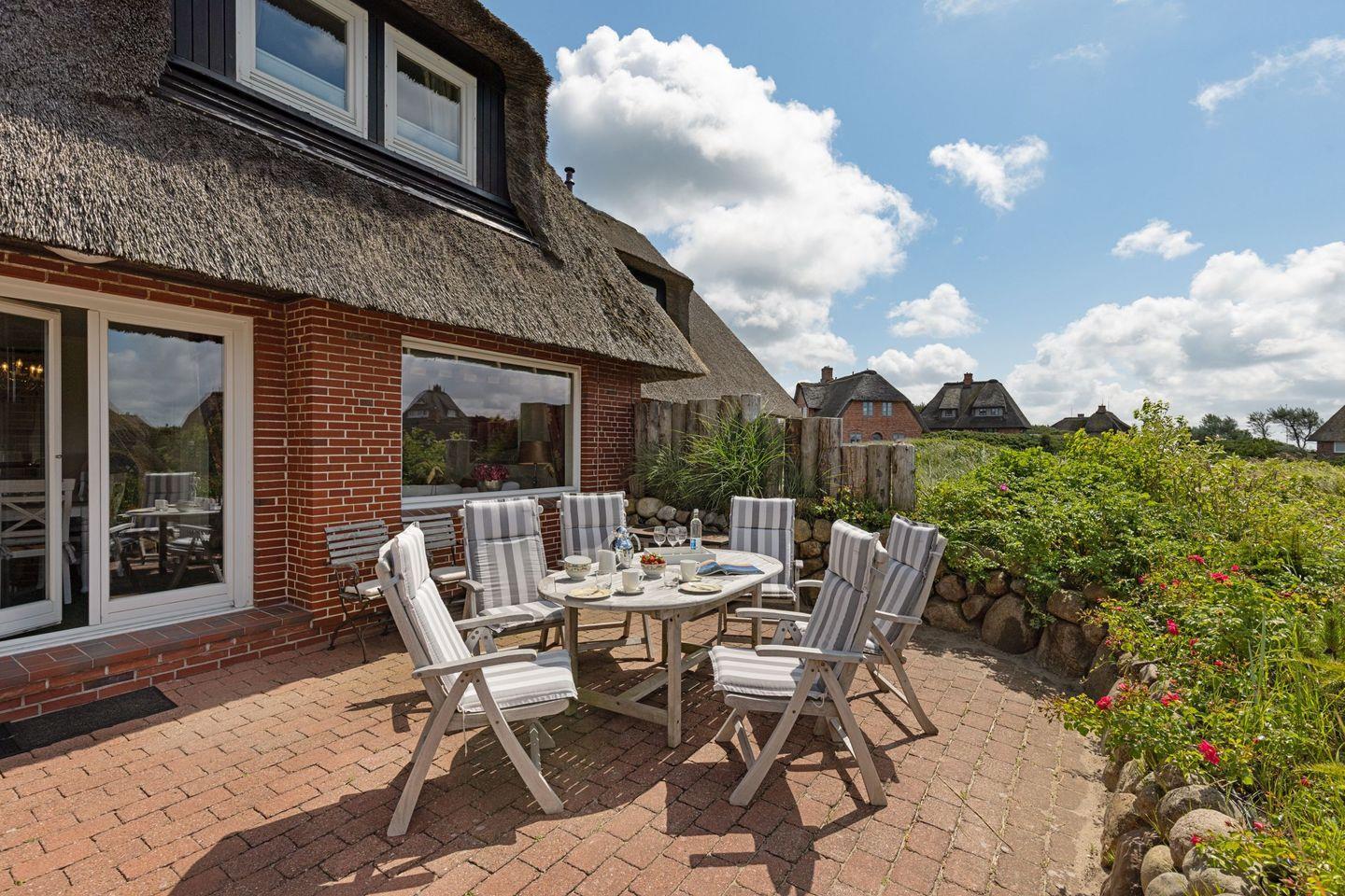 Ihr Ferienhaus "Haus Mellhörn" unter Reet liegt am Lister Ortsrand in erhöhter Lage und mit wunderschöner Aussicht auf die große Wanderdüne mit der einzigartigen Lister Dünen- und Heidelandschaft. Hier ist Sylt noch wirklich ursprünglich und typisch.