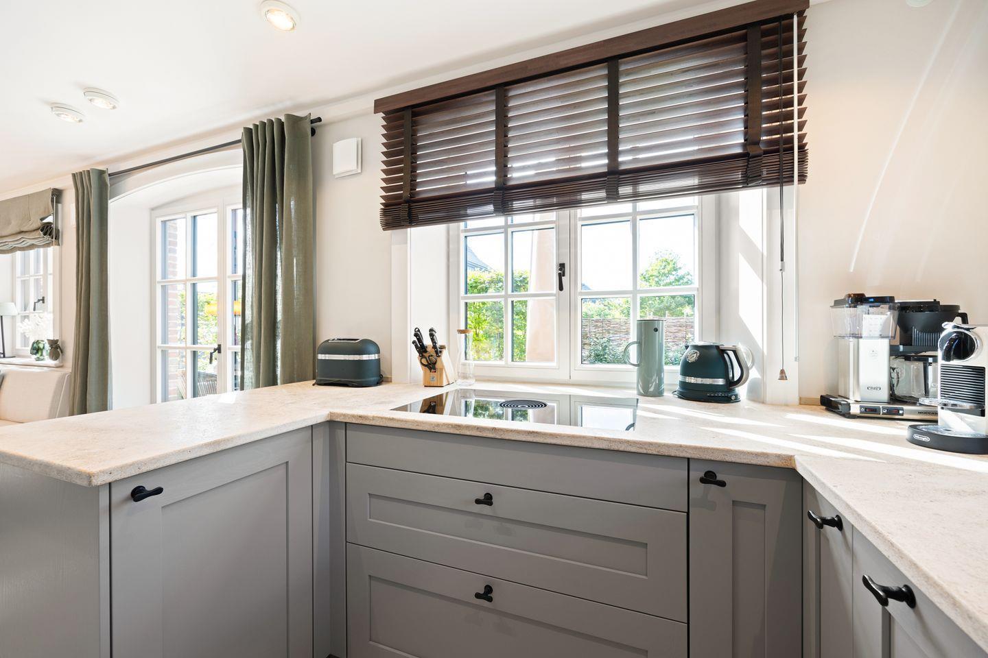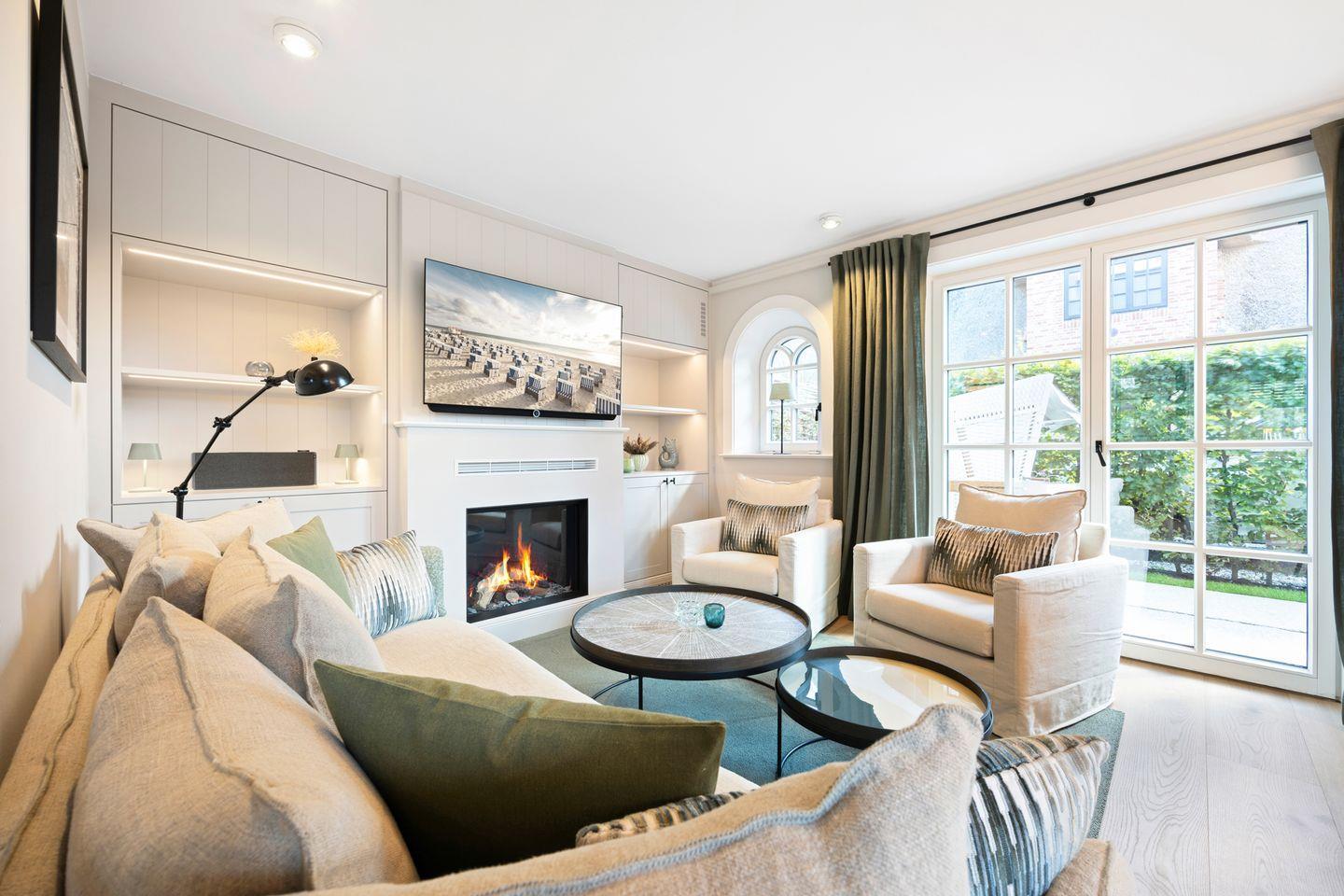 Im offenen Wohn- und Essbereich sorgt ein Kamin für eine gemütliche Atmosphäre, ideal für entspannte Abende mit Familie oder Freunden. Große Fensterfronten bieten viel Licht und führen zu zwei Freisitzen, die nach Süd-Westen ausgerichtet sind. Hier können Sie die frische Luft und die Ruhe der Natur genießen. Bequeme Sessel und ein Sofa laden zum Verweilen ein, während Sie den Blick in den Garten oder auf den Kamin genießen.