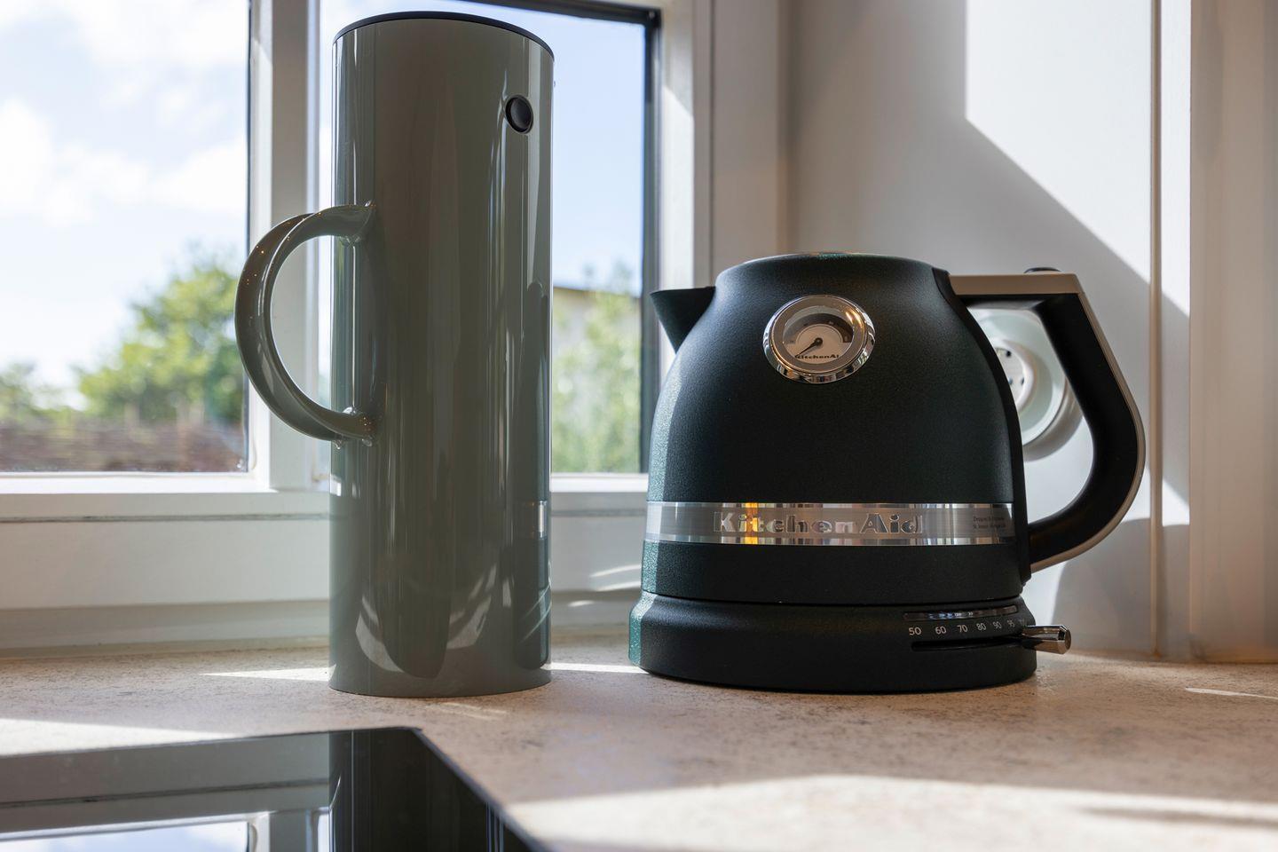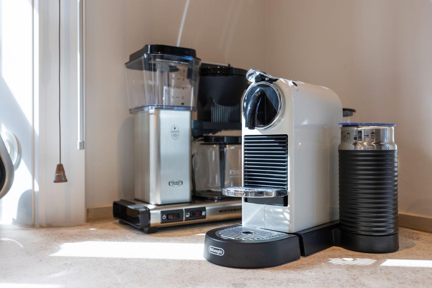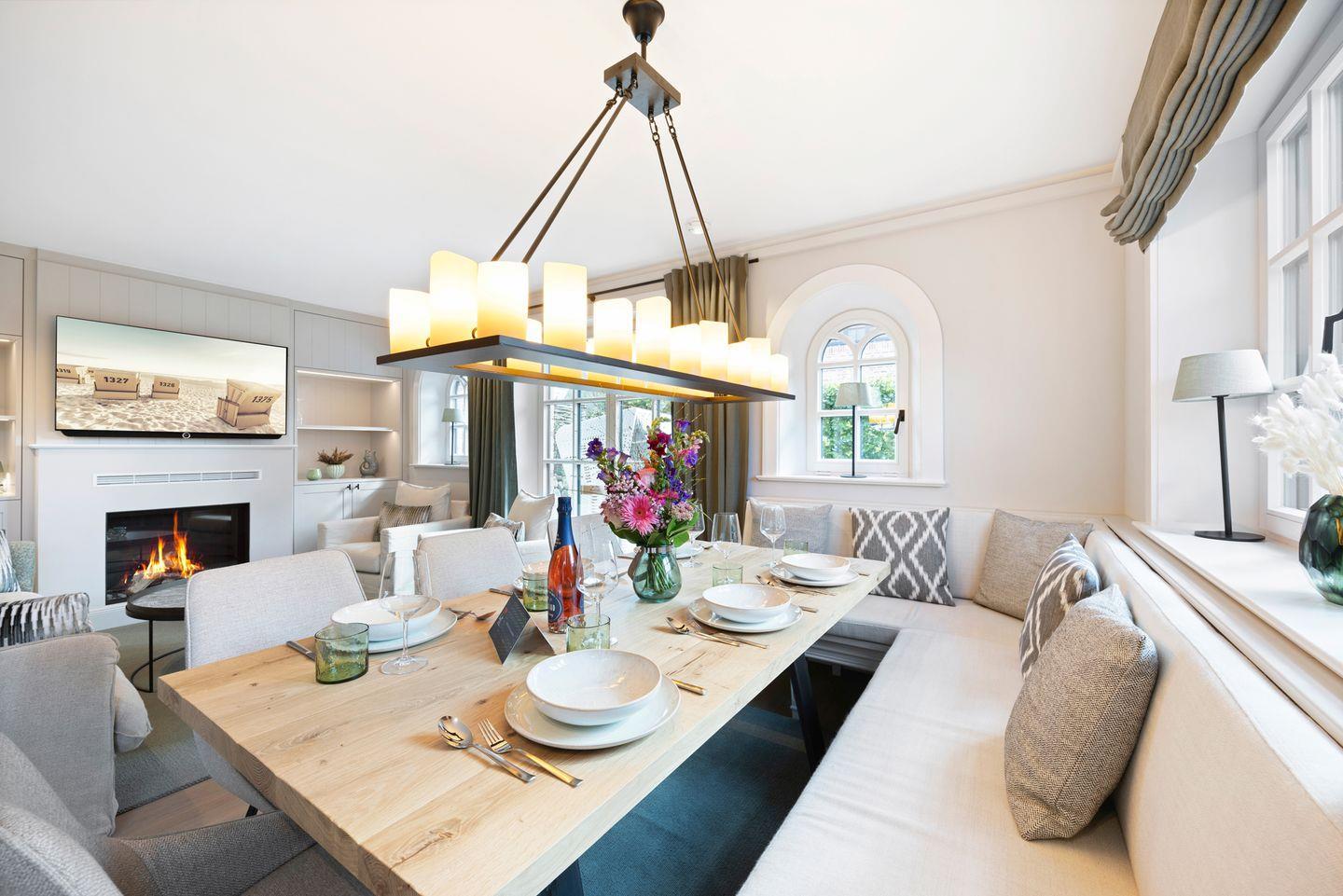 Die offene Küche, integriert in den Wohnbereich, ist mit hochwertigen Miele-Einbaugeräten und einem modernen BORA Kochfeld ausgestattet. Neben einem Dampfgarer finden Sie auch eine Moccamaster Kaffeemaschine – perfekt für den Start in den Tag. Der Esstisch bietet Platz für bis zu 6 Personen, sodass gemeinsame Mahlzeiten in entspannter Atmosphäre genossen werden können.