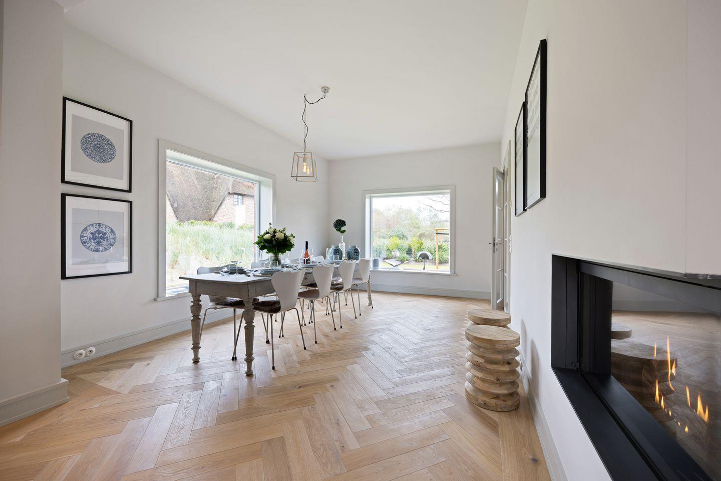 Der luxuriöse Wohn- und Essbereich mit Kamin besticht durch ein offenes Raumkonzept, das von natürlichem Licht durchflutet wird. Die edle Tischlerküche mit Kochinsel, ausgestattet mit modernster Technik und hochwertigen Miele-Geräten, lädt zu kulinarischen Erlebnissen ein.
