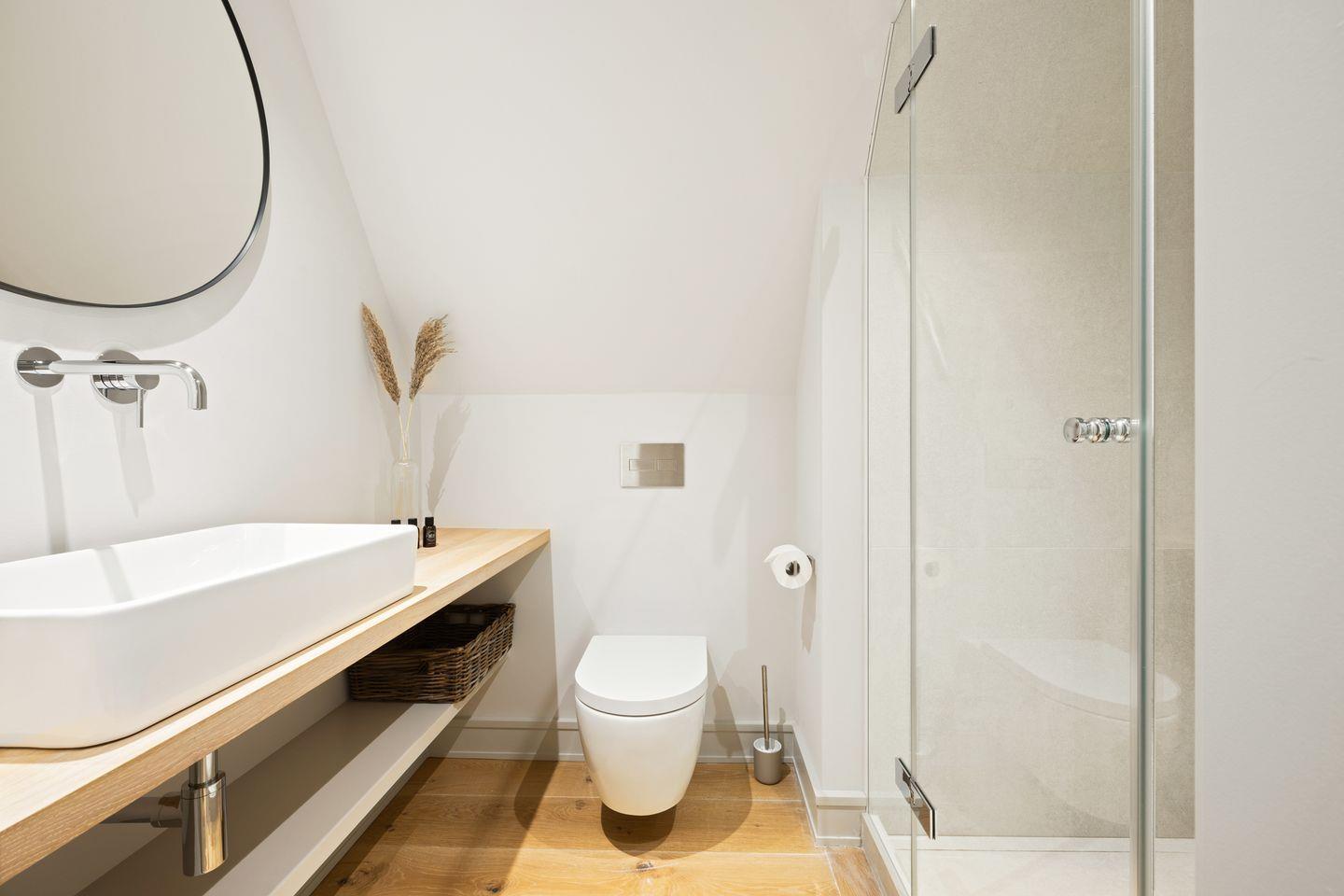 Ein besonderes Highlight des Hauses ist der private Wellnessbereich im Untergeschoss. Hier können Sie in der Finnischen Sauna entspannen und sich anschließend unter der Regendusche erfrischen. Ergänzt wird dieser Bereich durch einen Yoga- und Sportraum, der Ihnen die Möglichkeit bietet, auch im Urlaub aktiv zu bleiben und Körper und Geist zu erfrischen. Die hochwertige Ausstattung setzt sich auch in den Badezimmern fort, die mit edlen Materialien und modernen Armaturen ausgestattet sind. Im Warftgeschoß befindet sich ebenfalls eine Laundry mit Waschmaschine und Trockner.